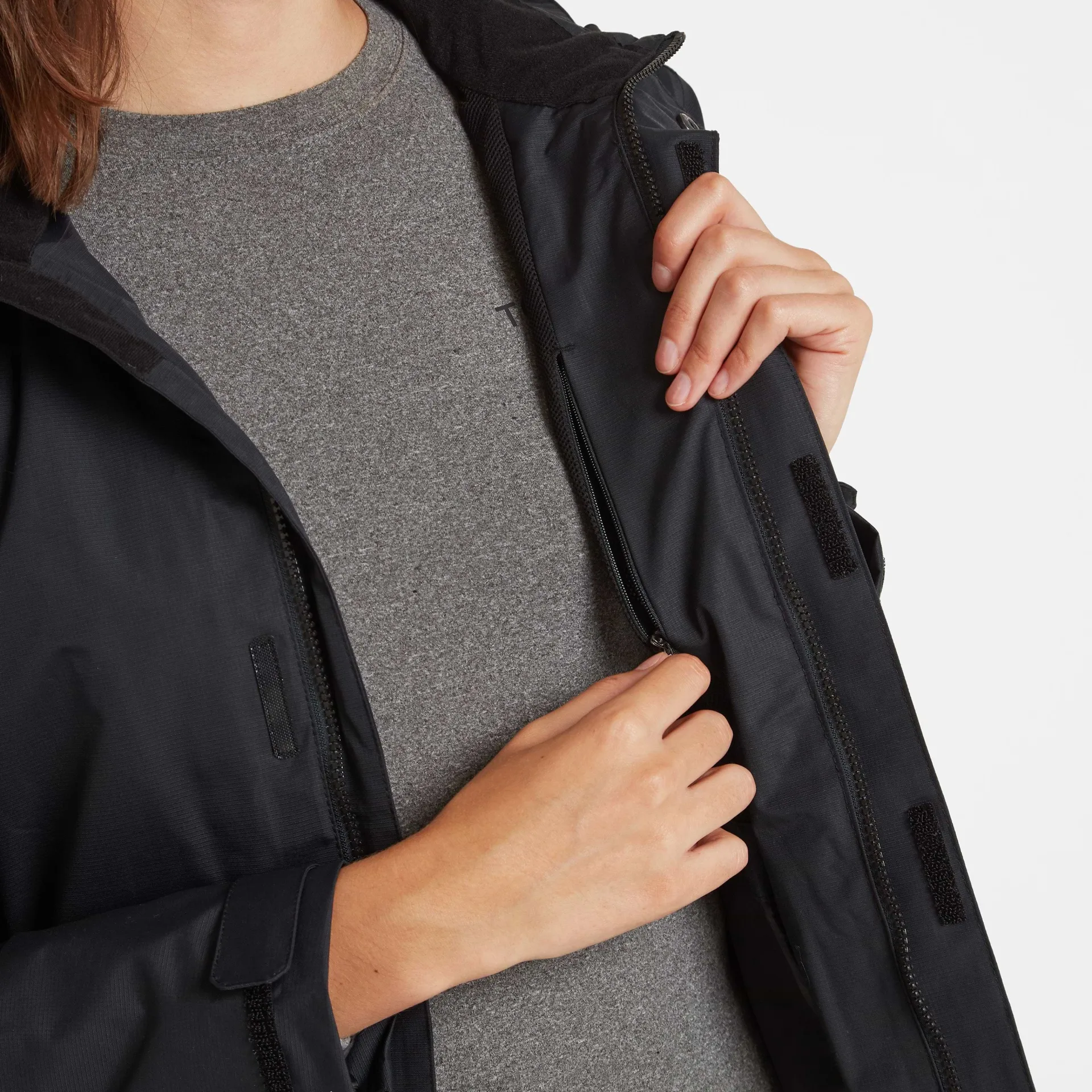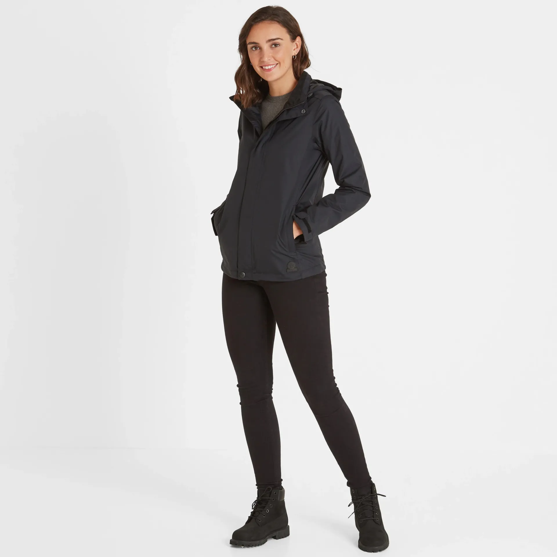 Product DescriptionFeatures5K Waterproof, 5K Breathable, WindproofTaped seams to stop water getting inDWR coating to outer fabric to repel waterBreathable mesh lining to top body u0026amp; easy glide taffeta lining to lower body u0026amp; sleevesPress stud, velcro u0026amp; hidden zip opening to front of jacketFoldaway hood with velcro fasteningAdjusters to hood face u0026amp; hemVelcro adjusters to cuffs2 lower zip pocketsEasy to personalise – inside of jacket has hidden zip opening for easy access to embroider or print to chestRubber badge to hemFitStudio model Dee is wearing size 10 and is 5’9.5