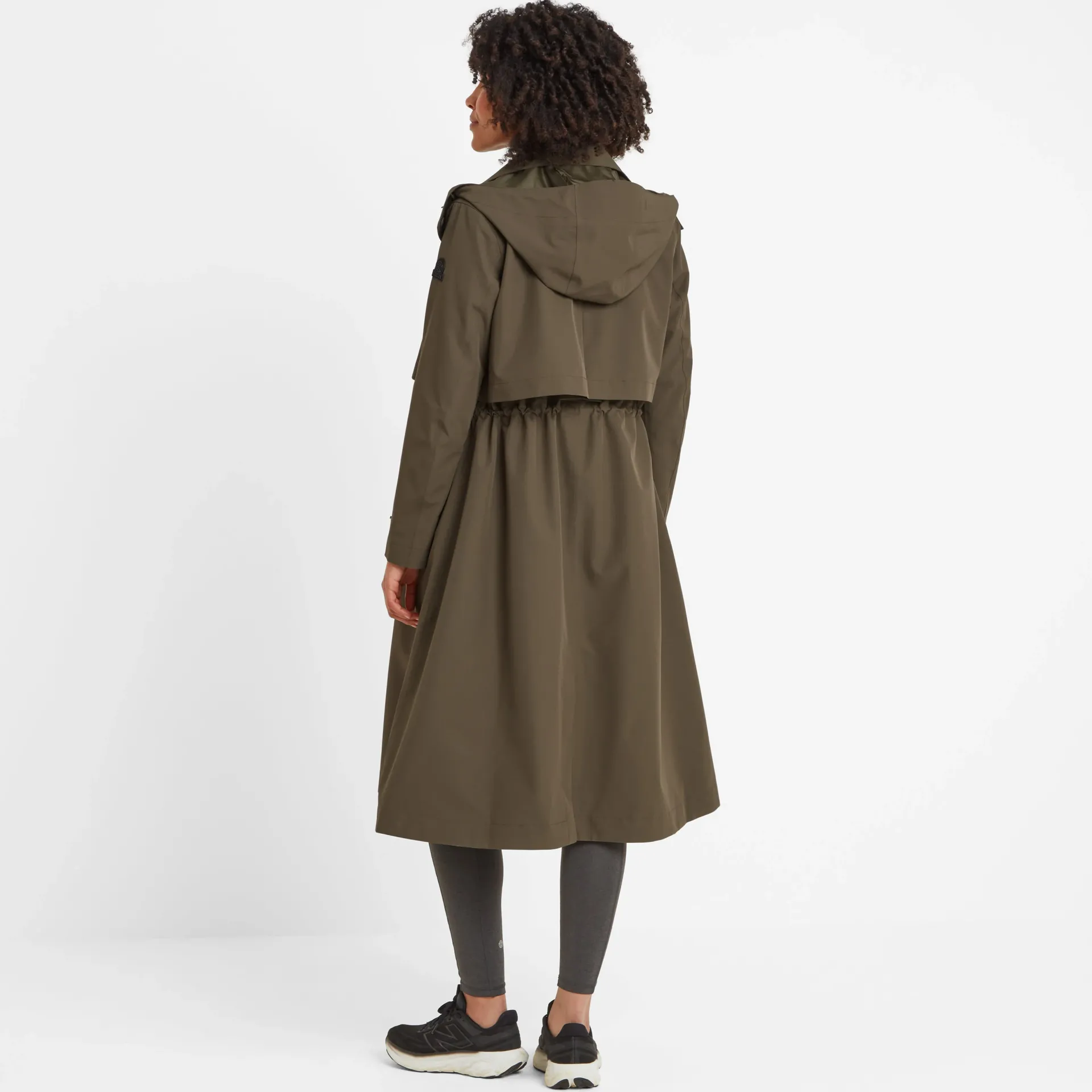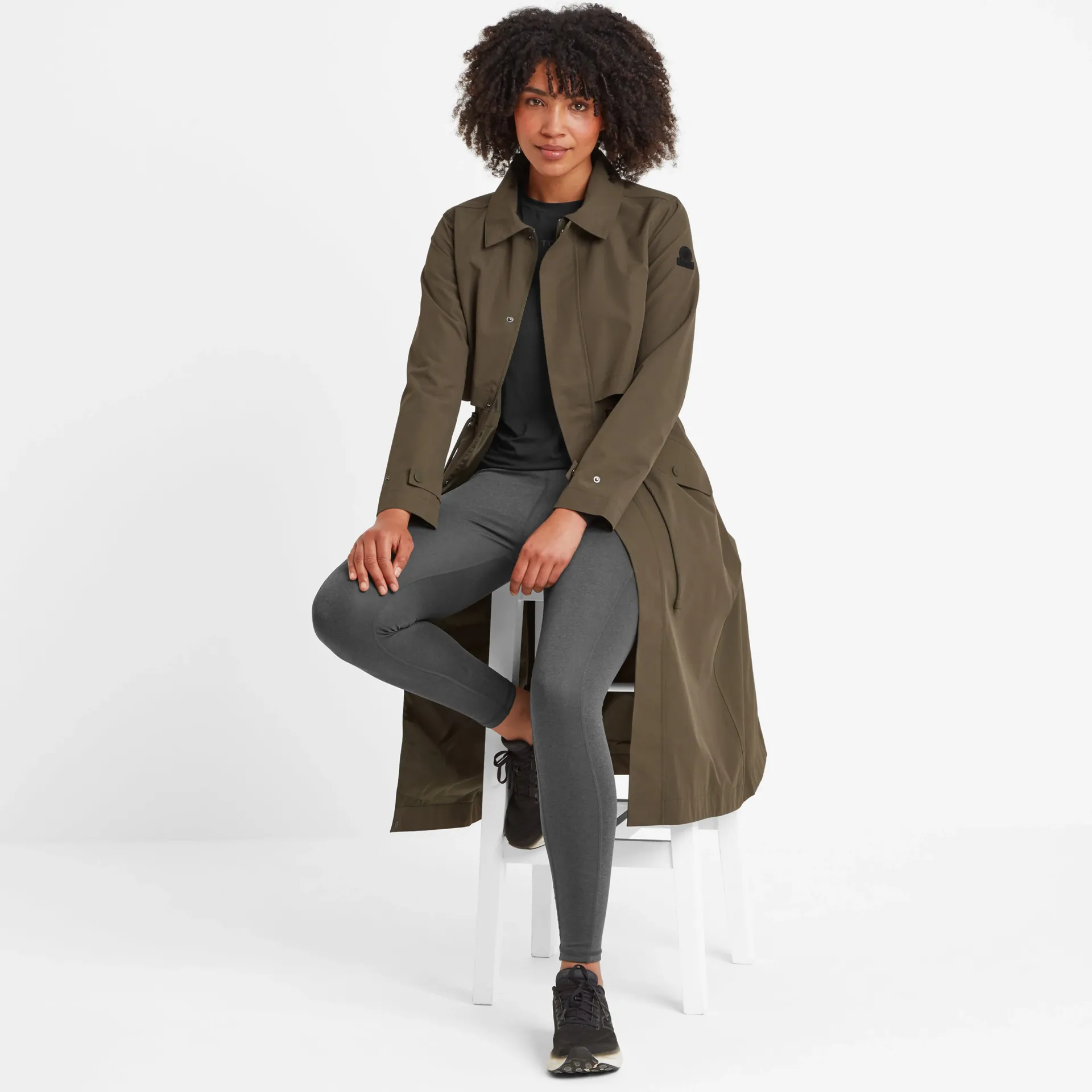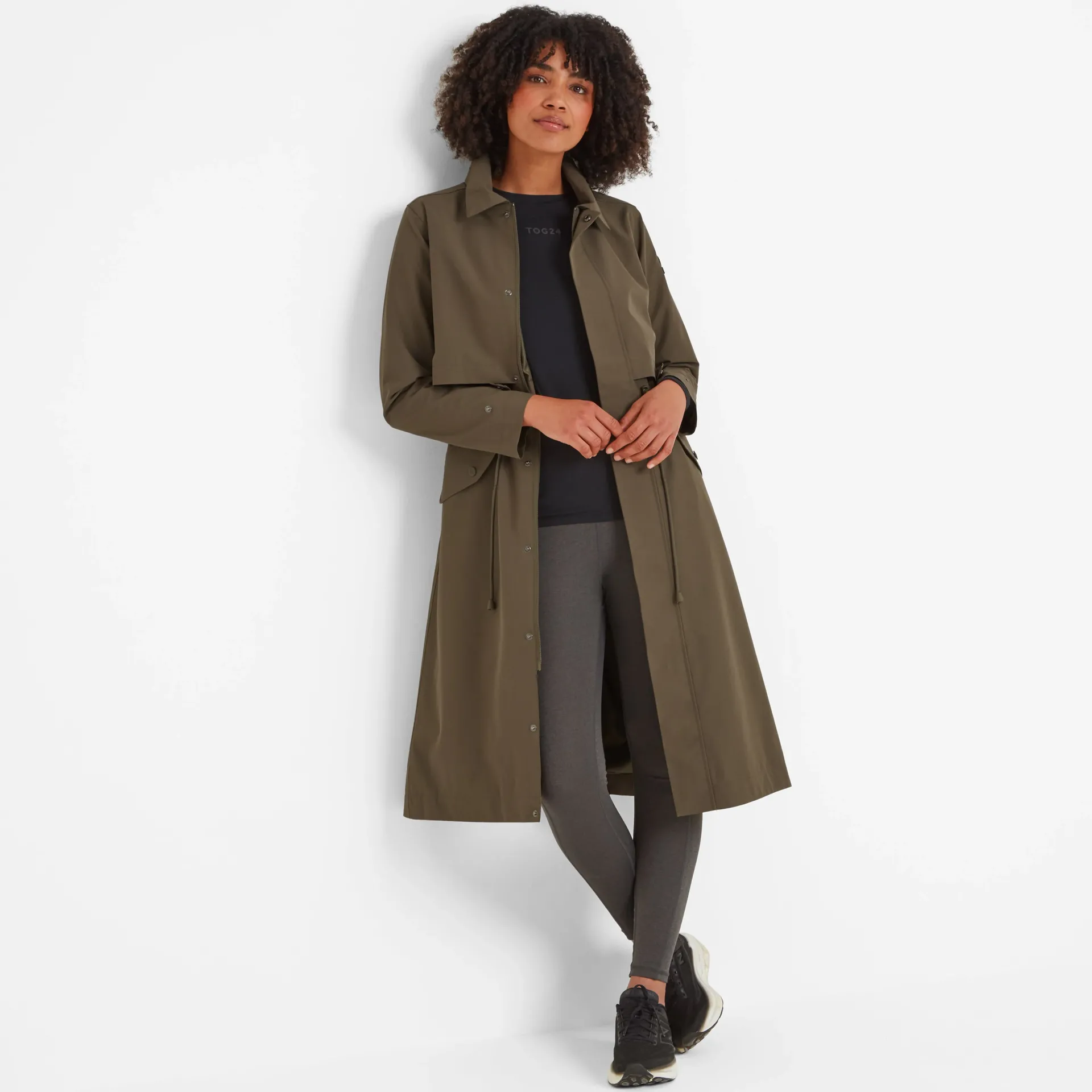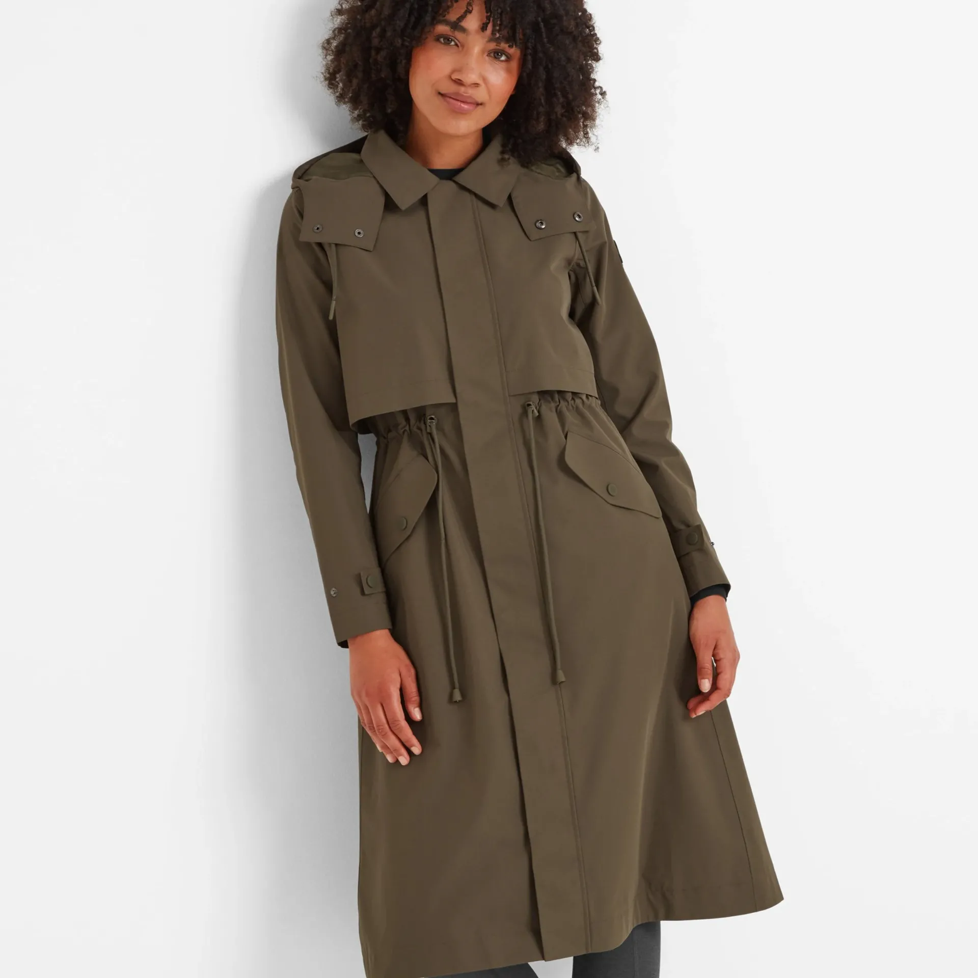 Product DescriptionWhen it comes to waterproof jackets, it doesnât get much more stylish than the Alva. Designed in the classic trench-coat silhouette, the Alva is a great looking coat that also comes with heaps of practical features. Its fully taped seams and waterproof coating ensures you keep the rain out and the warmth in, which is ideal for when the rain pours and the winds blow. Also, to ensure youâre ready for whatever the weather throws at you, the removable and adjustable hood comes complete with drawcords at the opening, while the handy two-way zip provides extra mobility. Whatâs more, the toggle adjusters on the waist offer that âcinched-inâ feel, which is both figure-flattering and great for keeping your torso toasty. With style and substance in abundance, the Alva is your trusty companion for keeping you dry and stylish in the unpredictable British weather.FeaturesWaterproof (10K), breathable (10K), and windproofFully taped seamsWater repellent coating (DWR)2 way zip opening fastened with concealed press studsRemovable hood with drawcords on hood openingToggle adjusters on waist2 lower patch pockets with press stud fasteningsPress stud cuff adjustersHem vent with concealed press studsTOG24 badge on sleeveFitStudio model Natasha is wearing size 8 and is 5’10