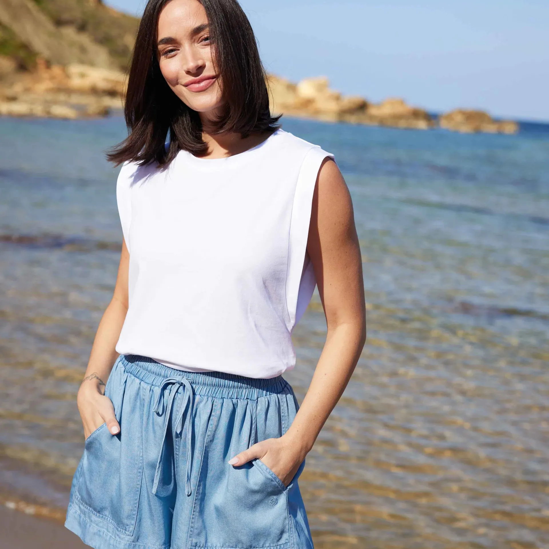 Clearance*This product is excluded from all additional promo code discountsProduct DescriptionThe April cut-off tee is perfect for adding a stylish twist to your casual wardrobe. Made from supersoft cotton, it feels great to wear and offers a comfortable, breathable fit. The high neckline and dolman sleeves create a modern, flattering shape, while the heavyweight capped sleeves give it a unique, on-trend look. Finished with the TOG24 label on the hem, this tee is easy to pair with jeans, shorts, or joggers for a simple, stylish outfit that works for any casual occasion.FeaturesSUPERSOFT COTTON TEEHEAVYWEIGHT FABRICHIGH NECKCAPPED SLEEVETOG24 LABEL ON THE HEMFitStudio model Izzy Dress 8 UK, Height 5’7