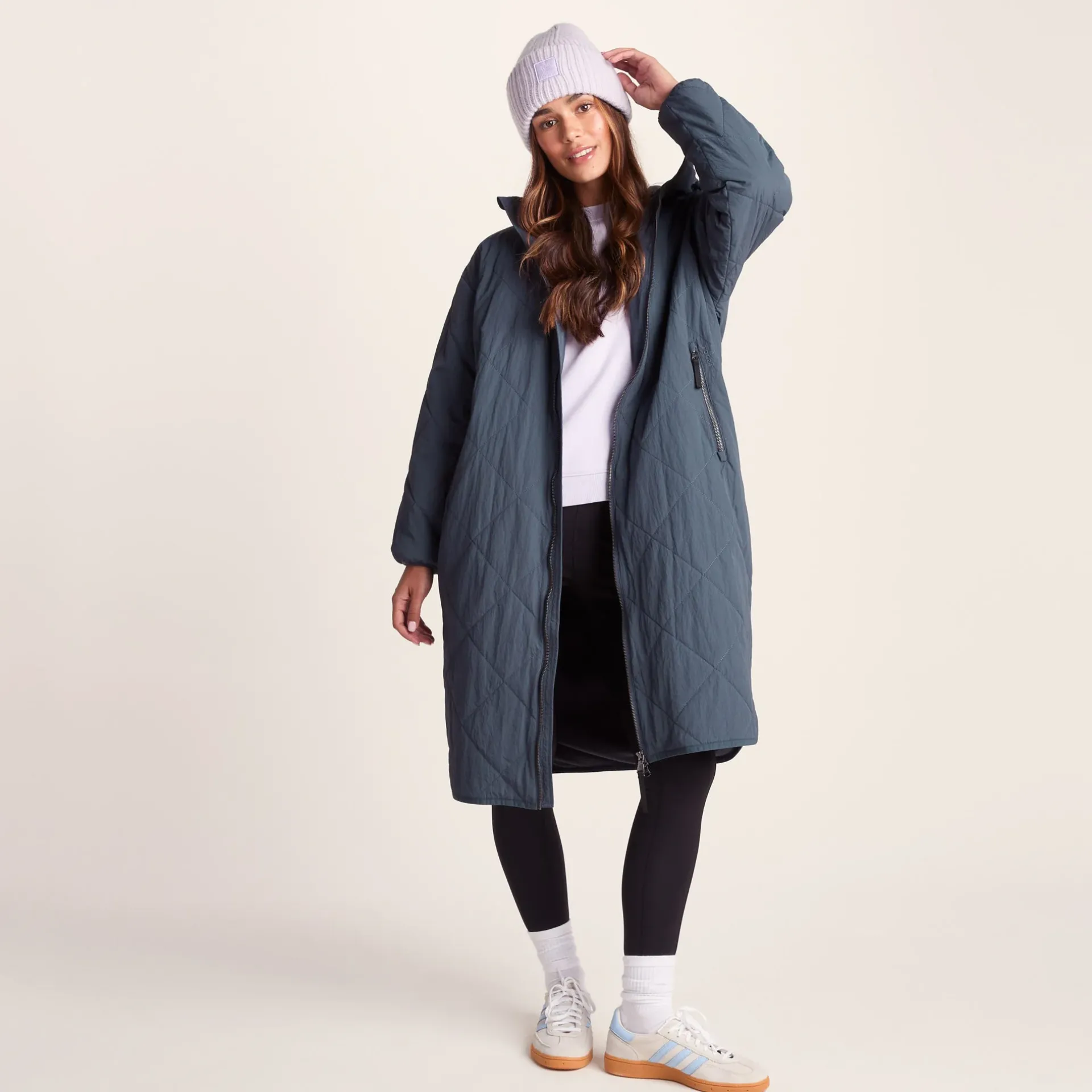 Product DescriptionIf youâre looking for a womenâs coat that keeps you toasty warm, is bang on trend, and looks right at home in the great outdoors, then youâve found your perfect match in the Banton. Its longer length provides extra protection from the elements, while the insulated diamond quilted baffles and soft microfleece lining will keep you warm and comfortable. The practicalities of the Banton ladiesâ waterproof coat donât end there, as not only is this coat great at keeping you warm, it also allows great movement too. nnThe two-way zip on this womenâs jacket enables free-feeling mobility, while the toggle adjusters on the hood add that much-appreciated bit of protection to the face when the wind picks up. Top it off with the fact that the Banton can protect you in light rain thanks to its water-repellent coating, you can rest assured this womenâs knee-length coat has your back on cold, windy and drizzly days.FeaturesLight rain protection, wind resistant and warmInsulated FillingWater repellent coating (DWR)Diamond quiltingMicrofleece liningToggle adjusters on the hood opening2 way zip opening on front2 lower zip pocketsElastic binding to cuffs and hemWebbing detail on sleevesShaped hemTOG24 embroidery on pocketFitStudio model Narine Dress 6 uk Height 5′ 6½* Bust 32 Waist 24