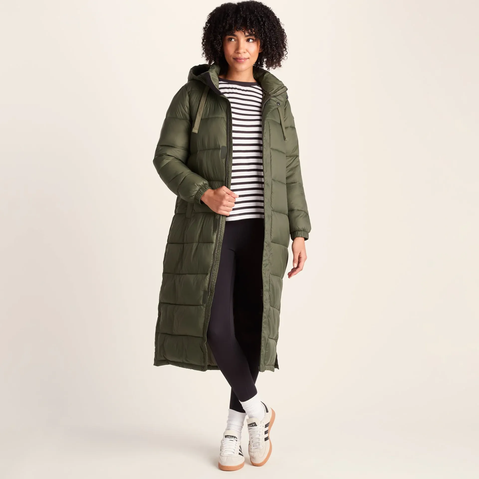 Product DescriptionThe Cautley women’s long padded jacket is the perfect companion for chilly and windy weather. Designed to keep you warm at your core while looking sleek and stylish, Cautley offers everything you’re looking for in a winter coat. The insulation is made with a high-performance filling made from recycled plastic bottles, making it a sustainable choice and a great alternative to down filling. Keeping comfort front of mind, this women’s padded jacket also features a full front zip that opens two ways for easy temperature control, along with chunky hood drawcords at the hood, a padded inner collar, and elastic cuffs to ensure you stay cosy no matter what. Added ventilation at the side seams also keep you comfortable when exploring outdoors. Perfect for Autumn wind and rain, ideal for Winter snow and cold.FeaturesWind resistant u0026amp; warmInsulated filling made from recycled plastic bottlesChunky quilted design2 Way zip opening fastened with velcro u0026amp; press studsChunky hood drawcords2 Lower zip pocketsPadded inner collarFitStudio model Mayara is wearing size 8 and is 5’11