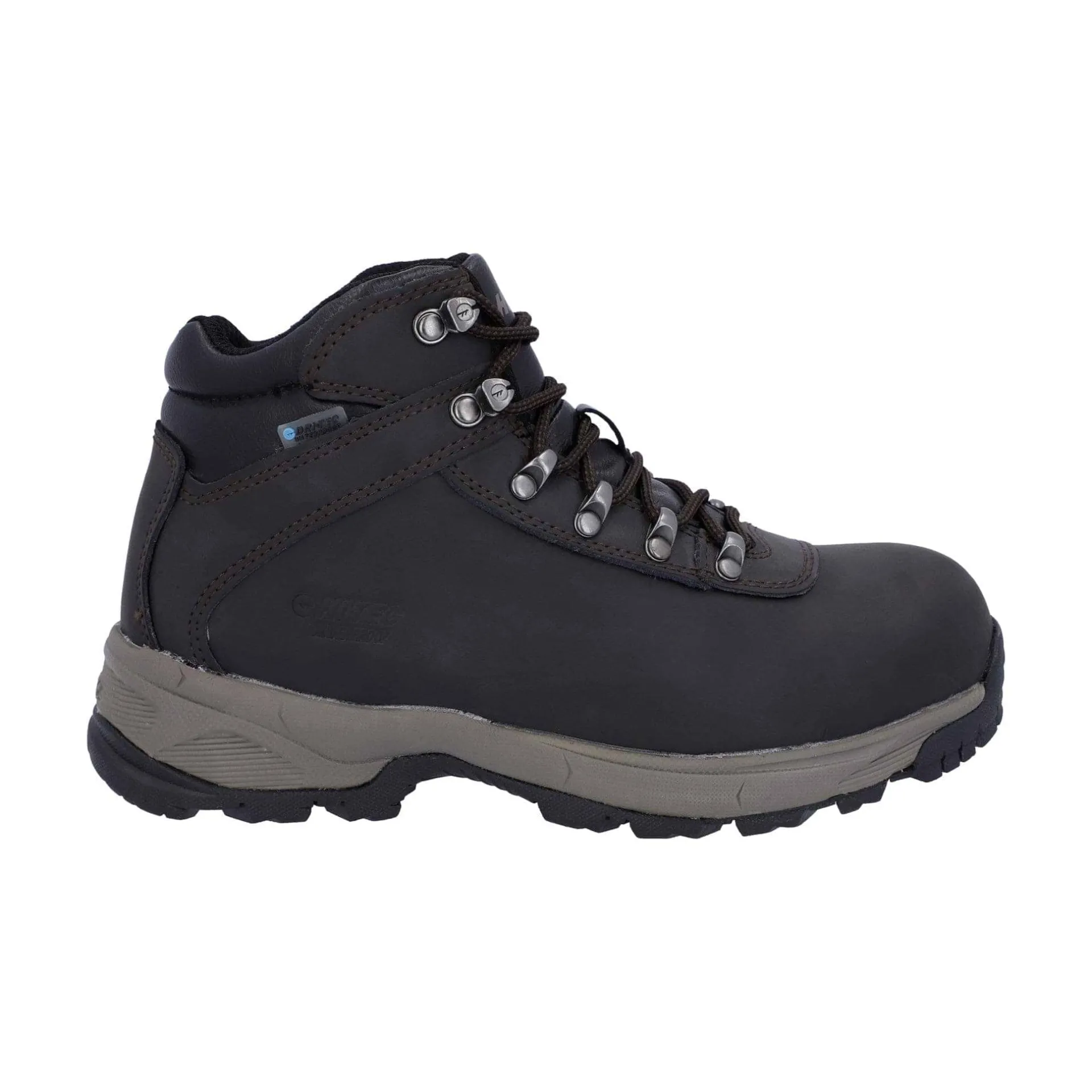 Product DescriptionThe Eurotrek Lite Waterproof walking boots for women are ideal for light hiking.FeaturesLeather upper for durability and comfortDri-Tec waterproof, breathable membrane keeps feet dryDurable rustproof hardwearing lacing system creates a snug, secure fitRemovable moulded EVA footbed delivers underfoot cushioningCompression-moulded EVA midsole with shank for ultimate cushioningFitMaterial CompositionUpper: Coated Leather. Lining: Textile. Sole: Rubber.Care
