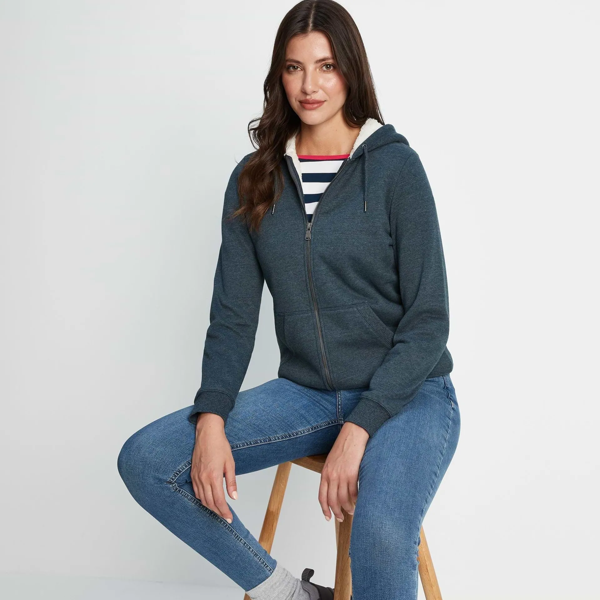 Product DescriptionDesigned to keep cold weather at bay, the Finch womens zip-up sweatshirt hoodie has an inside advantage – a luxuriously cosy sherpa fleece lining in the body and hood. It’s supersoft on the outside too with a gentle peach finish. Made for a typical Yorkshire winter, Finch comes in practical, rich colourways. Very easy to wear, the sleeves are unlined for easy movement whether you’re working outdoors or doing the supermarket shop. Finch also has a full-length zip and split kangaroo pocket. Ribbed cuffs and hem help to keep its shape. A small woven TOG24 pocket label is the finishing touch.FeaturesSupersoft zip-up sweatshirt hoodyWarm sherpa lining inside body and hoodFull-length zipSplit kangaroo pockets edged with ribbingRibbed cuffs and hemSmall woven TOG24 label on pocketFitStudio model Mayara is wearing size 8 and is 5’11