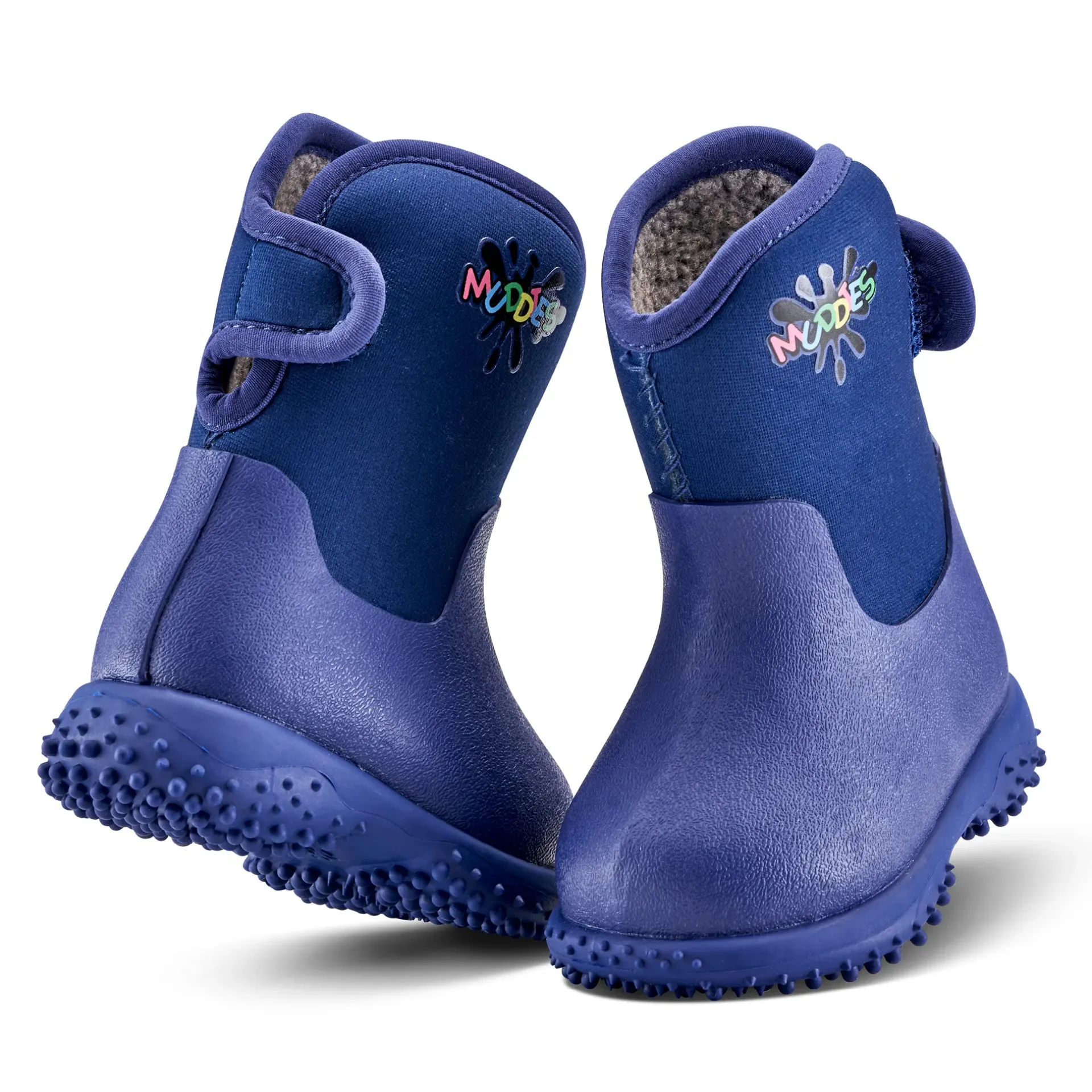 Product DescriptionThe Grubs MUDDIES® PUDDLE 5.0 Toddler’s Boot is ideal for your little adventurers first steps. Leave no puddle unsplashed with these brilliant boots, which are comfortable, fleece lined, calf length to make sure play is never interrupted and easy velcro fasten for hassle free removal. FeaturesDROPLET™ OUTSOLE – Hard wearing, quality rubber. 5MM INSUFOAM-ULTRA™ NEOPRENE WITH ANKLE HEIGHT RUBBER – for comfort and warmth. UNDERFOOT CHASSIS™ – give a sure-footed platform. COMFORT RATING -20ºc to +20ºc.FitMaterial CompositionUpper: 50% Rubber, 50% Nylon; Inner: 100% POLYESTER; Sole: 100% RubberCareBRUSH ME, WASH ME: Hose down your wellies after each use and once a month wash off excess dirt with just water and for a deep clean use water with a mild soap. Gently scrub with a soft bristle brush until your boot is clean, then leave the boots to dry naturally (not on a direct heat source).