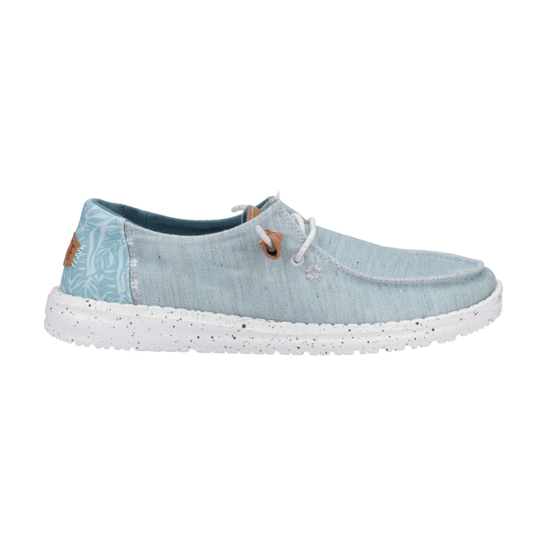 Product DescriptionIsland-inspired and featuring a flexible outsole, easy laces and colourful embroidery, Wendy Heathered Slub Tropical makes every day feel like a vacation underfoot.FeaturesCanvas upperElastic lacesLightweight outsoleFlexible outsoleEasy-on systemTravel readyRemovable foam insoleFitMaterial CompositionUpper: Linen/Lyocell/Cotton. Lining: 100% Cotton. Sole: Rubber.Care