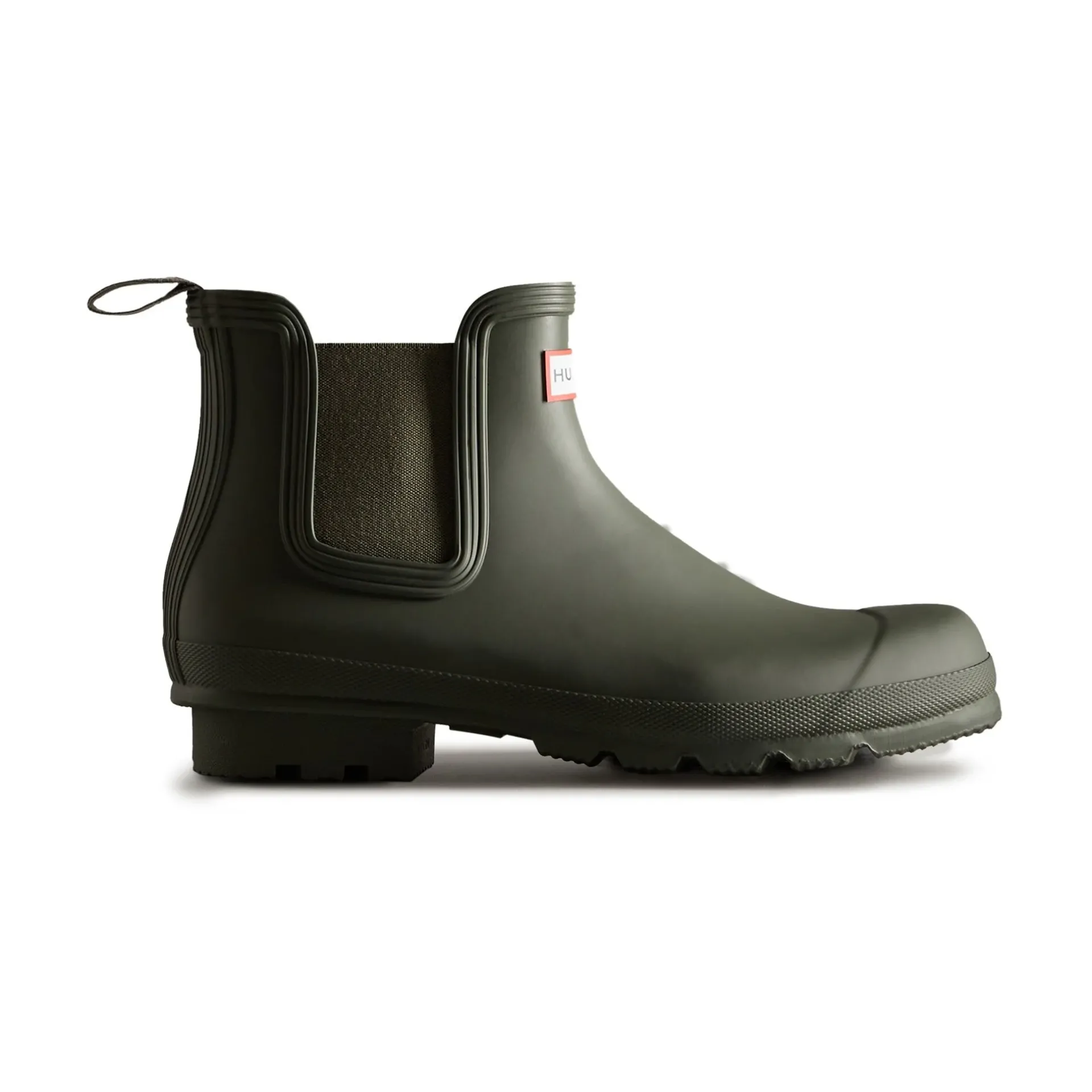 Product DescriptionThe Hunter Original Chelsea Boot is comfortable to wear all day yet always ready for rain. Each boot is handcrafted from natural rubber and vulcanised for superior protection.FeaturesFeatures elasticated-gussetsNylon pull-tab to makes stepping into the boot easyCertified VeganFitMaterial CompositionUpper: 5% ELSTC + 95% Rubber. Lining: 100% Recycled Polyester. Sole: 100% RubberCare