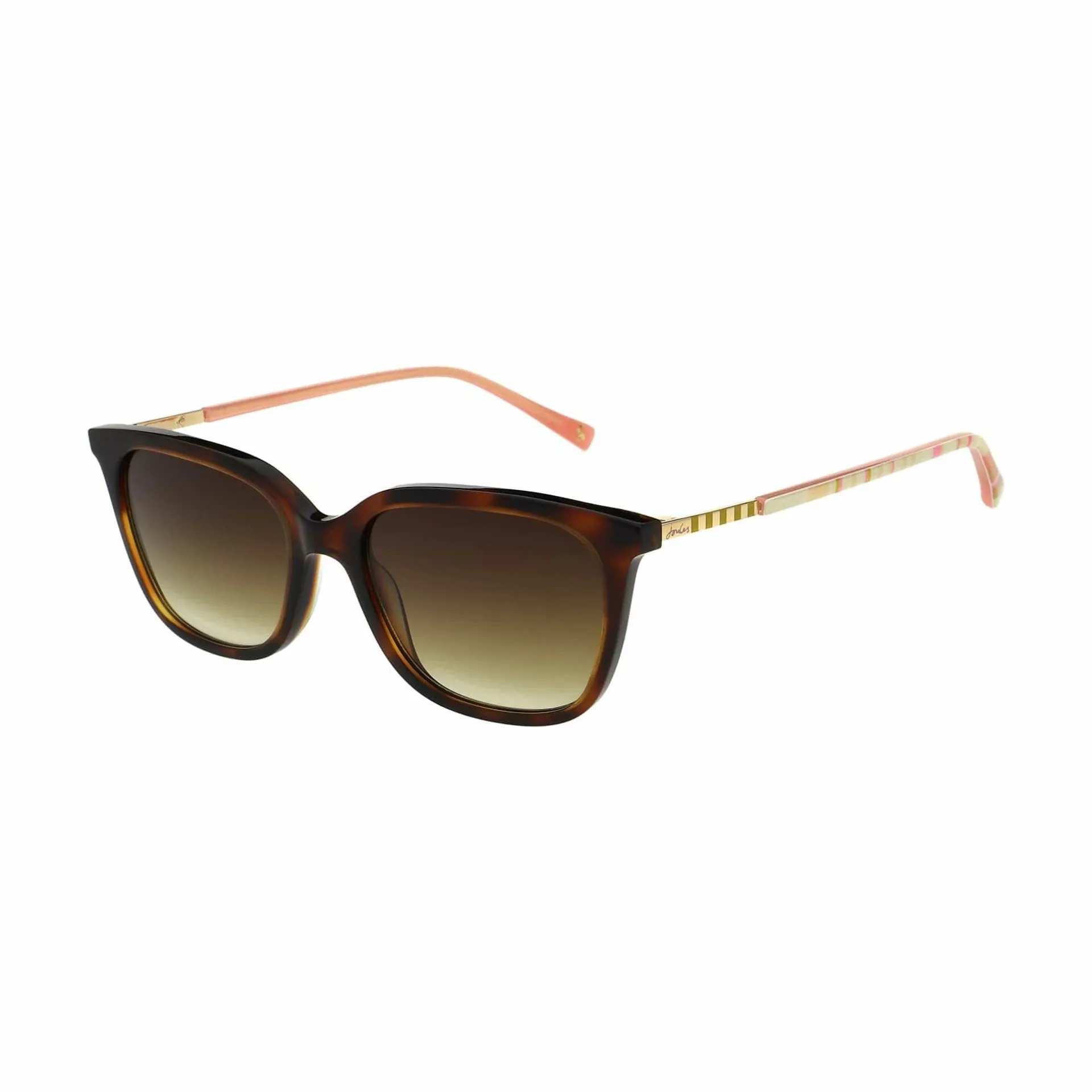 Product DescriptionJoules brings you a classic tortoiseshell sunglass with a really pretty striped combination templeFeaturesJoules Women’s SunglassesAcetate RenewFully SustainableGraduated LensesBranded Metal TemplesJoules Bespoke Striped Temple TipsFitMaterial CompositionMetalCare