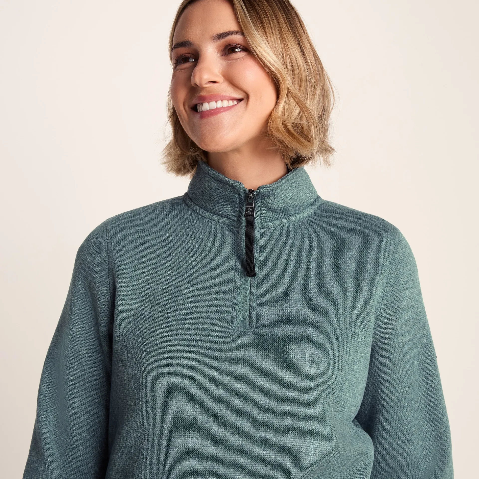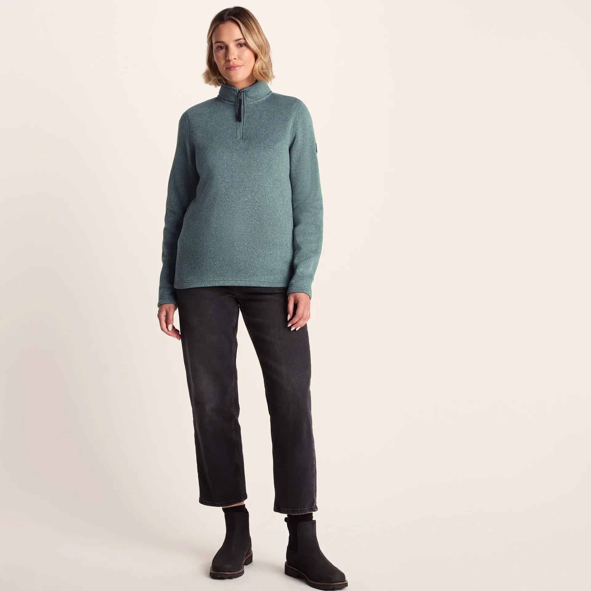 Product DescriptionSupersoft and a really useful layering piece, our Pearson knitlook women’s ¼ zip top combines the relaxed appeal of knitwear with the insulating warmth of fleece. Ideal for going to an outdoor workout or doing the school run, it can be worn alone on cool days yet easily fits under a coat or waterproof. Cut in a flattering, streamlined shape with a high zip-up neck for extra snugness, Pearson is anti-pill and comes in colours that reflect the sunlit North Sea and heather-clad moors of Yorkshire. ‘Truth Over Glory’ branding appears as an embossed Yorkshire rose on the sleeve.FeaturesSupersoft and warm knitlook fleeceAnti-pillZip neck openingEmbossed rubber Yorkshire Rose badge on sleeveFitMaterial Composition100% PolyesterCareMachine washable.