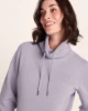 Product DescriptionSuper soft, cosy and enticing, our Abigail funnel neck sweatshirt feels as good on as it looks and is perfect for a brisk walk across the Yorkshire moors, meeting friends or snuggling up on the sofa. The inside is brushed so it feels extra soft against the skin and it has a soft, peach finish outside. The funnel neck drapes softly to feel cosy and is finished with chunky knitted drawcords, so you can adjust the fit to wear it your way. There is generous ribbing at the pocket edges, cuffs and hem, for cosiness and to help keep its shape for years to come. Designed in muted colours inspired by the Atlantic ocean, Abigail is finished with our signature small woven Yorkshire Rose label on the edge of the pocket.FeaturesFunnel neck sweatshirtSupersoft cotton blendRibbed cuffs and hemWelt pockets with ribbed edgeChunky knitted drawcord at the neckSmall woven Yorkshire Rose label on pocketFitStudio model Georgia Dress 8 uk Height 5’10* Bust 34 Waist 25.5