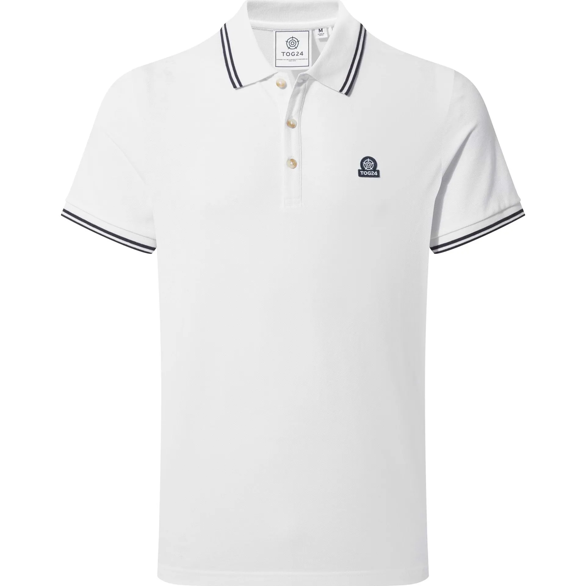 Product DescriptionThe Biston polo is all about that classic, laid-back look. Made from soft, breathable cotton pique, itâs perfect for everyday wear, from casual meet-ups to relaxing at home. With short sleeves and a flat knit rib on the collar and cuffs, it offers a clean, comfortable fit. The Biston features contrast tipping on the collar and cuffs for a subtle pop of detail, and horn-effect TOG24 buttons for a refined finish. An embroidered TOG24 badge on the chest adds a touch of quality. The Biston polo is your go-to for everyday style.FeaturesCOTTON PIQUE POLOSHORT SLEEVESFLAT KNIT RIB ON THE COLLAR u0026amp; CUFFSCONTRAST TIPPING DETAIL TO COLLAR AND CUFFSSTRAIGHT HEMBUTTON STANDBRANDED TOG24 HORN EFFECT BUTTONSTOG24 EMBROIDERED BADGEFitStudio model Erik is wearing size M and is 5’11