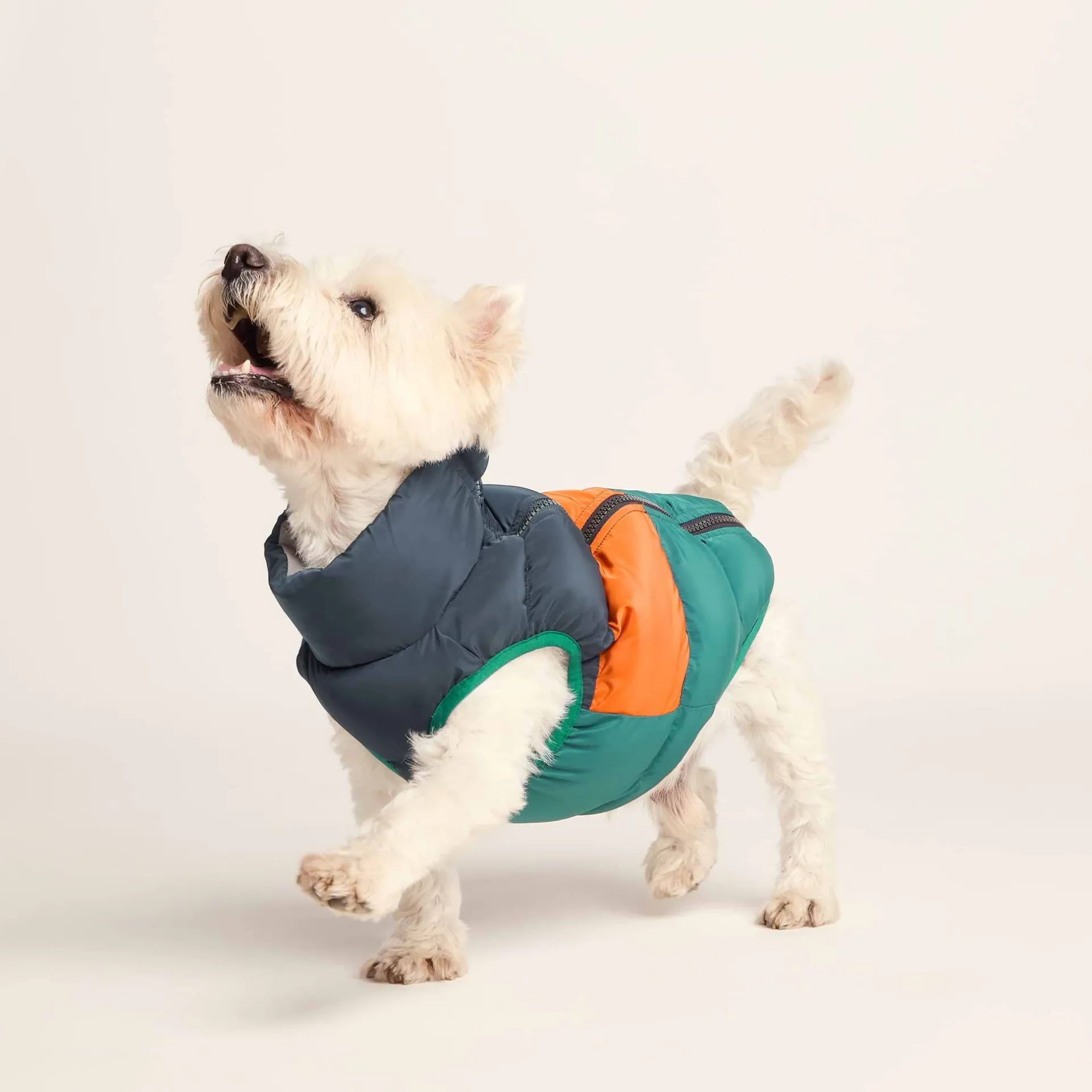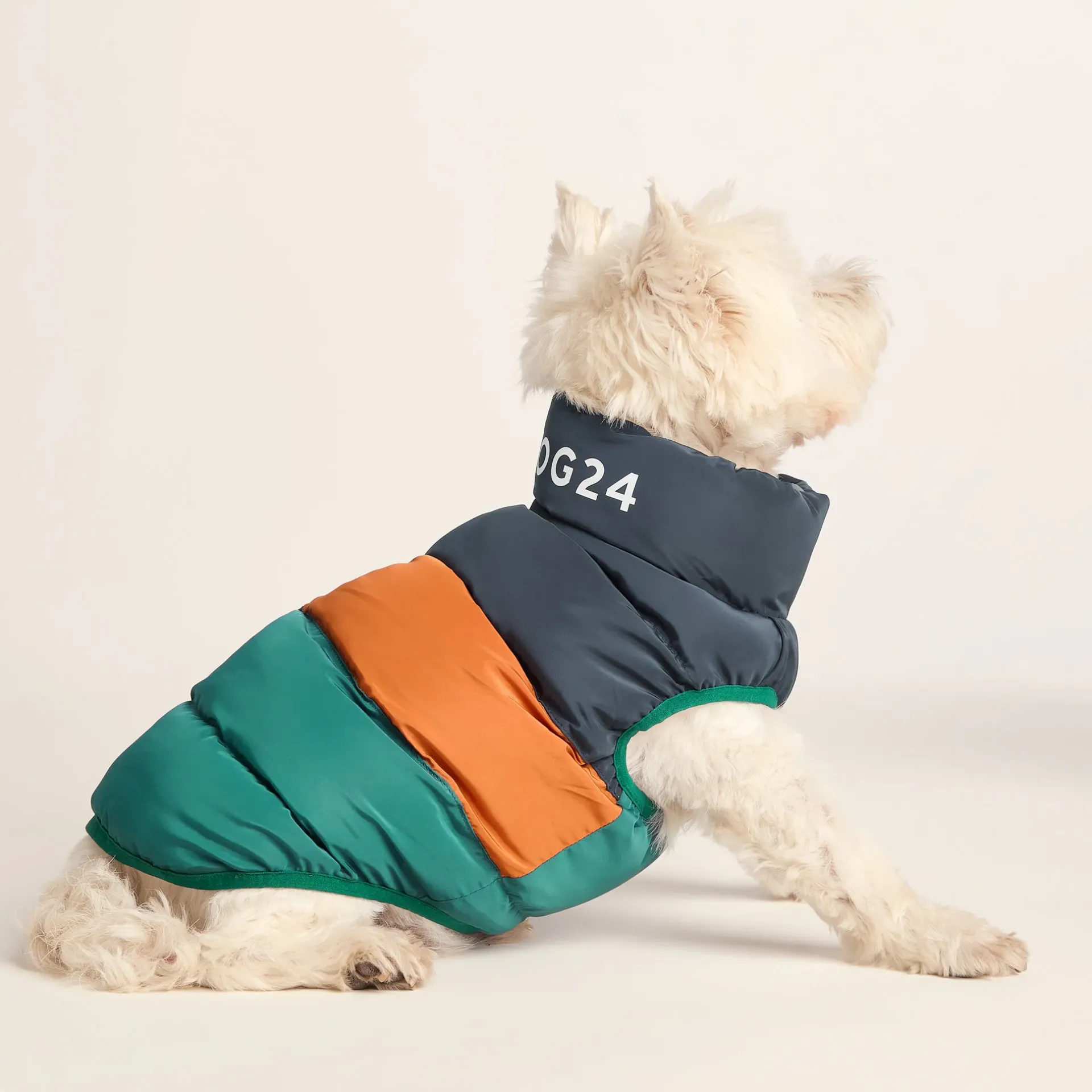Product DescriptionInsulated for warmth and comfort, our Fetch coat for dogs keeps your pet cosy on cold winter walks. This stylish jacket is lightweight with a full length zip to make putting it on your dog stress-free. The reversible design has a reflective option so that your dog can be seen by cars and cyclists on dark early morning walks in the winter. A cut-out in the neck conveniently allows you to attach a lead while your dog is wearing the jacket. The colourblock pattern in tones inspired by the Yorkshire landscape with TOG24 printed on the neck gives the coat a sporty look both you and your canine companion will love.FeaturesLightweight u0026amp; padded dog coatReversible jacketOuter jacket is colour blocked u0026amp; Inner side of jacket is reflectiveZip fasteningHole for lead to be attachedTOG24 print on collarIntended for pet use onlyThis is not a toy and dogs should be supervised when wearingFitMaterial Composition100% Polyester.CareMachine washable.