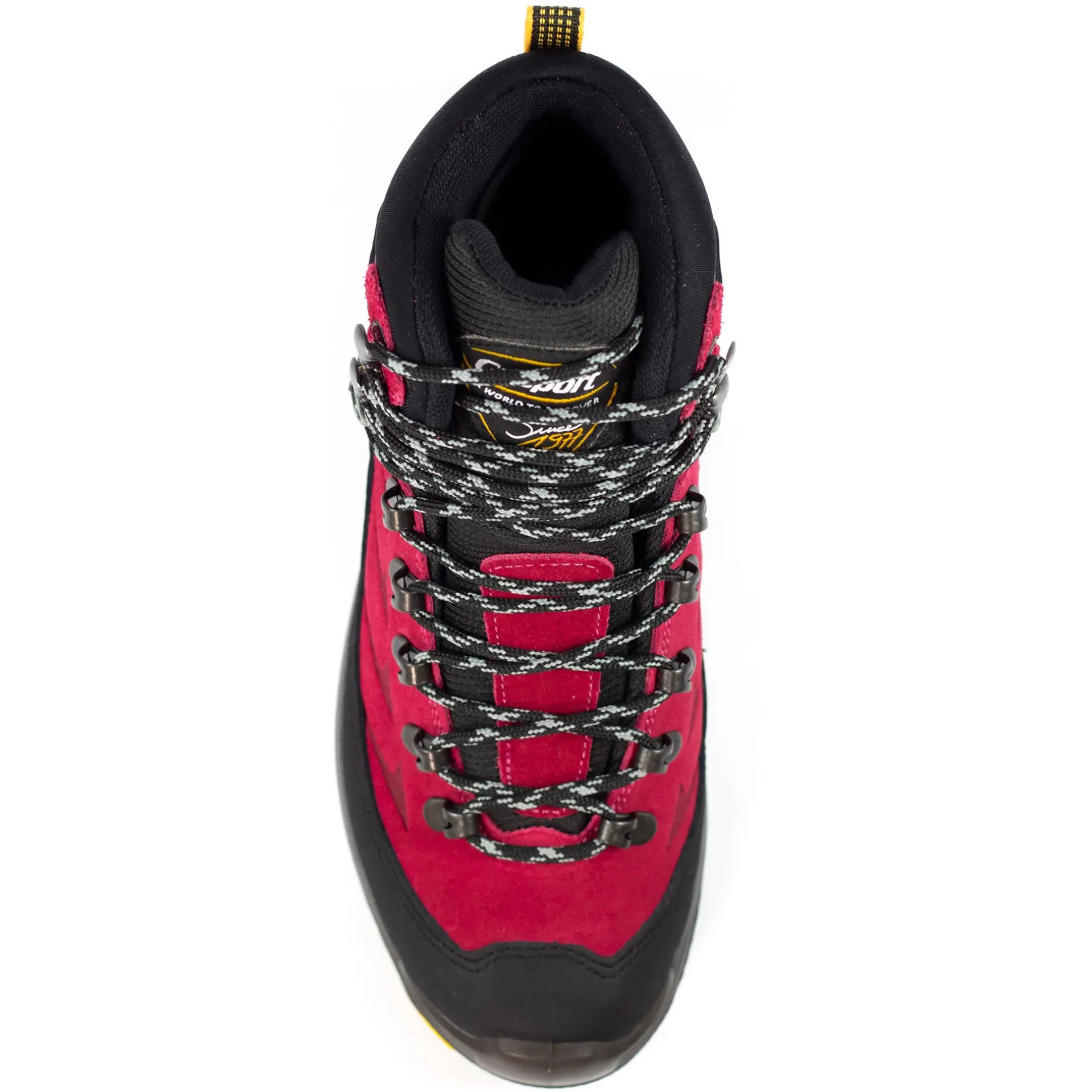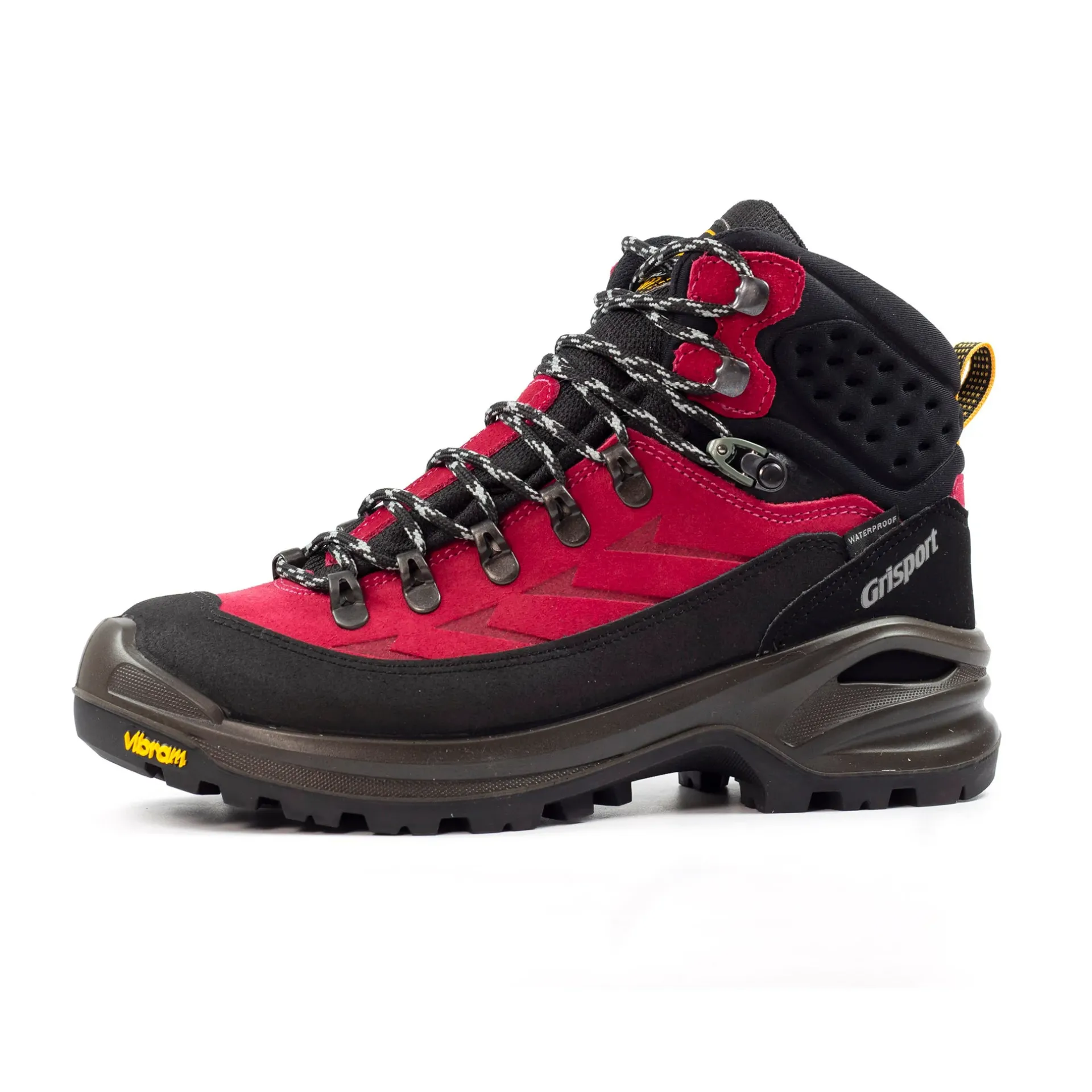 Product DescriptionThe Lady Nevis red walking boot blends style and performance. Featuring a waterproof membrane, Vibram® non-slip sole, and triple-density midsole, it ensures comfort and durability. The premium suede leather upper, dynamic arch support, and anti-scuff heel provide stability and protection. Perfect for long walks, it’s a stylish choice for outdoor adventures.FeaturesWaterproof Membrane – Seals out Water u0026amp; Allows Moisture To EscapePremium Suede Leather UpperVibram ‘Light-Trek’ Non-slip Rubber SoleInternal Waterproof ‘Bootie’ ConstructionTriple-Density Midsole – Absorbs Walking Impact to Allow All-day Comfort On Longer Walks’Quick-Fast’ Middle Lace Hook To Ensure Optimum Fitting, Auto Adjusts While Walking2-Zone Lacing SystemRemovable Anatomic InsolePadded, One-Piece Thermoformed Collar Created From New ‘Neo-Trek’ One Piece Soft-Touch Fabric100% Waterproof LacesDynamic Arch Support System for Foot Protection u0026amp; Heel LockingProtective Anti-Scuff Material On HeelMetal Speed Lacing HooksR-System Anti-Twist, Nylon Mid-sole for Rigidity on Uneven TerrainProtective u0026amp; Abrasion Resistant RandFitMaterial CompositionSuede LeatherCare