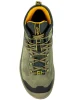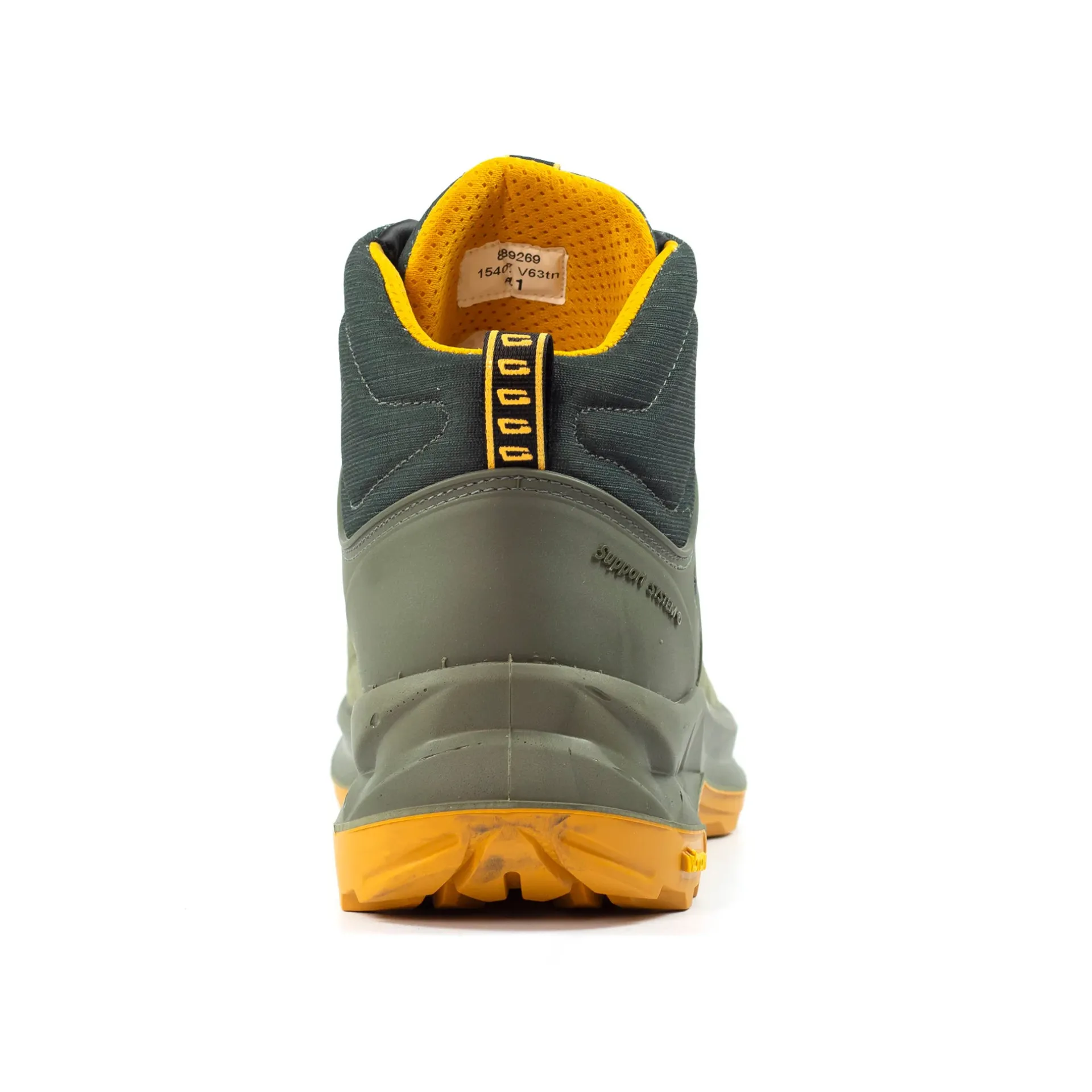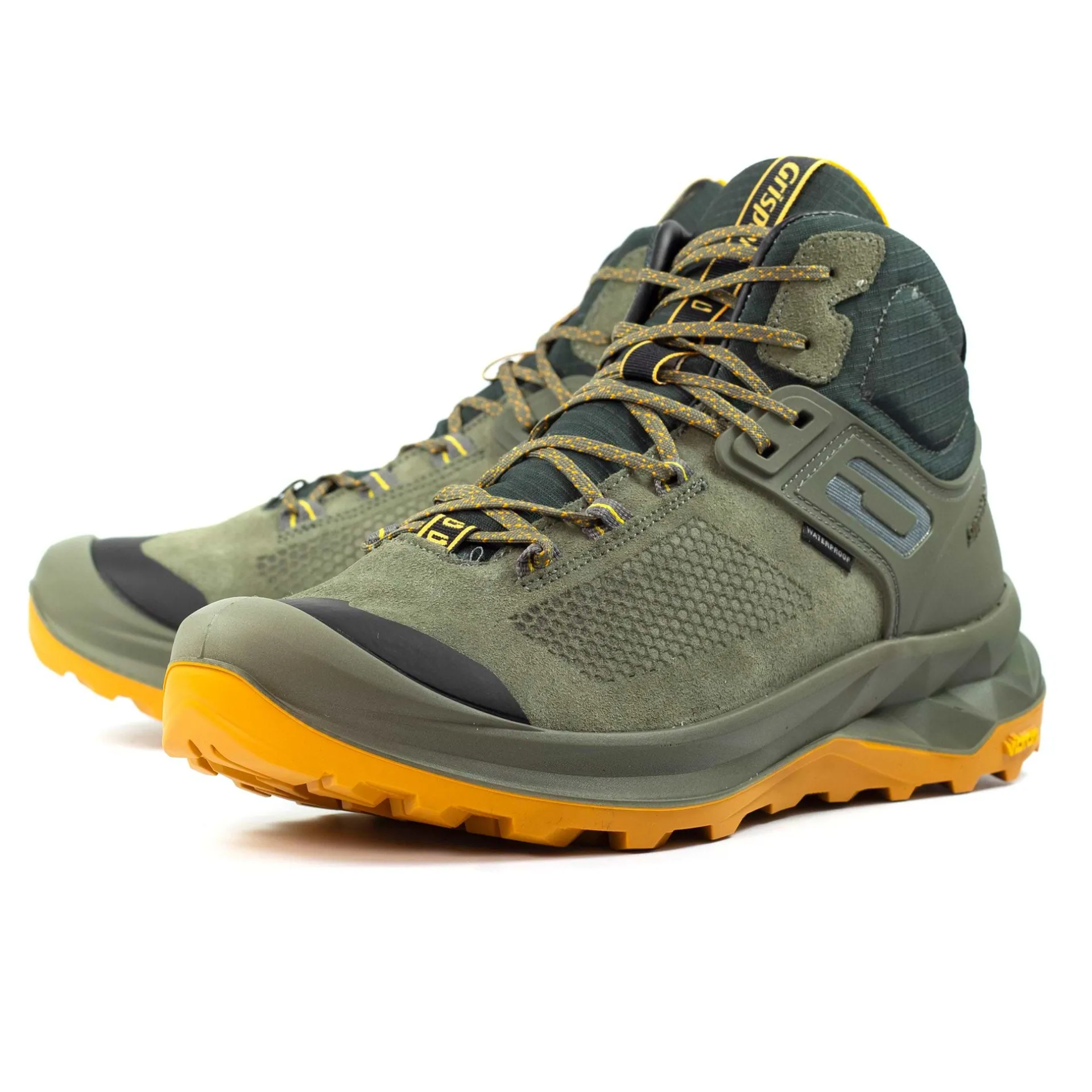 Product DescriptionAll-Day Comfort â Designed with an anatomic footbed and cushioned collar, the Sherman offers superior support and reduces foot fatigue, keeping you comfortable mile after milennWaterproof u0026amp; Breathable â Featuring a waterproof, windproof u0026amp; breathable membrane, these boots keep your feet dry while allowing moisture to escapeâno more damp, uncomfortable walks.nnUnmatched Durability â Made from high-quality nubuck leather with reinforced stitching, the Sherman is built to withstand even the toughest conditions, making it a boot you can rely on for years.nnGrip u0026amp; Stability You Can Trust â The ‘Vibram’ rubber sole delivers exceptional traction on wet, uneven, and slippery surfaces, ensuring you stay steady on your feet no matter the adventure.nnTimeless Military Green Design â Adventure-ready and stylish, the Shermanâs military green finish makes it stand out in both performance and aesthetics.FeaturesWaterproof membrane, exceptional breathability and waterproof performanceNew Vibram ‘Adventure’ rubber sole with deeply defined lugs for increased tractionUltra-light midsole compound, with extra micro-air bubbles to absorb walking impactSuede leather/Cordura mesh mixed upperNew support system, designed to give personalised heel lock adjustment, for optimum fitToe protection cap – reinforced for toe protection and greater durabilitySeamless upper construction providing ultimate comfort and weight savingDouble stitched adjustment loops on the heel and tongueBellows tongue – keeps debris out and improves waterproofing capabilitiesSpeed lacing systemRemovable, carbon activated, memory foam footbedBreathable, inner-mesh lining providing increased air circulation100% waterproof laces and webbingPadded collar and tongue FitMaterial CompositionSuede LeatherCare