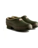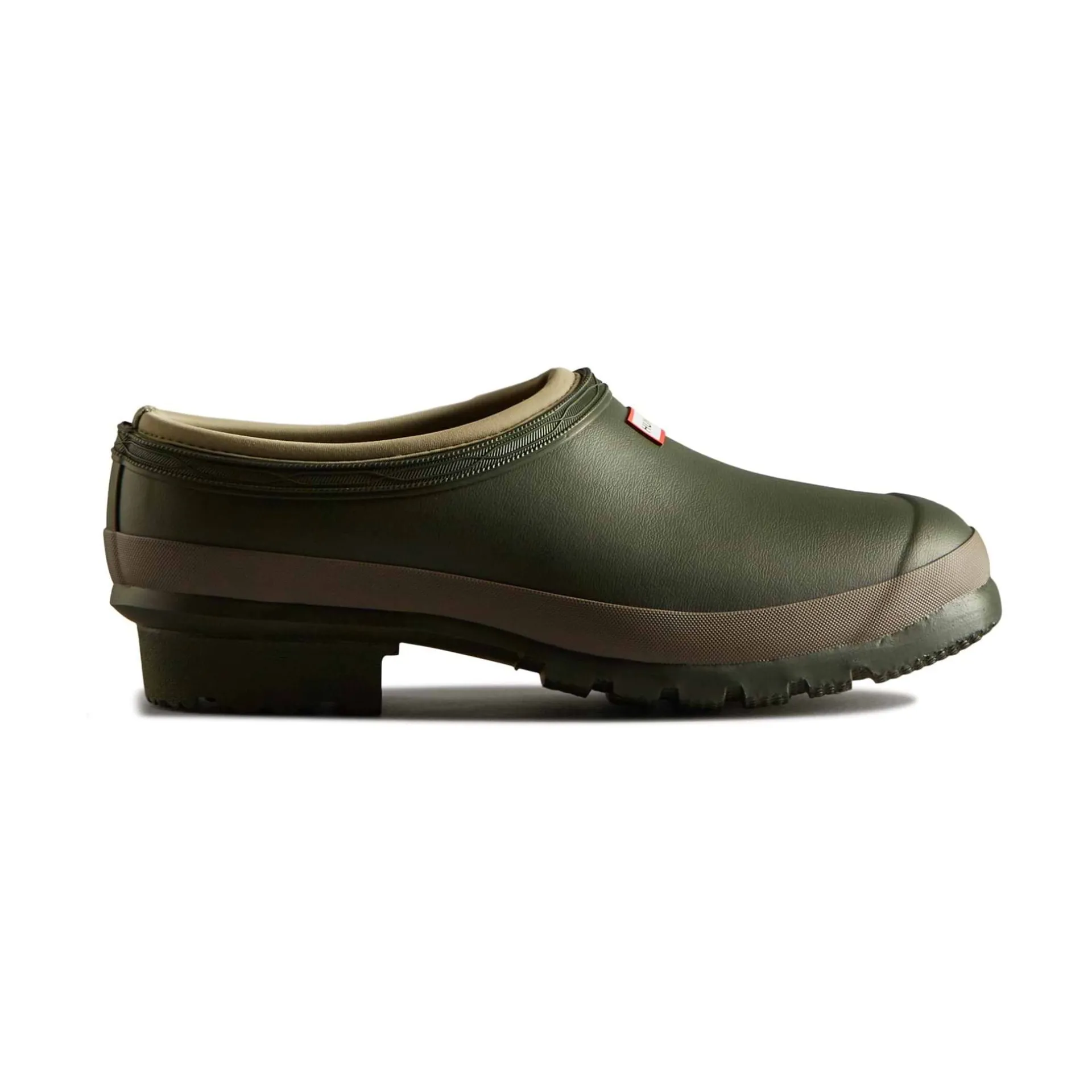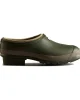Product DescriptionA dark green slip-on shoe handcrafted from waterproof vegan rubber, designed for gardening. Updated with the iconic red box logo, the clog has a flexible natural rubber form and Hunter’s signature tread providing grip.FeaturesCertified veganWaterproofHandcraftedNatural rubber construction with matte finishNeoprene liningSignature calendered treadFitMaterial CompositionUpper: 100% Rubber. Lining: 100% Neoprene. Sole: 100% Rubber.Care