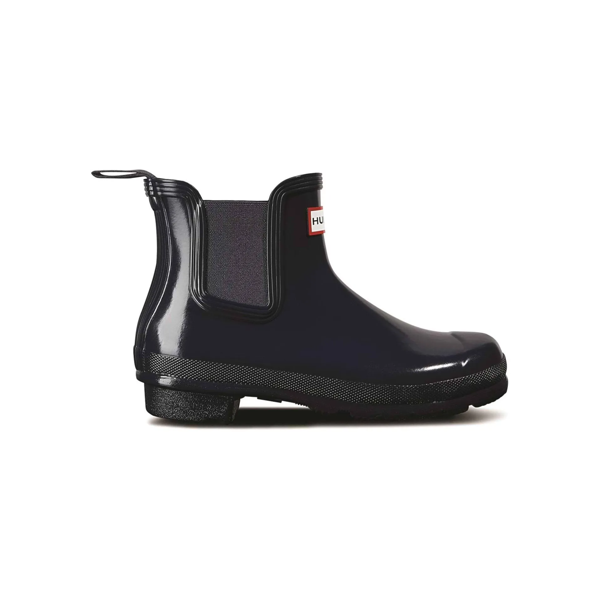 Product DescriptionThe Hunter Original Chelsea Boot has been re-engineered for an improved fit and all-day comfort. A wider ankle circumference, and an increased curve in the heel and around the Achilles tendon delivers an even more comfortable fit.FeaturesTrue to size, Regular fitElasticated-gussetsNylon pull-tabCrafted from natural vulcanised rubber with gloss finishFitMaterial CompositionUpper: Rubber. Lining: Polyester. Sole: Rubber.Care