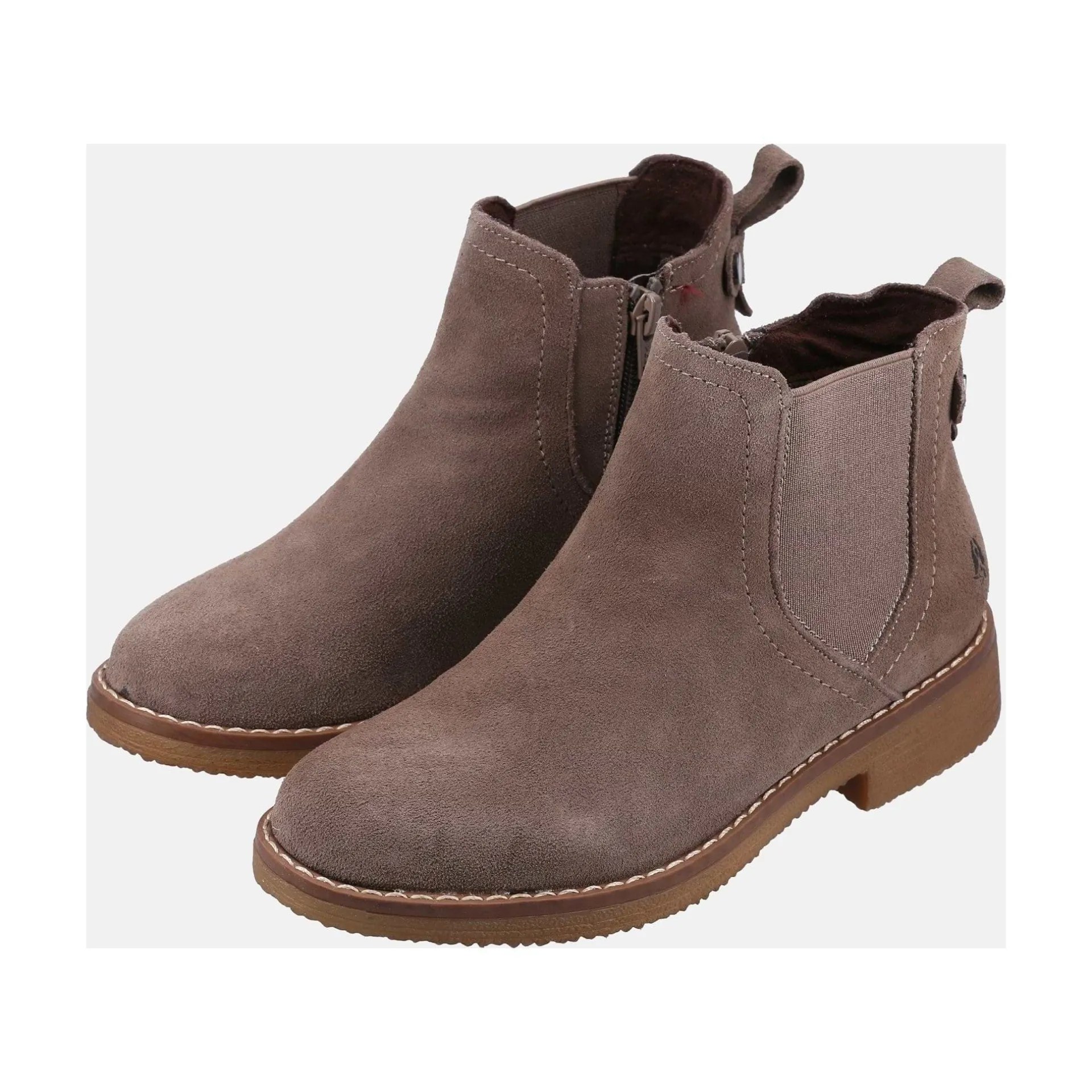 Product DescriptionWorry Free Water Resistant suede chelsea boot. Maddy features cosy fleece lining and a cushion comfort memory foam insole, with an inside-zip and elastic gusset for comfortable wear. Also available in children’s sizes to match your mini-me.FeaturesWorry Free Water Resistant Real Suede UpperElastic gusset for extra giveCosy fleece lining with leather collarCushion comfort memory foam insoleFunctioning inside zipFlexible hardwearing TPR soleHeel height approximately 35mmFitMaterial CompositionUpper: Suede Leather. Lining: Fleece. Sole: TPR.Care