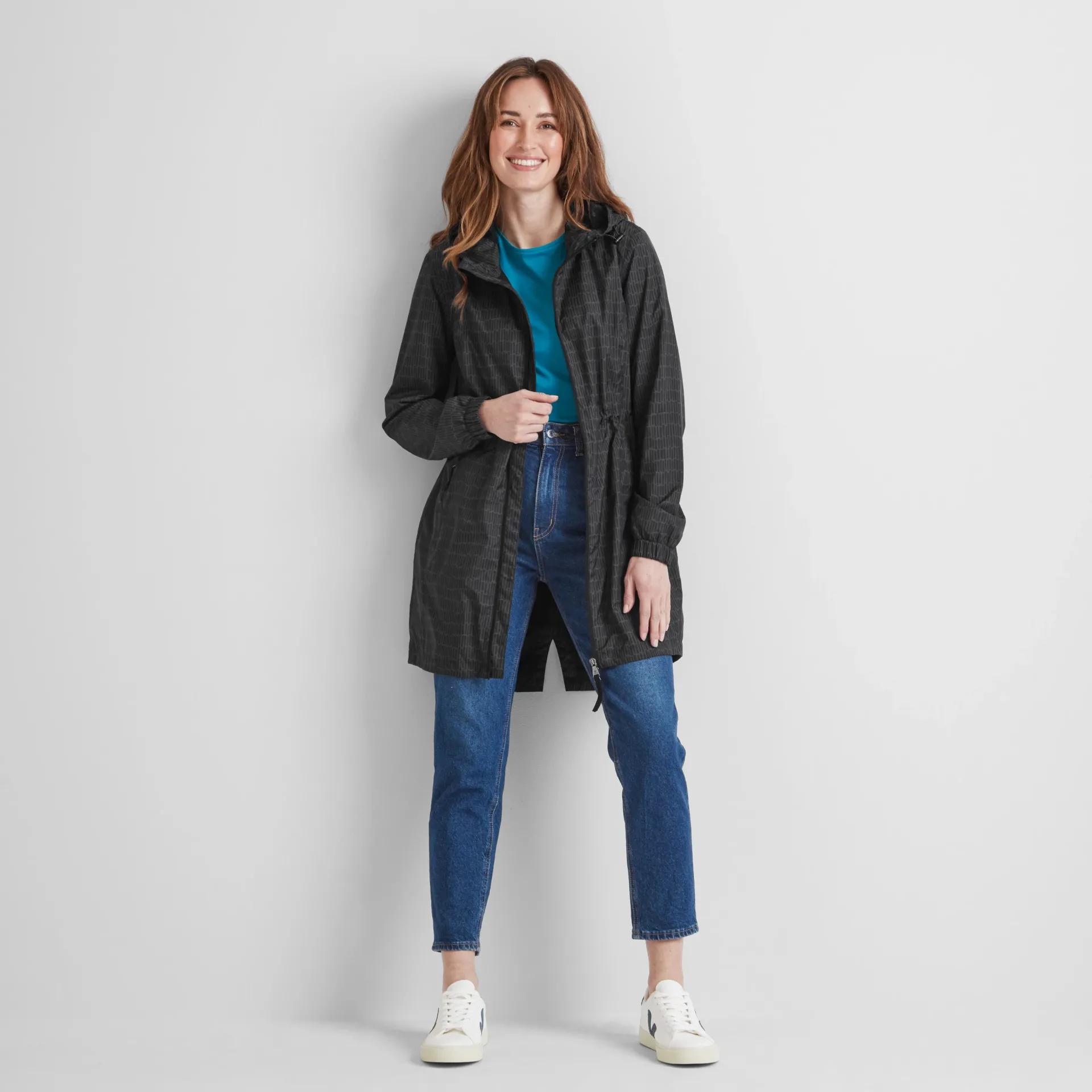 Product DescriptionKeep the Kilnsey packable rain jacket to hand and you won’t get caught out by seasonal showers – which we have our fair share of here in Yorkshire where our design team are based. This lightweight jacket is waterproof and breathable and the fully taped seams block out the rain to keep you completely dry. Kilnsey is cut in a longer length with a fishtail split at the bottom of the curved back and an adjustable elasticated waist for a feminine silhouette. It has a breathable mesh lining and sleeves with elasticated cuffs and easy glide taffeta lining, so it slips on and off with ease. Designed in fun patterns and colours inspired by trips to Whitby Bay, this rain jacket is finished with thoughtful design touches, such as pullers and trims dyed to match and a tonal TOG24 logo on the chest. You’ll also appreciate practical features such as the two-way front zip, a fixed, adjustable hood that you can shape round your face and two lower zip pockets.FeaturesWaterproof (5k), Breathable (5K)Fully taped seamsWindproofDWR water repellent coatingBreathable mesh liningSleeves with elasticated cuffs and easy glide taffeta liningFabric and mesh packaway bagTwo-way front zipFixed adjustable hoodElasticated waist with internal adjustment toggles2 lower zip pocketsPrinted TOG24 logo on the chestFitStudio model Emma Dress 8 UK, Height 5’9