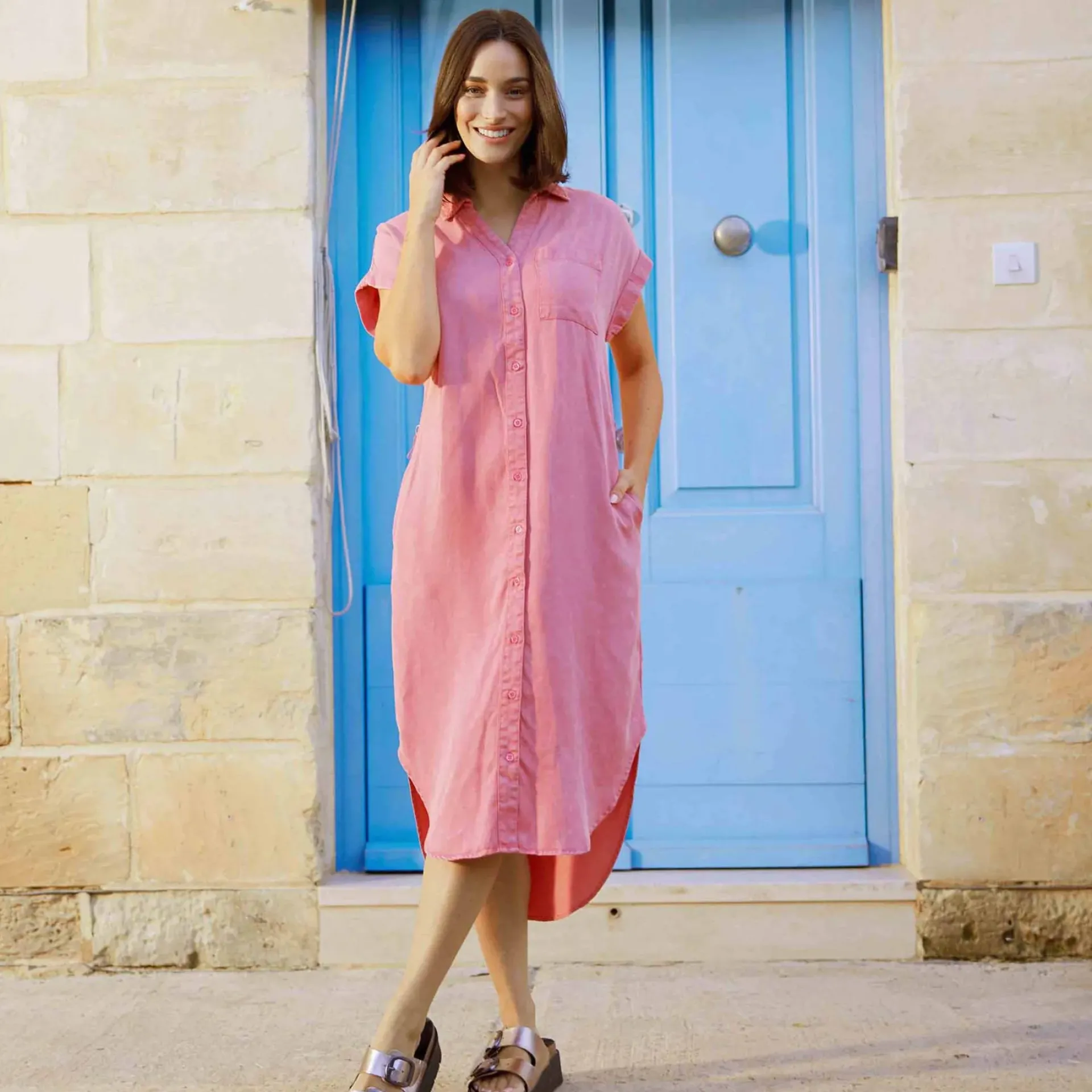 Clearance*This product is excluded from all additional promo code discountsProduct DescriptionThe Lenira shirt dress will likely become your most grabbed-for item this summer. Made from luxuriously soft Lyocell, it’s super drapey with a relaxed fit that’s perfect for casual days exploring new towns on holiday, or laid-back weekends closer to home. Featuring pearlised buttons, a curved hem with side splits that gives a really satisfying silhouette, and dolman sleeves you can roll up and secure, it’ practical and stylish. The removable tie belt lets you cinch the waist for a flattering fit or wear it loose for a more relaxed vibe. With a patch pocket on the chest and concealed side-seam pockets, this dress is as functional as it is chic. Pair with trainers for daytime adventures or dress it up with sandals for dinner al fresco.FeaturesLyocell DressPearlised Buttons To OpeningRemovable Tie Belt To WaistDolman Sleeves With Turn UpPatch Pocket On The ChestBack YokeConcealed Pockets In Side SeamCurved Hem With Side SplitPleat On The BackLogo Embroidery Above The HemFitStudio model Natasha Dress 8 UK, Height 5’10