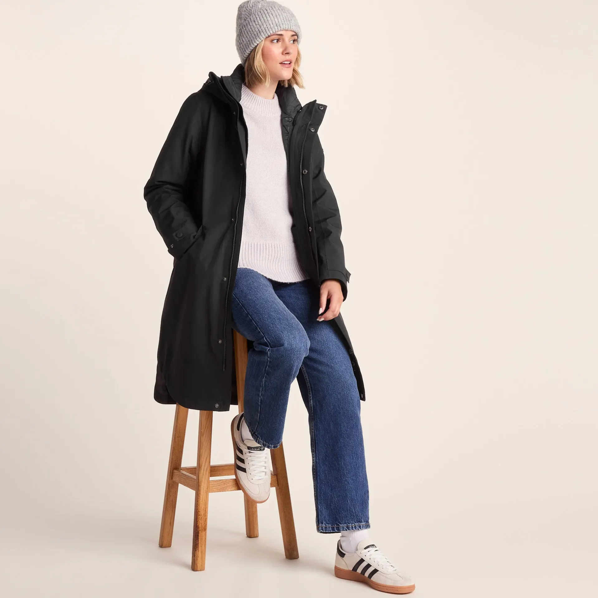 Product DescriptionLooking for a womenâs jacket that can handle whatever the day throws at you? The Lyra womenâs 3-in-1 jacket has got your back. Whether it’s chucking it down with rain, the wind’s picking up, or the sun is finally making an appearance, this versatile womenâs coat has you covered. You can wear the waterproof shell and insulated inner for full protection or wear one on its own, depending on what the weather’s doing.nWhen the rain comes down, you’ll appreciate the outer jacket’s serious waterproof credentials with its 10K waterproofing, 10K breathability, and windproof design. The sealed seams and water-repellent finish keep you dry and cosy, while the wired hood peak shields your face, and a 2-way zip with press stud fastening ensures you’re sealed from top to toe.nThe Lyra womenâ 3-in1 jacket includes a flattering A-line cut and a gently curved hem, which lets you move freely, whether you’re dashing around or just out for a wander. Underneath, a mesh-lined upper lets your skin breathe, wFeaturesOuter jacket – Waterproof (10K), breathable (10K) and windproofFully taped seams and water repellent coating (DWR)A-line shape with curved hem and back pleat detailMesh lined upper body, taffeta lined hood, sleeves u0026amp; lower bodyFixed hood with fused hood facing and wired hood peak 2 Way zip opening fastened with press studsAdjusters on hood, and cuffs2 lower pockets with press stud fasteningTOG24 badge on sleeveInsulated A-line inner jacket with curved hemLarge diamond quiltingZip opening to front of jacket that also zips into outer jacket and loops on cuffs and back neck 2 lower zip pockets with TOG24 embroidery on LHSFitStudio model Meg Dress 8 uk Height 5’10* Bust 34 Waist 25.5