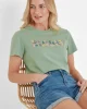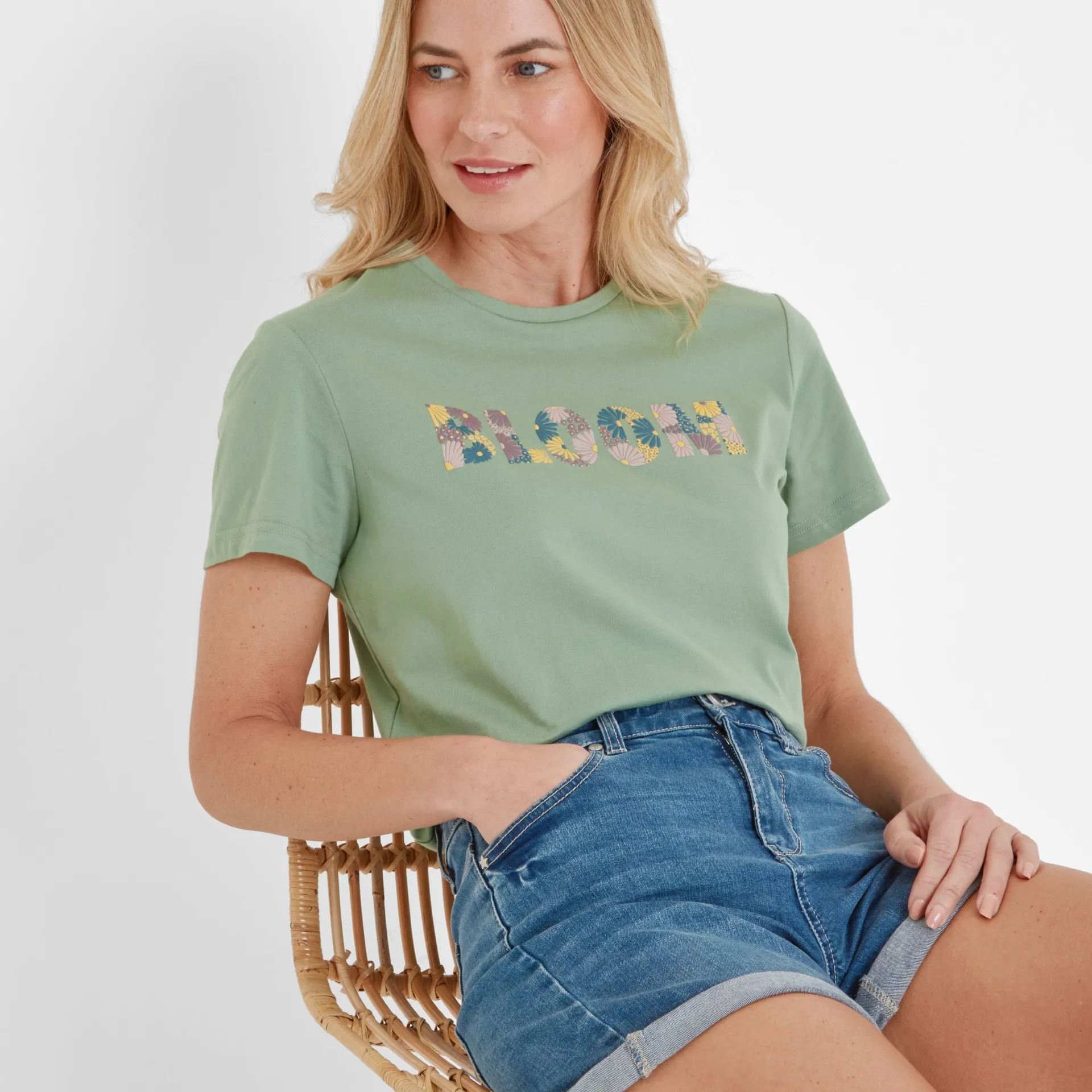 Clearance*This product is excluded from all additional promo code discountsProduct DescriptionThe Minda printed T-shirt gives all the summer vibes. Crafted from supersoft cotton, this T-shirt is lightweight, comfy, and built for laid-back days. Featuring the uplifting slogan ‘BLOOM’ in raised print on the chest, it’s a subtle reminder to embrace the little joys in life. With short sleeves and a relaxed fit, it goes with almost anything and is perfect for any casual occasion, from easy-going strolls with ice cream to unwinding in the garden. Finished with a TOG24 label at the hem, the Minda Tee is your go-to for simple style and everyday comfort.FeaturesSUPERSOFT COTTON TEESHORT SLEEVESRAISED PRINTED SLOGAN ON THE CHESTTOG24 LABEL ON THE HEMFitStudio model Izzy Dress 8 UK, Height 5’7