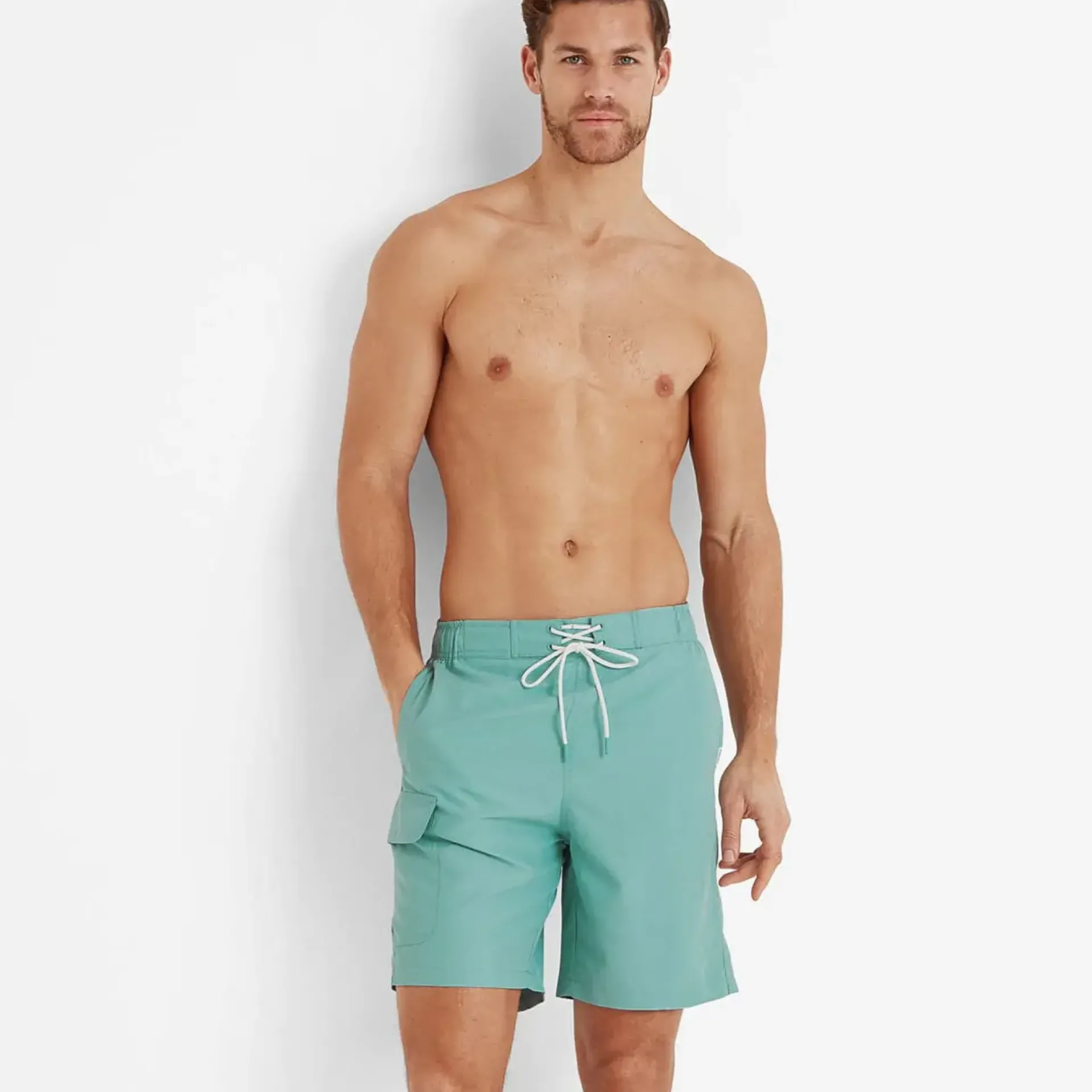 Clearance*This product is excluded from all additional promo code discountsProduct DescriptionOur Aslan men’s swim shorts are made from 100% recycled polyester fabric, helping you to make a sustainable choice with your swimwear whilst still looking great. Equipped with an elasticated waistband with drawcord you can be sure of a comfortable fit. Featuring an inner mesh brief, two hip pockets, one patch pocket on the leg and one back pocket, they blend comfort and style.FeaturesMade from 100% recycled polyester fabricElasticated waistband with non-functional drawcord detailInner mesh brief2 hip pockets, 1 patch pocket on leg u0026amp; 1 back pocketTOG24 label on pocket openingFitStudio model Tyler is wearing size M and is 6’4