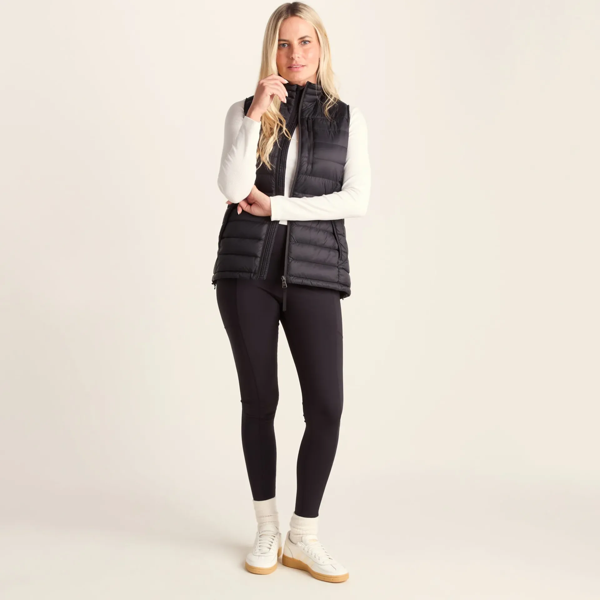 Product DescriptionPerfect for adding a layer of warmth without any bulk, our Drax down filled womens gilet is soft and silky to the touch, incredibly light and packs down small into the chest pocket. You’ll have no trouble finding room for it in your case when you go away, and it also makes a handy travel pillow. This padded bodywarmer gets its incredible warmth from naturally insulating duck down that traps heat without being bulky. Sleek panelling and a high neck creates a flattering fitted silhouette and it feels as good as it looks with details like a soft chin cover over the top of the zip. Designed to squish down really small, then spring back into shape, Drax has roomy side pockets protected by an elasticated flap and small toggle adjusters at the hem keep the chill out. Designed in Yorkshire, where we always need layers, our Drax womens gilet is ideal for wearing over a top when it’s only a bit chilly or layering under a coat when the wind is howling. Reflecting our Spen Valley ethos of Truth OvFeatures90% duck down 10% feather, 800 Fill PowerLightweight, Breathable u0026amp; Ultra WarmZip chest pocketReverse entry lower pocketsToggle adjusters to hemJacket packs away into chest pocketRubber badge to sleeve u0026amp; logo print to chestFitStudio model Isabelle is wearing size 8 and is 5’7