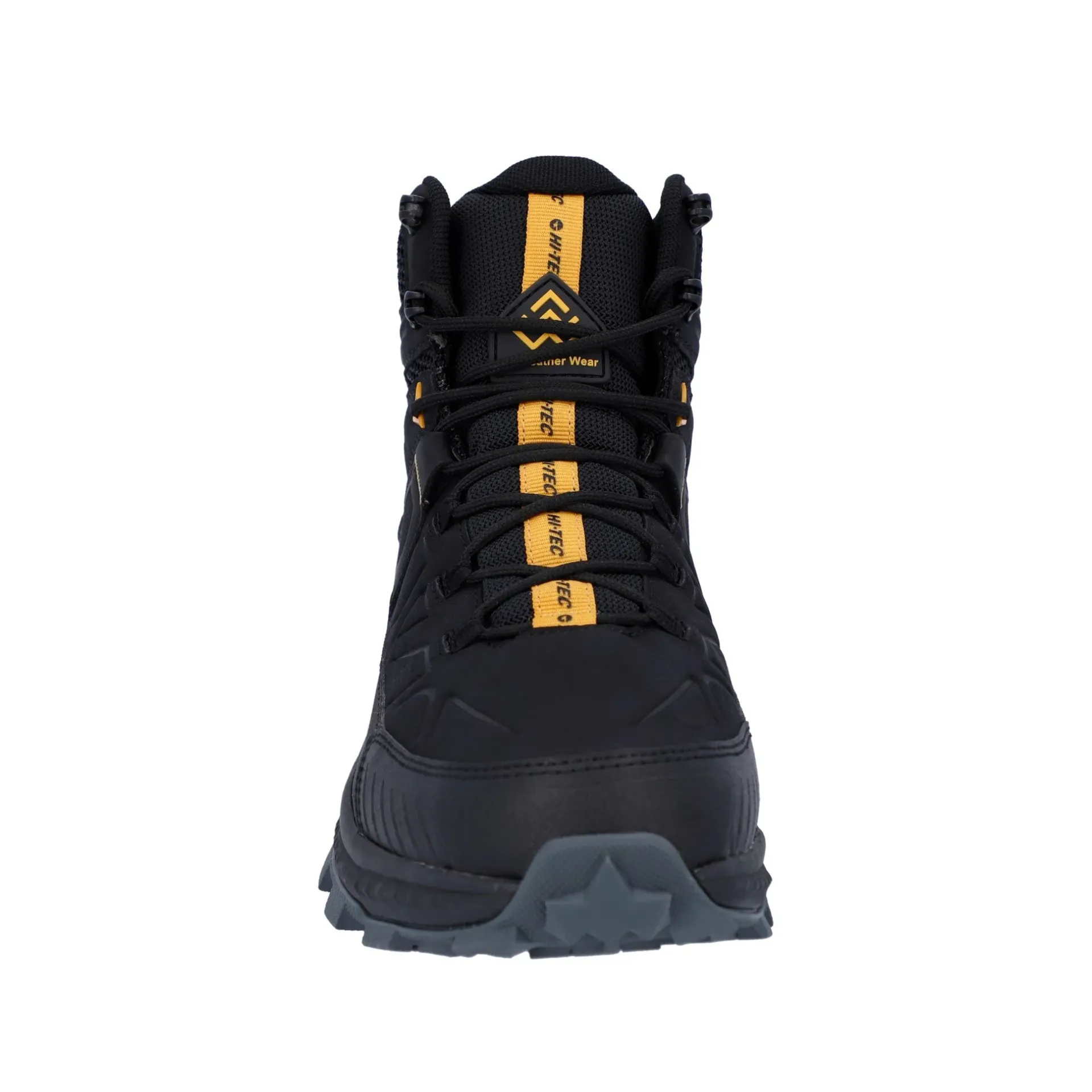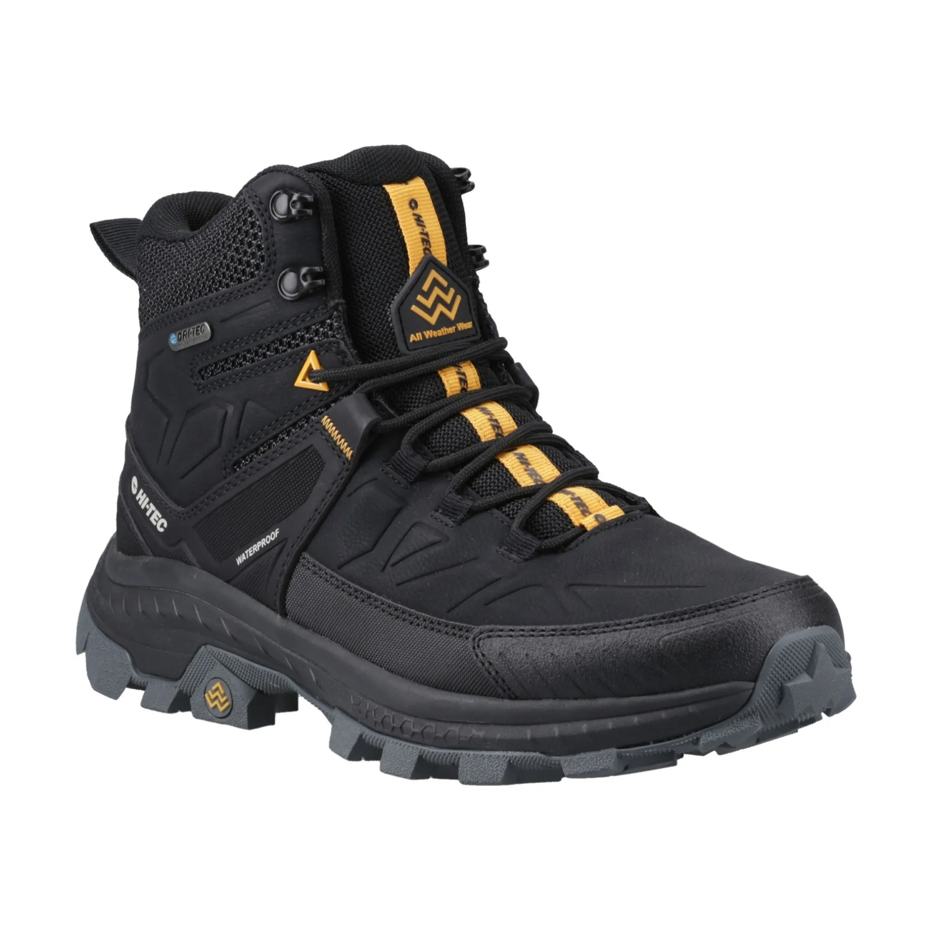 Product DescriptionAWW stand for All Weather Wear and these multi purpose, waterproof and breathable hiking boots offer performance, protection and comfort whatever the weather. Deep lugged outsole ensures unbeatable traction and grip whatever the terrain.FeaturesMens waterproof hiking boot engineered to perform in all weather conditions and environments.Lightweight, synthetic upper with PU overlay for support and structureProtective rand for enhanced durabilityToe and heel overlays to help prevent scuffingSoft padded collar for comfort and secure fitDri-Tec waterproof and breathable membrane ensures dry feetLightweight compression moulded EVA midsole for underfoot cushioningNylon forked shank provides lightweight torsional rigidityNew durable carbon rubber MDT outsole improves uphill and downhill traction.FitMaterial CompositionUpper: PU/Polyester. Lining: Polyester. Sole: RubberCare