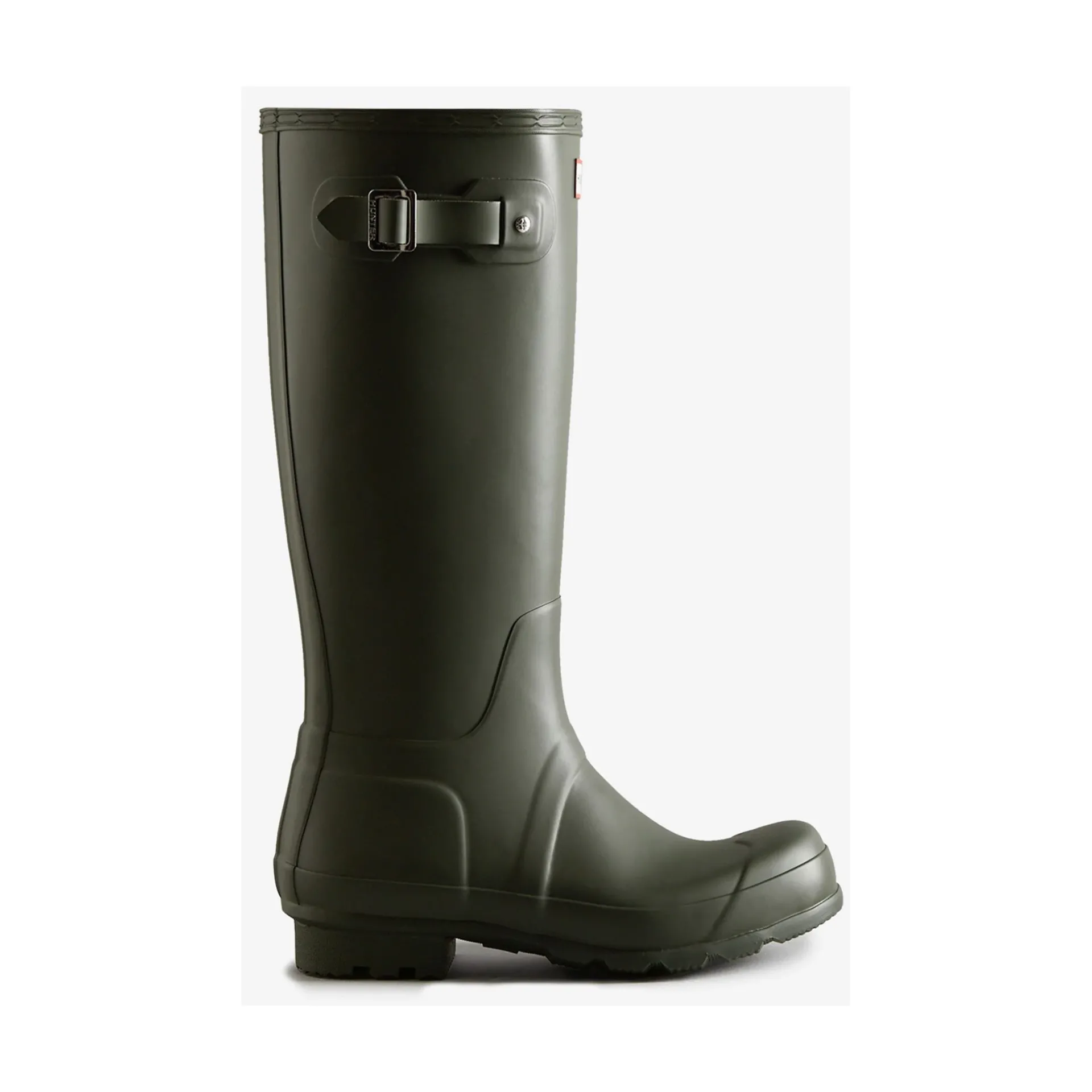 Product DescriptionPerfect for wet weather conditions, this mens Wellington Boot is the heart of the Hunter Original brand since 1956. Formed of natural rubber, each pair is made from 28 hand-cut parts.FeaturesFormed of natural rubber, each pair is made from 28 hand-cut parts and assembled over three days on an aluminium last bespoke to Hunter, before being vulcanised for superior protection.True to size, Regular fit.Featuring the Hunter Original tread pattern, and a comfortable polyester lining, these tall navy welly boots are a rainy-day necessity.FitMaterial CompositionUpper: Rubber. Lining: Polyester. Sole: Rubber.Care