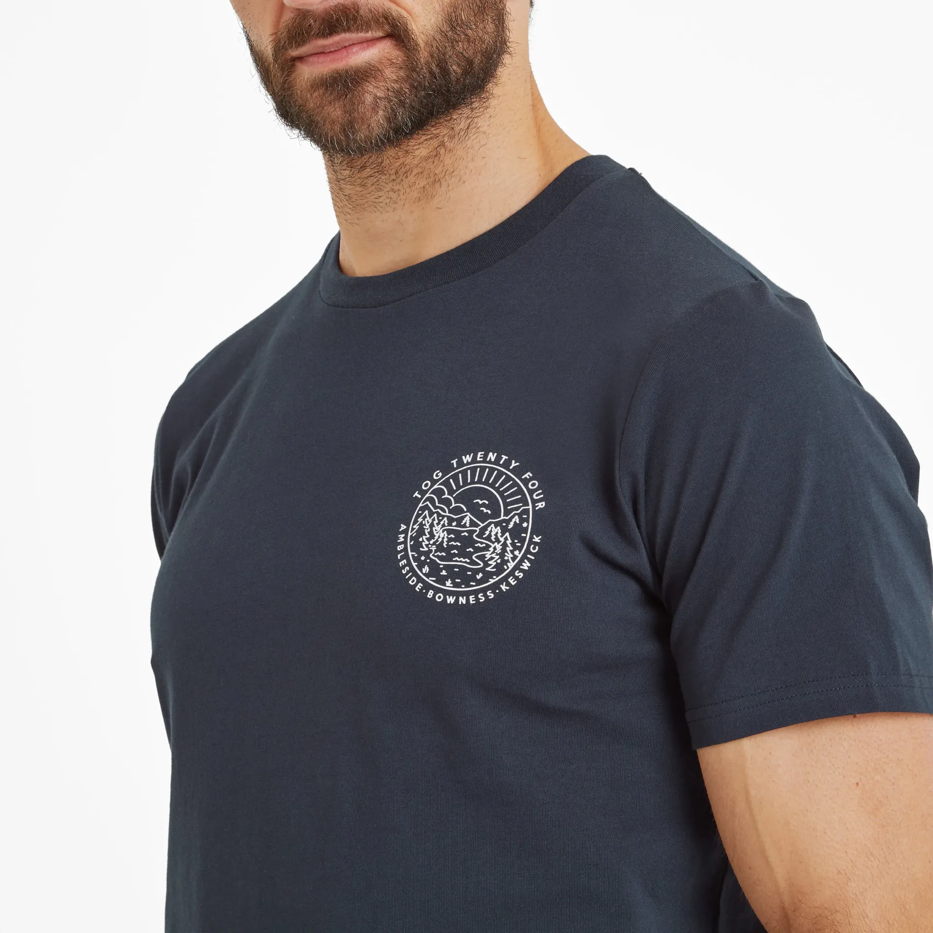 Product DescriptionCelebrating the stunning lakeside towns of Ambleside, Bowness and Keswick, our Lakes men’s crew neck t-shirt proudly displays a small graphic on the chest, with a larger version on the back. These depict the glorious Lake District landscape edged with the name of the towns and TOG Twenty Four printed in jewel colours. This cool and comfortable t-shirt comes in supersoft 100% sustainable cotton that feels great against your skin and it has a comfy ribbed crew neck too. rn rnLakes makes the perfect gift for friends and family as a reminder of happy hikes enjoying the stunning Lake District scenery. This graphic tee was designed by our team based in the beautiful Spen Valley in West Yorkshire and the finishing touch is a small woven TOG24 label on the side seam.FeaturesSupersoft 100% sustainable cotton short sleeve teeRib crew neckSmall graphic print on chestLarge graphic print on backWoven label on side seamFitStudio model Freddie is wearing size M and is 6’1