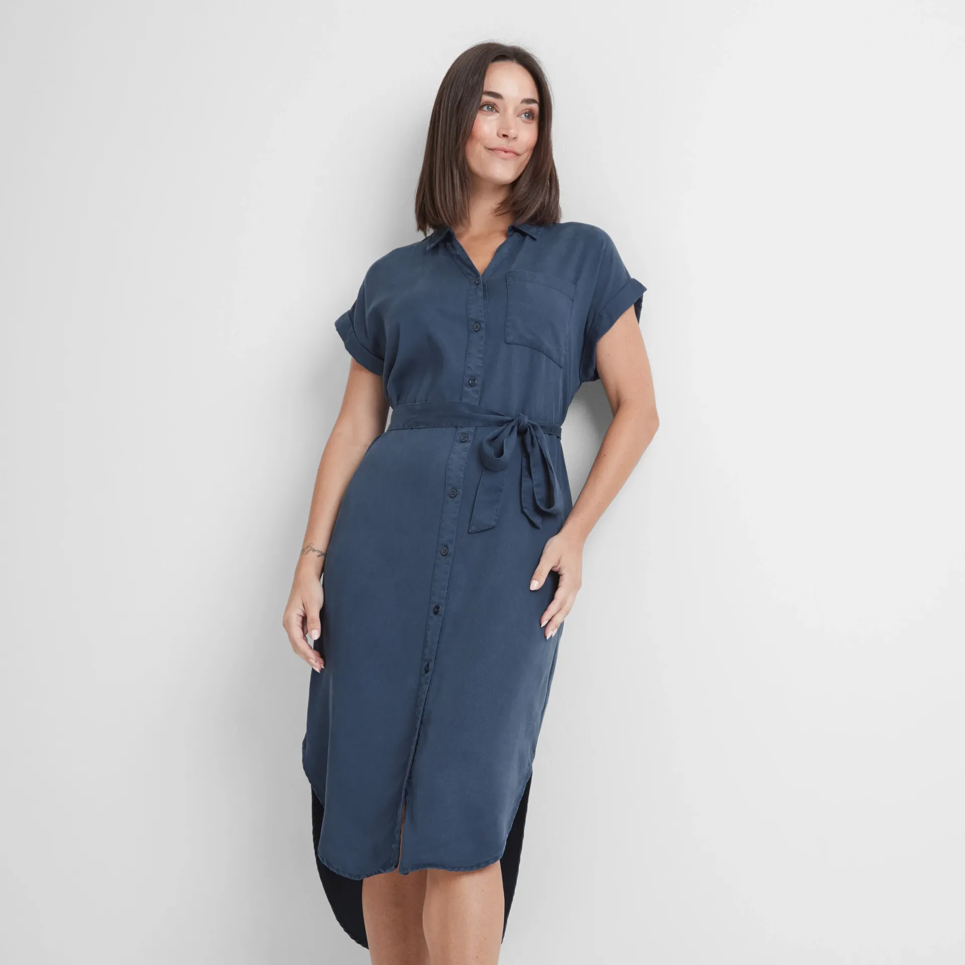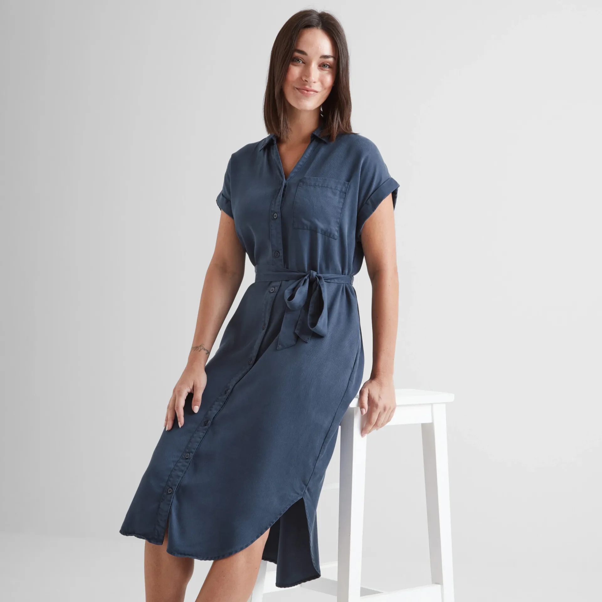 Product DescriptionThe Lenira shirt dress will likely become your most grabbed-for item this summer. Made from luxuriously soft Lyocell, it’s super drapey with a relaxed fit that’s perfect for casual days exploring new towns on holiday, or laid-back weekends closer to home. Featuring pearlised buttons, a curved hem with side splits that gives a really satisfying silhouette, and dolman sleeves you can roll up and secure, it’ practical and stylish. The removable tie belt lets you cinch the waist for a flattering fit or wear it loose for a more relaxed vibe. With a patch pocket on the chest and concealed side-seam pockets, this dress is as functional as it is chic. Pair with trainers for daytime adventures or dress it up with sandals for dinner al fresco.FeaturesLyocell DressPearlised Buttons To OpeningRemovable Tie Belt To WaistDolman Sleeves With Turn UpPatch Pocket On The ChestBack YokeConcealed Pockets In Side SeamCurved Hem With Side SplitPleat On The BackLogo Embroidery Above The HemFitStudio model Georgia Dress 8 UK, Height 5’10