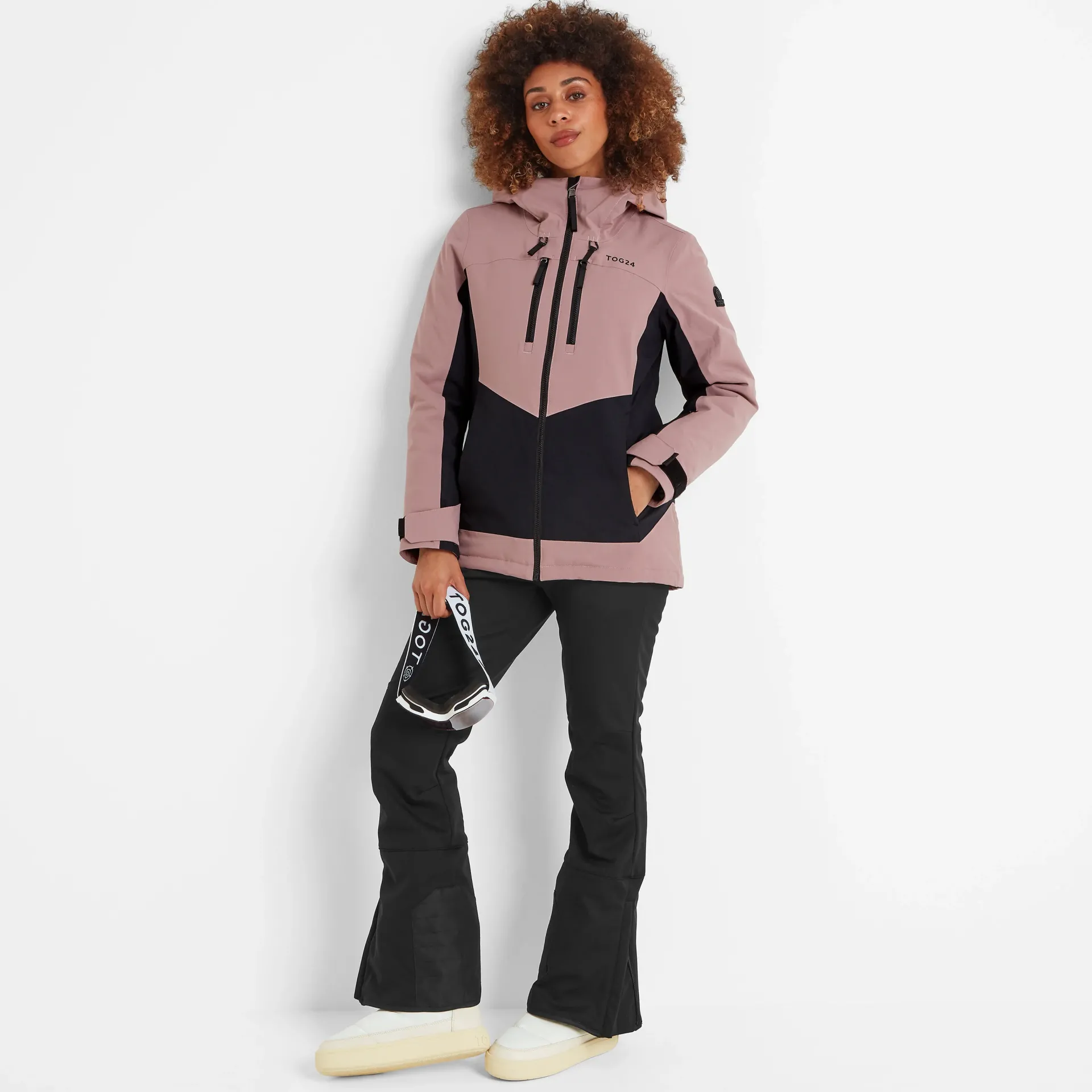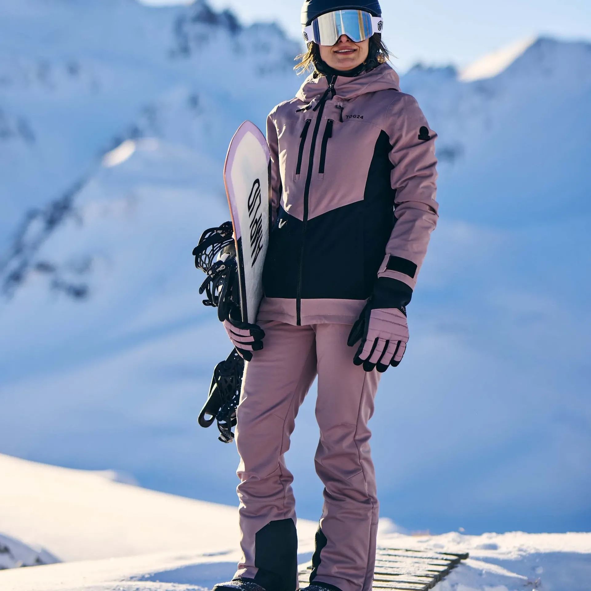Product DescriptionWhen it comes to skiwear, Montana is our most premium option. Made from the finest weather-resisting materials, with taped seams, a water repellent coating and a warm insulated fill , the Montana jacket will keep you warm, impeccably dry and comfortable. The stylish colour block design will keep you looking great whilst also protecting you from all of the elements. Featuring practical essentials including snow cuffs and a snowskirt to keep the wind and snow out, a D-ring to attach your gloves to, an inner mesh pocket for storing your goggles, and four zip pockets on the front for storing your valuables, one of them including a goggle wipe attached to the inside. It also has a pocket on the sleeve to store your ski pass, allowing you to easily scan it without removing it when on the go. Montana’s helmet-compatible hood, deep neck and high collar offers supreme protection and the fused hood peak and hood adjusters give you even more protection against the elements. The jacket includes eFeaturesWaterproof (10K), Breathable (10K), and WindproofPolyester FillingFully taped seamsWater repellent coating (DWR)Durable fabric with colour block panelsFixed hood with shaped and fused hood peakChunky easy grab adjusters on the hood, hem and cuffsFull length zip with glove-friendly puller2 chest pockets, 2 Lower zip pockets, 1 sleeve zip pocket for ski passSki features include; snow cuffs, 1 inner mesh goggle pocket, ski goggle wipe, glove ringSnowskirt has a gel print on the edge for grip and a DWR finish – this is not removeable.TOG24 badge on sleeve u0026amp; logo print on chestFitStudio model Emma is wearing size 10 and is 5’9