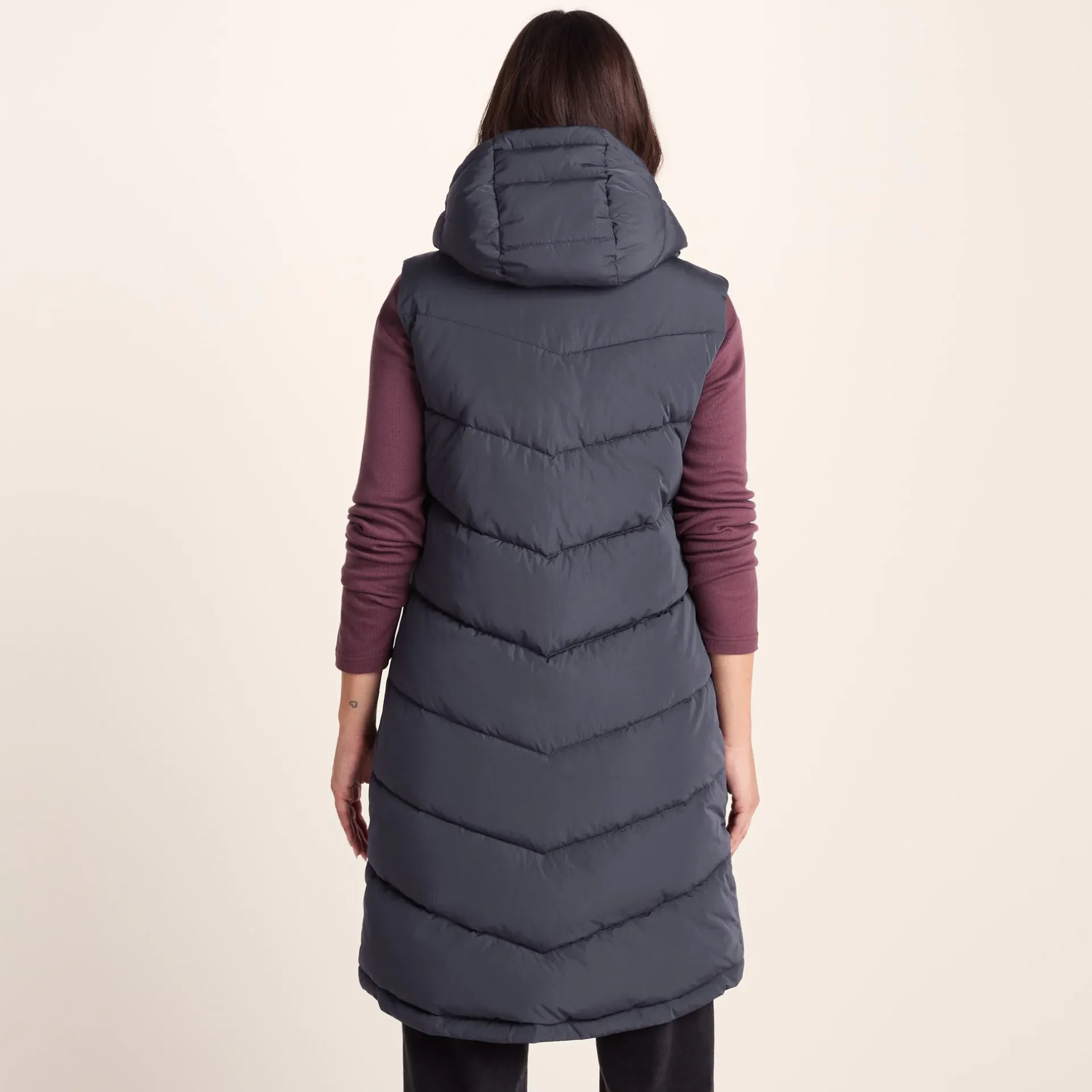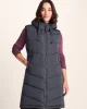 Product DescriptionWhen itâs cold and windy, but you need your arms free for a full range of movement, our Ranskill extra long padded gilet is just the job. Ranskill is quilted in a chunky, but flattering, chevron design and thickly padded with a warm, insulated eco filling. The soft and cosy fixed hood can be adjusted with dyed to match chunky drawcords for a custom fit. Designed by our team in West Yorkshire to be robust enough to stand up to everyday wear, Ranskill has a full length two-way zip secured with press studs, making it easy to slip on and off, and two cosy lower zip up pockets with chunky pullers that can double up as hand warmers if you forget your gloves. Ranskill comes in colours inspired by the natural beauty of Yorkshire and the finishing touch is our signature TOG24 embroidered logo on the pocket.FeaturesWind resistant u0026amp; warmInsulated filling made from recycled plastic bottlesChevron quilted designChunky hood drawcords2 Way zip opening on front of gilet fastened with press studs2 Lower zip pocketsLogo embroidery on pocketFitStudio model Georgia Dress 8 uk Height 5’10* Bust 34 Waist 25.5
