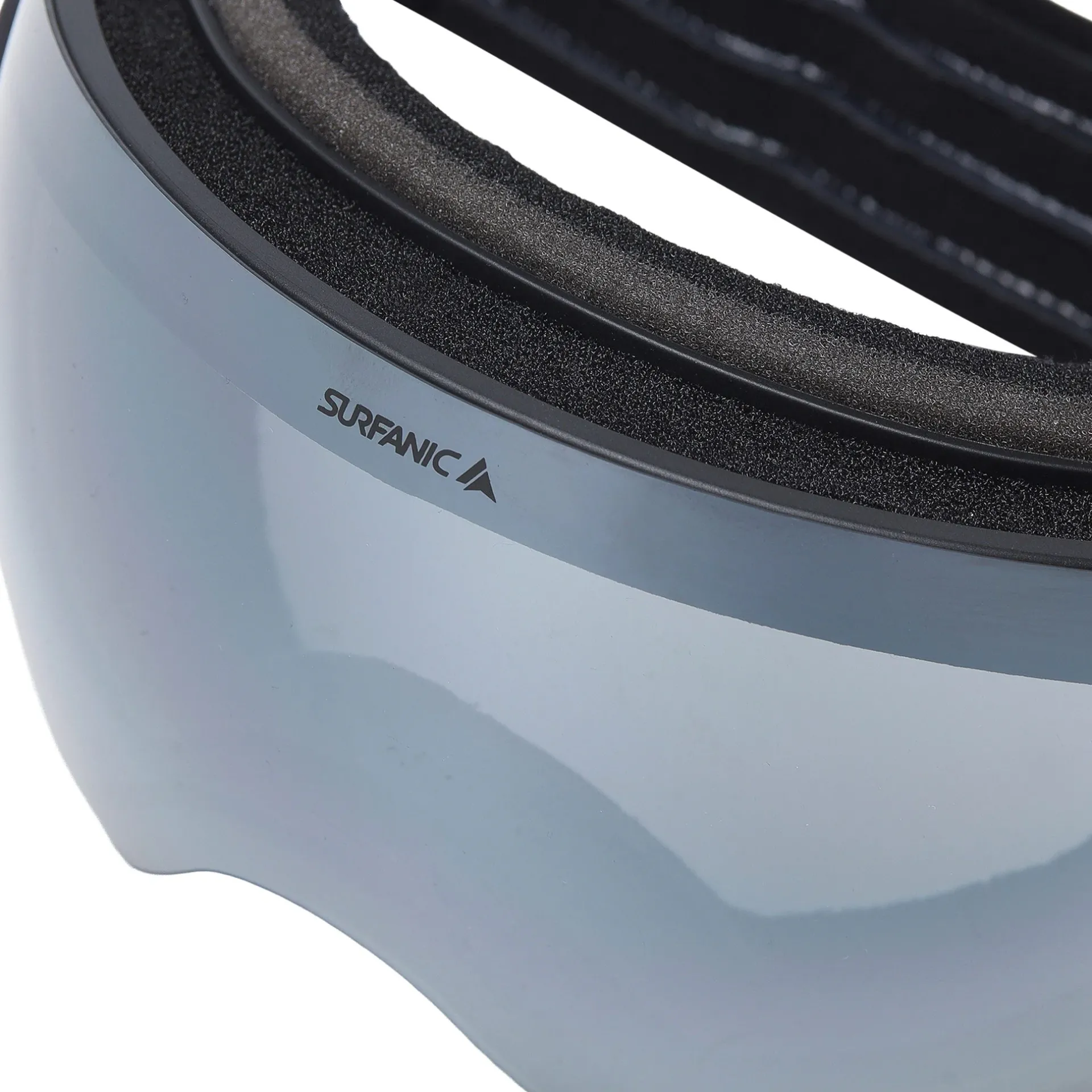 Product DescriptionIntroducing the Maverick Goggle from Surfanic, a game-changer in winter sports eyewear. Designed with a bold, oversized look, the Maverick Goggle is not just about making a statement on the slopes; it’s about delivering unparalleled performance and comfort.At the heart of the Maverick Goggle is its toric lens, which combines the best of both cylindrical and spherical lenses. This design offers superior optical clarity and a wide field of vision, ensuring you can see every detail of the terrain. The toric lens also provides excellent peripheral vision, crucial for spotting obstacles and other skiers.A key feature of the Maverick Goggle is its dual-layer anti-fog system. This cutting-edge technology forms a thermal barrier between the cold external air and the warm internal air, this is combined with a hydrophilic lens coating which effectively prevents fogging and ensures your view remains unobstructed.Strategically placed vents allow for optimal airflow, reducinFeaturesAnti Fog System: Special anti-fog coatings are applied to the double lens, creating a hydrophilic surface that spreads moisture evenly, preventing foggingFull Frame Ventilation: Directional airflow across the lens, prevents fogging and allows moisture evaporationAdjustable Strap: Anti slip silicone coated straps stay in place over a helmet and are fully adjustable for the perfect fitUV Protection: All Surfanic goggles filters 100% of harmful UVA/UVB rays with a UV400 ratingCushioning Face Foam: Provides a secure and comfortable fitSoft Touch Goggle Bag: All Surfanic goggles come complete with soft touch bag for storage, this helps to protect the lens and is idea for cleaning**Lens Information:**Category 2 Lens: Category 2 lenses are ideal for those who need reliable performance in changing light environments, ensuring clear vision and reducing eye strain. Ideal for both sunny and cloudy conditionsFrame Colour: Matte BlacFitMaterial CompositionCare