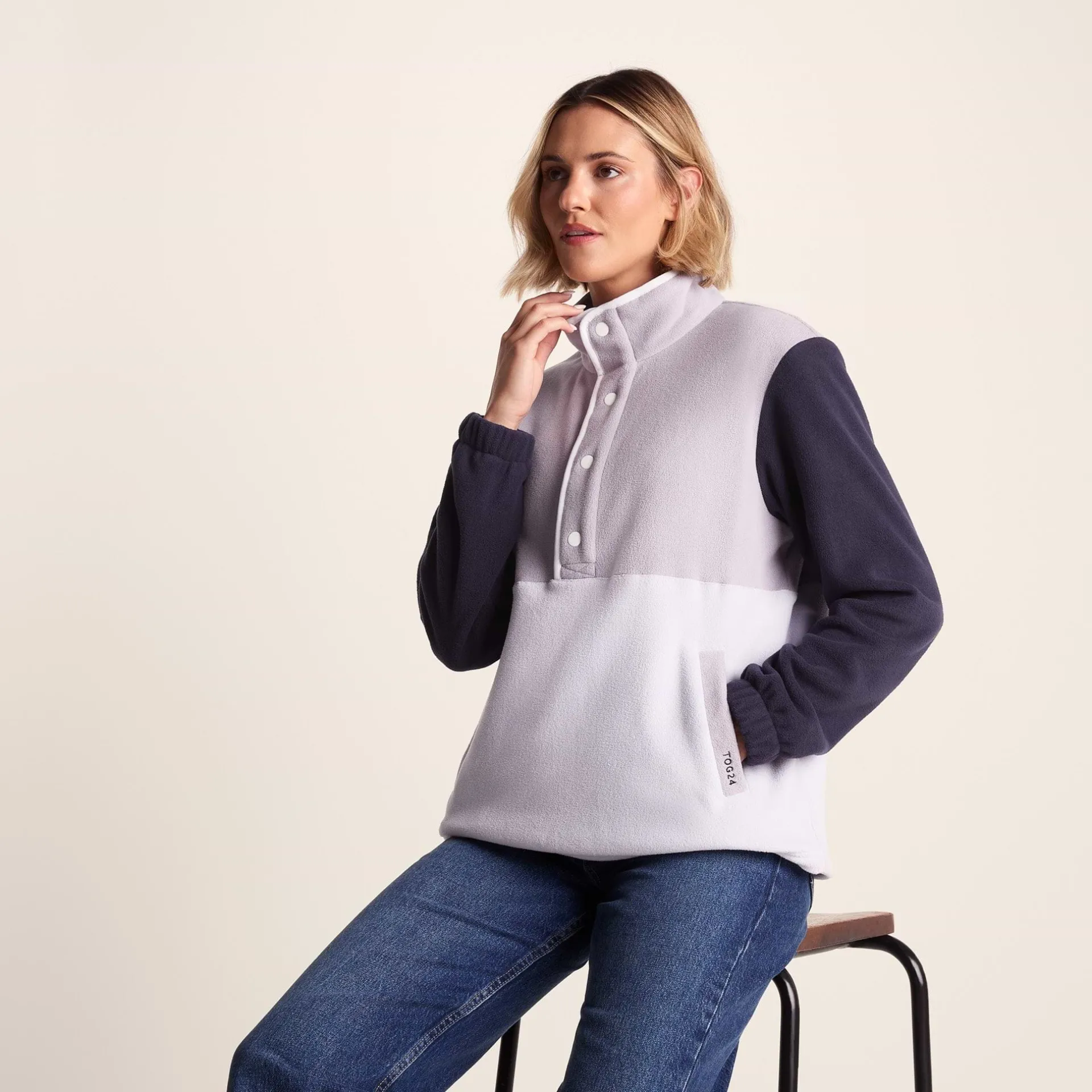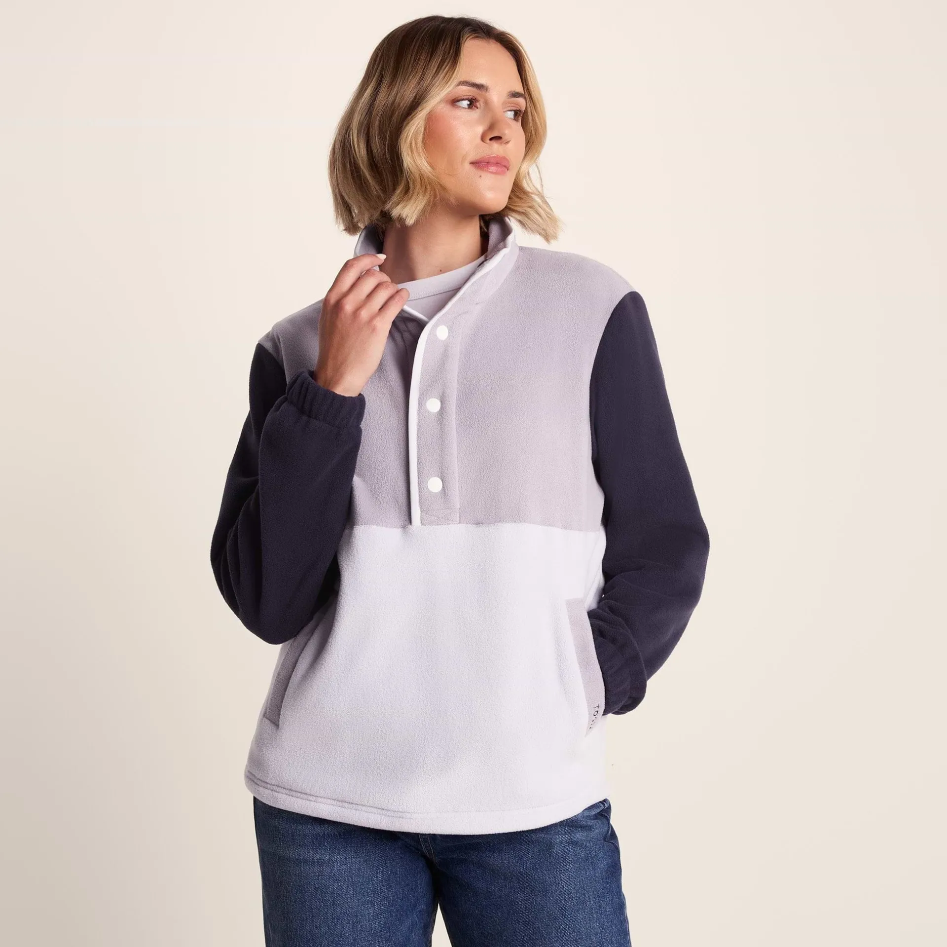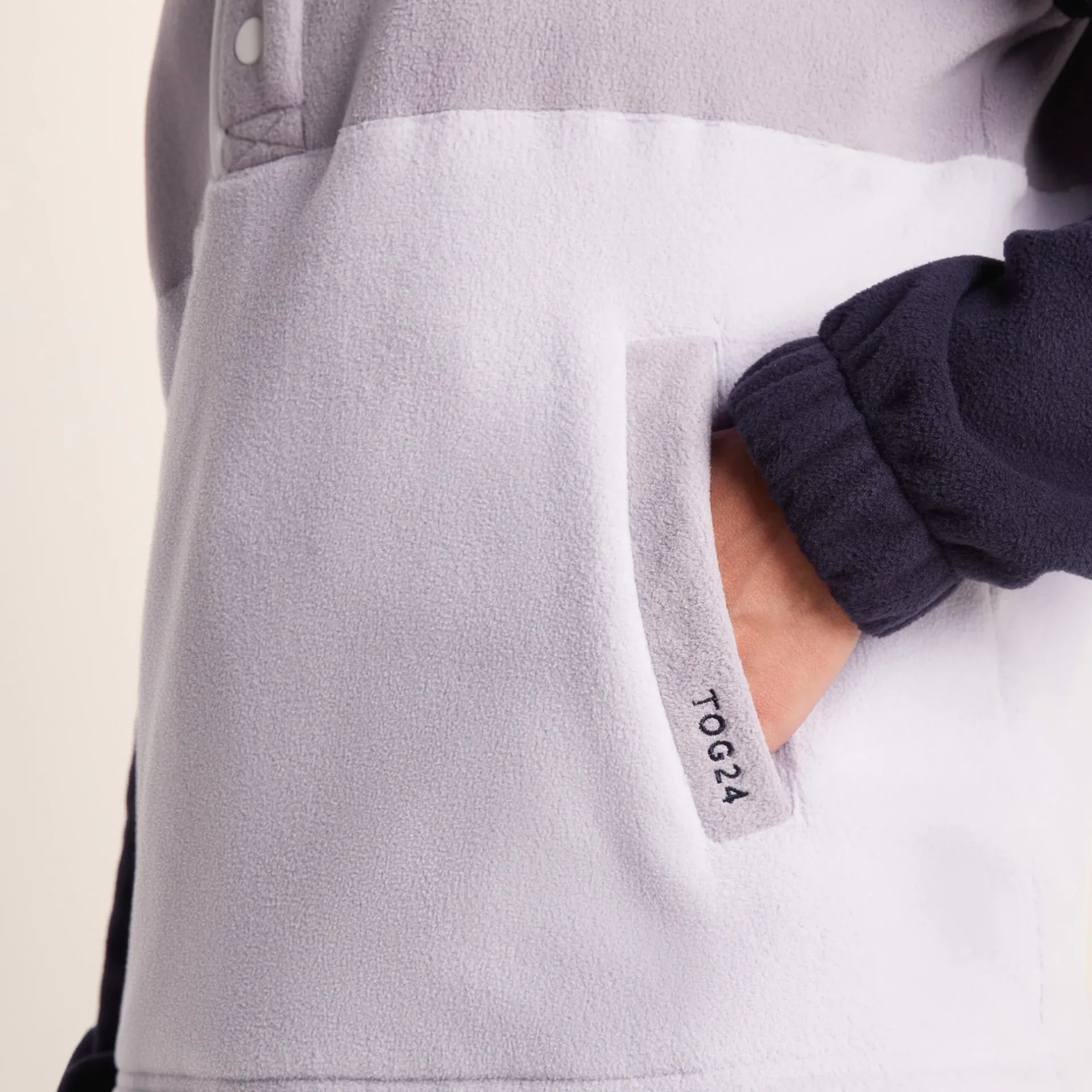 Product DescriptionLet’s talk about those in-between days – not freezing, not warm, just… British weather being its unpredictable self. That’s exactly when the Symes fleece steps in. This boxy little microfleece number is the layer that will have your back when the weather can’t make up its mind.nThe deep neck with press studs gives this pullover a relaxed vibe while secretly providing ventilation control that you’ll appreciate during those uphill sections of your countryside rambles. And speaking of secrets, the anti-pill finish means this fleece stays looking fresh, even after your washing machine has had multiple goes at it.nWhen the wind decides to get playful, simply pull on those toggle adjusters at the hem and show Mother Nature who’s boss. The elasticated cuffs and collar binding work overtime to trap your body heat, while the lightweight microfleece feels so good you might forget you’re layered up!nFinished with a signature TOG24 embroidery, this fleece isn’t just practical – it’s that reliablFeaturesLightweight u0026amp; warm microfleece pulloverAnti-pill finish1/2 neck with press stud fasteningColourblock designElasticated binding to collar and placketToggle adjusters to hemToggle adjuster to hemElasticated cuffsTOG24 embroidery on pocket220gsmFitStudio model Meg Dress 8 uk Height 5’10* Bust 34 Waist 25.5
