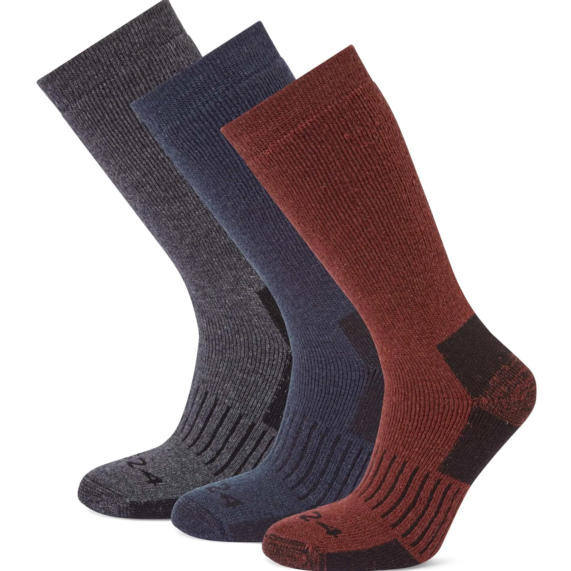 Black November EventGet an extra 15% off this product – automatically applied at checkoutCannot be used in conjunction with any other discountsProduct DescriptionVillach hiking socks offer supreme comfort and protection for your foot. Made from a merino blend fabric and with cushioning across the whole sock offering all round protection, these socks will ensure that rubbing and blistering is kept to a minimum so you can focus on enjoying your walk. Additional comfort features include a non-slip grip cuff that will keep your socks firmly in place, a re-inforced toe and heel section on each sock, elastic arch support and a flat toe seam to keep them comfy against the front of your shoe or boot. These socks come in a handy 3 pack and a variety of colours, so you’ll never be without a great pair of hiking socks!FeaturesMerino blend sockHeavy cushioningNon-slip grip cuffRe-inforced toe u0026amp; heelElastic arch supportFlat toe seamFitS = UK 3-5 (EU 35-38)M = UK 6-8 (EU 39-42L = UK 9-11 (EU 43-46)Material Composition36% Wool, 36% Acrylic, 26% Polyamide, 2% ElastaneCareMachine wash cold, Do not tumble dry