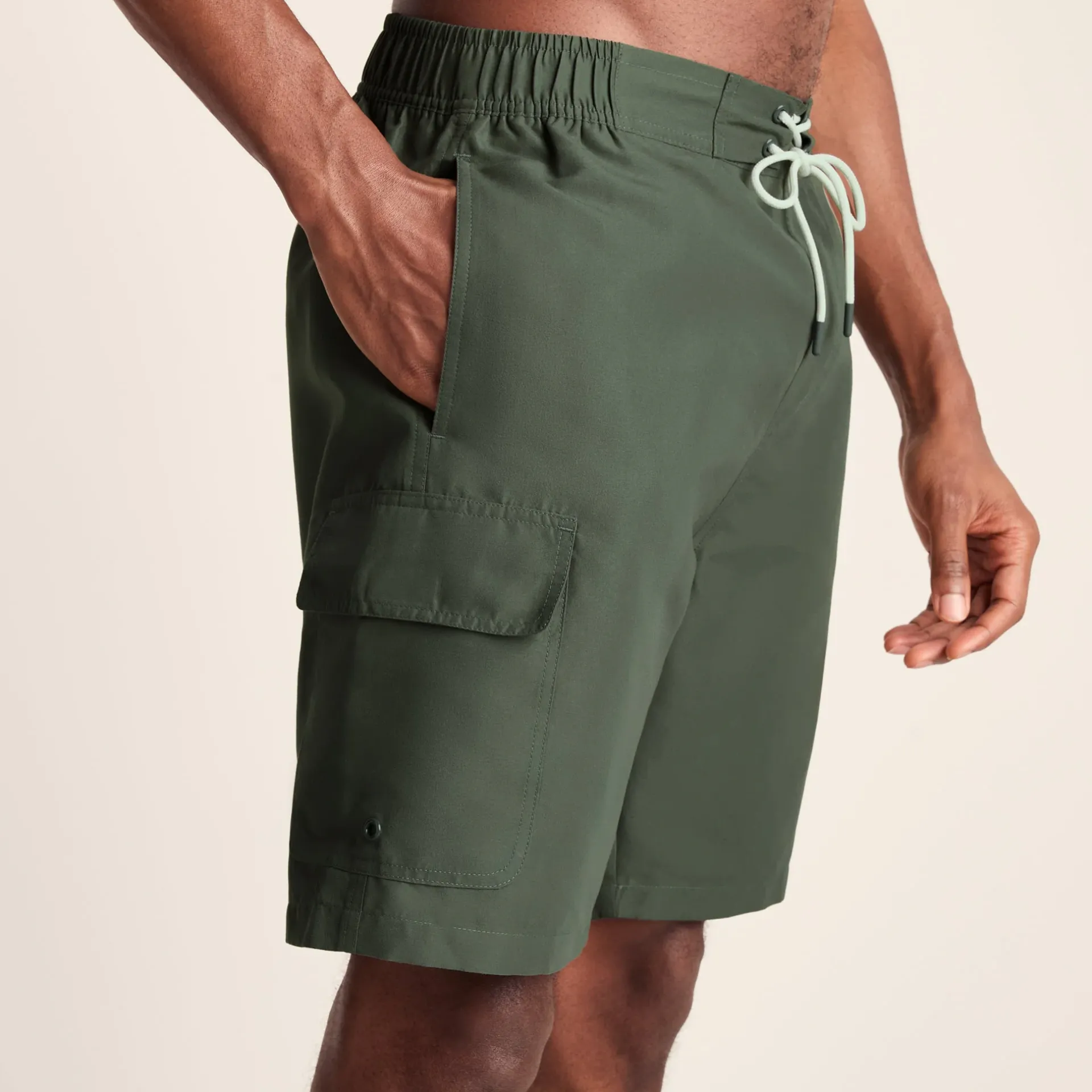 Product DescriptionOur Aslan men’s swim shorts are made from 100% recycled polyester fabric, helping you to make a sustainable choice with your swimwear whilst still looking great. Equipped with an elasticated waistband with drawcord you can be sure of a comfortable fit. Featuring an inner mesh brief, two hip pockets, one patch pocket on the leg and one back pocket, they blend comfort and style.FeaturesMade from 100% recycled polyester fabricElasticated waistband with non-functional drawcord detailInner mesh brief2 hip pockets, 1 patch pocket on leg u0026amp; 1 back pocketTOG24 label on pocket openingFitStudio model Efosa is wearing size M and is 6’1
