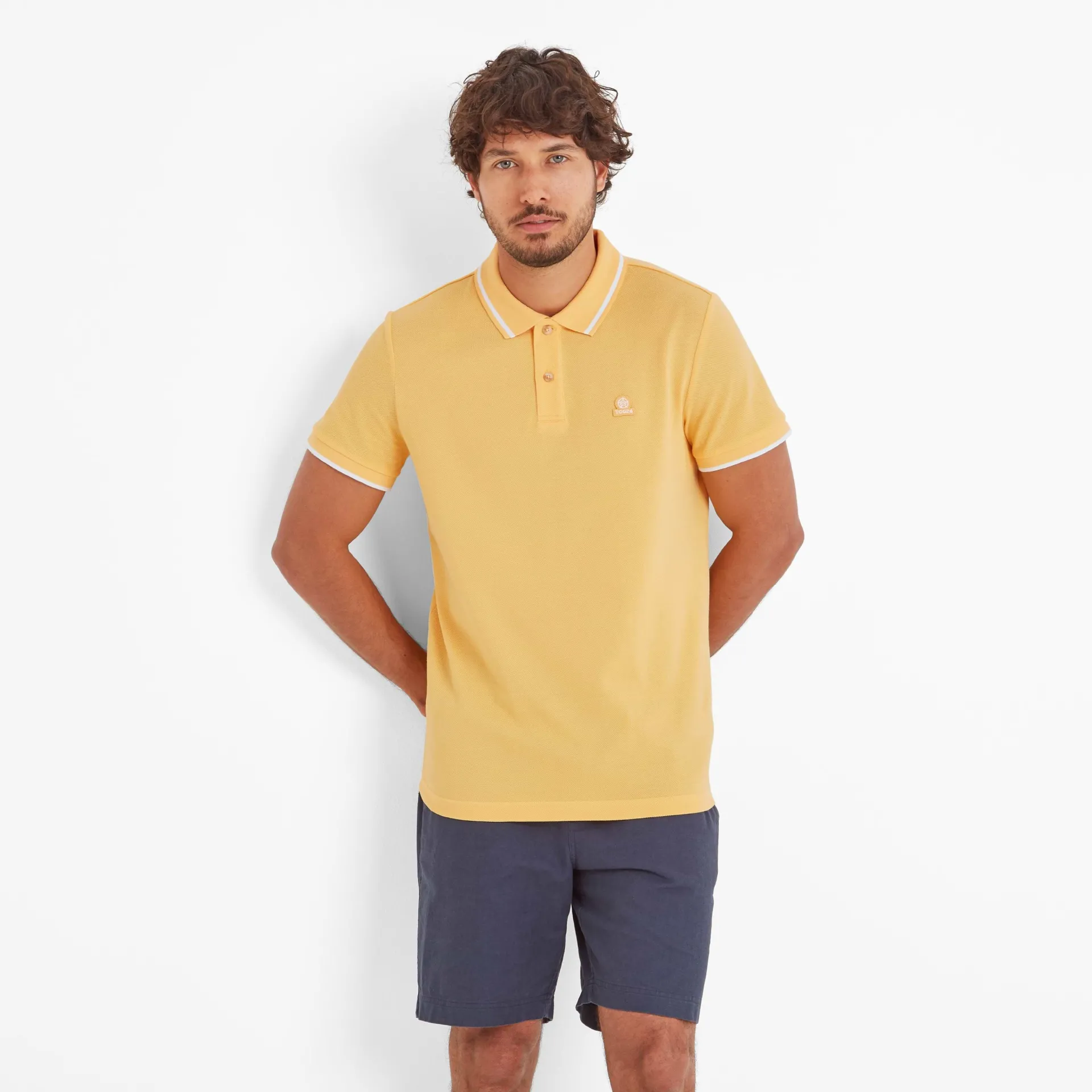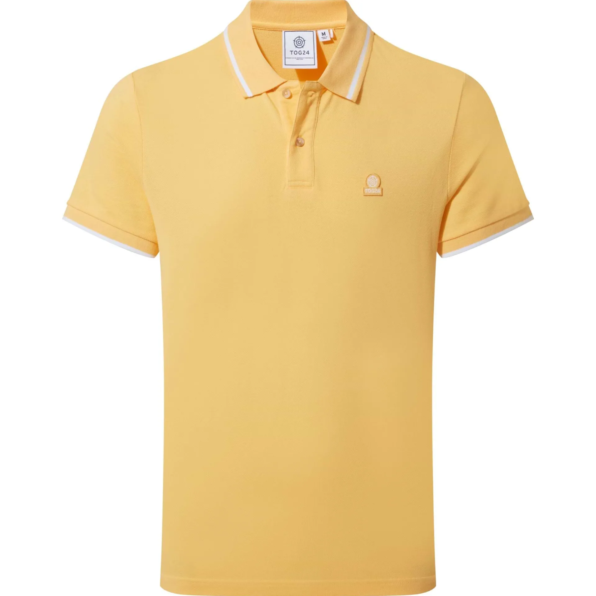 Clearance*This product is excluded from all additional promo code discountsProduct DescriptionBright and summery, our Binsoe polo shirt comes in a supersoft, 100% sustainable textured cotton pique so it feels as good on as it looks. The flat knitted ribbed collar and cuffs have tipped edges in a contrast colour to lift this classic polo top out of the ordinary. Designed by our team in West Yorkshire, this easy-to-wear polo shirt looks great teamed with shorts or jeans for anything from a day trip at the coast to a walk across the moors. The finishing touches are branded fastening buttons down the front and an embroidered TOG24 rose badge proudly displayed on the chest in a tonal colour.FeaturesSupersoft 100% sustainable cotton pique poloFlat knit rib on the collar u0026amp; cuffs with contrast tipped edgesBranded button fasteningEmbroidered badge on chestFitStudio model Rodrigo is wearing size M and is 6’1
