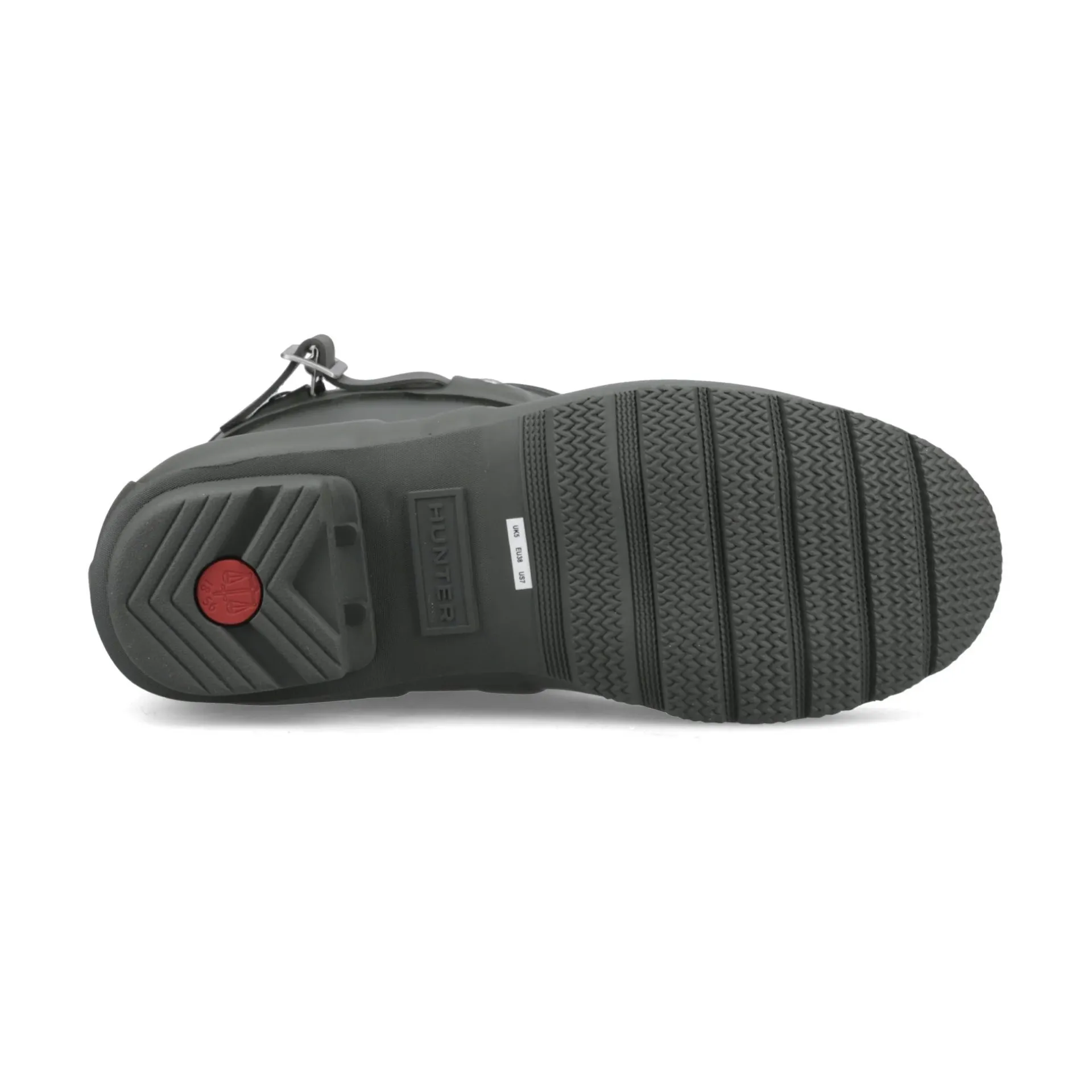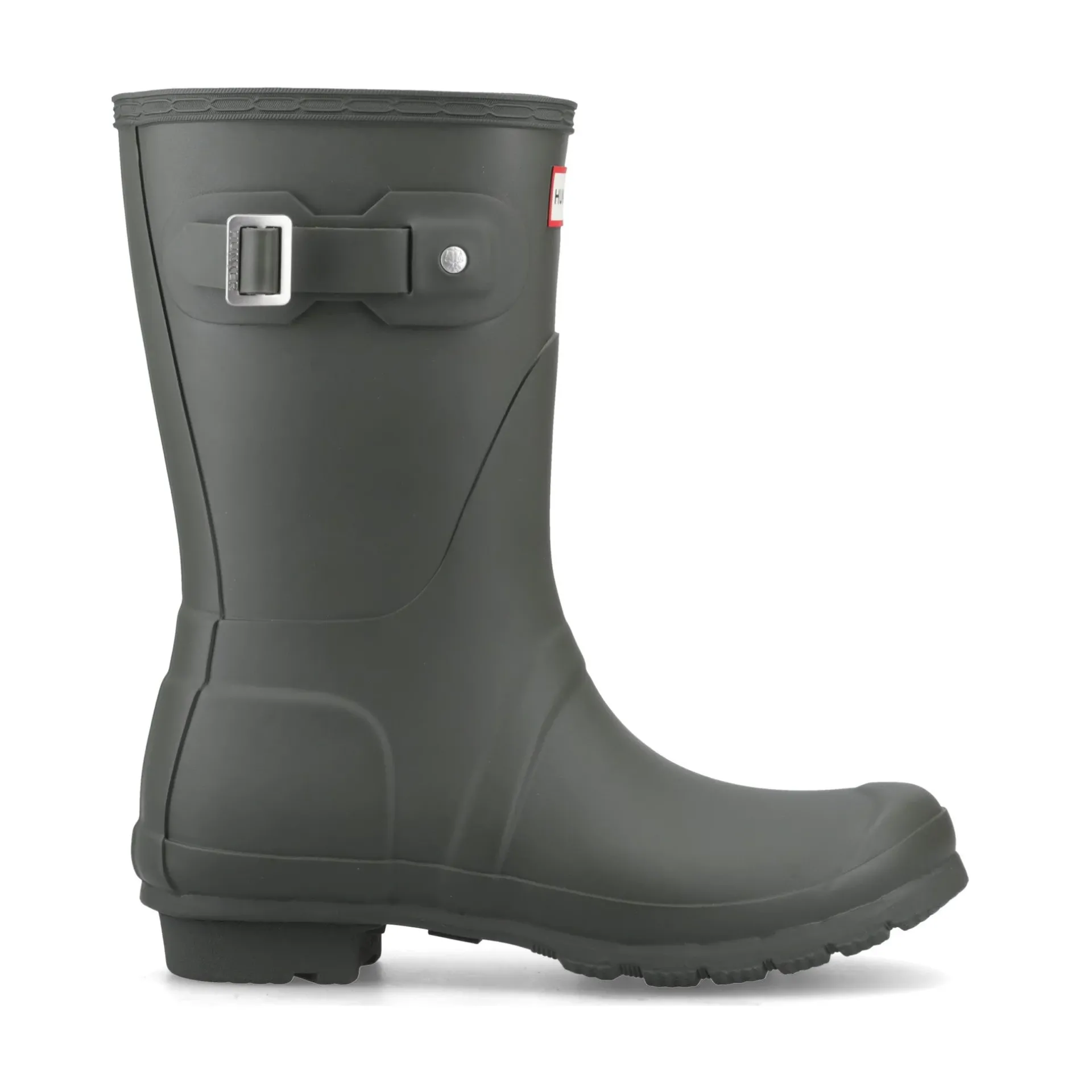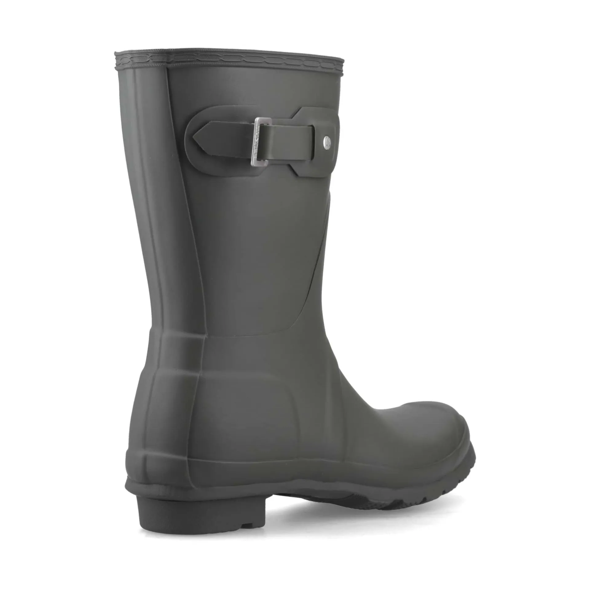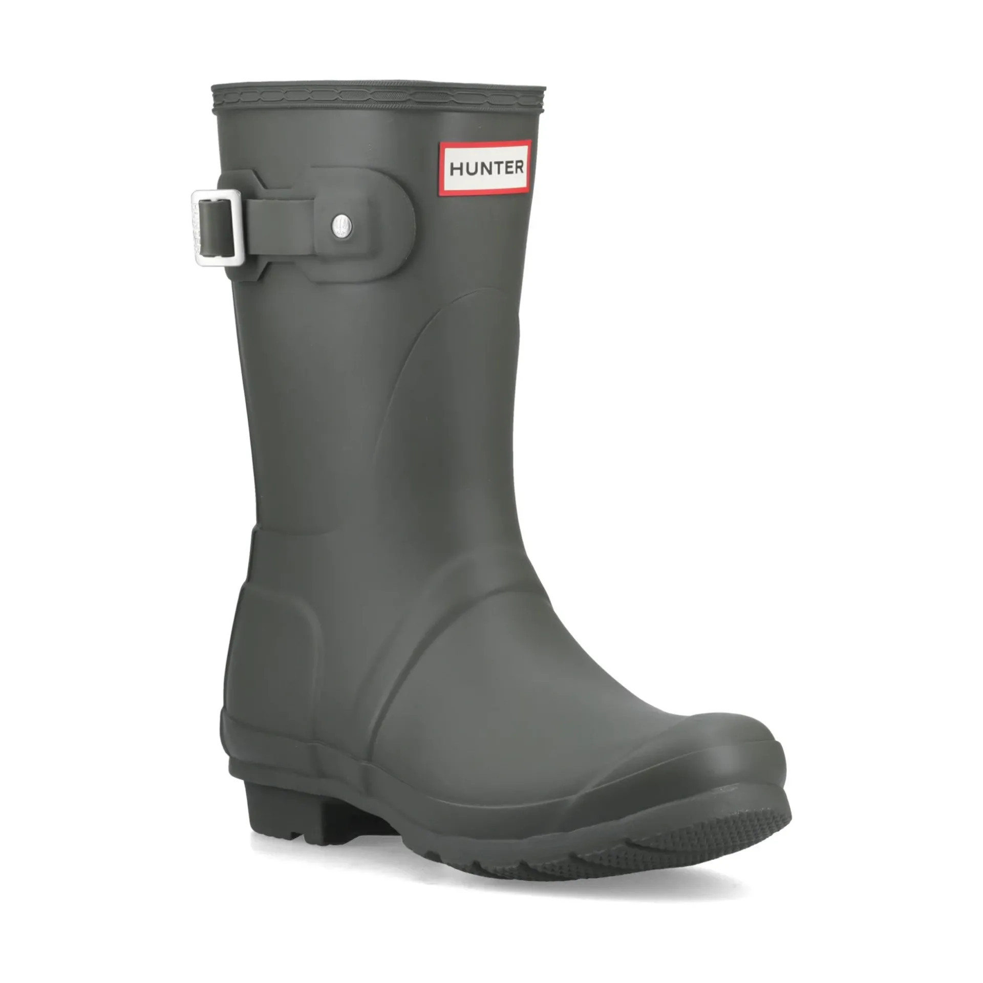 Product DescriptionPerfect for wet weather conditions this Wellington Boot is a shorter version of the iconic Hunter Original Tall Boot. Formed of natural rubber, each boot is handcrafted and assembled over three days before being vulcanised for superior protection.FeaturesVegan friendlyWaterproofHandcraftedPolyester liningRubber outsole with Hunter Original tread patternCrafted from natural vulcanised rubber with matte finishFitMaterial CompositionUpper: Rubber. Lining: Polyester. Sole: Rubber.Care