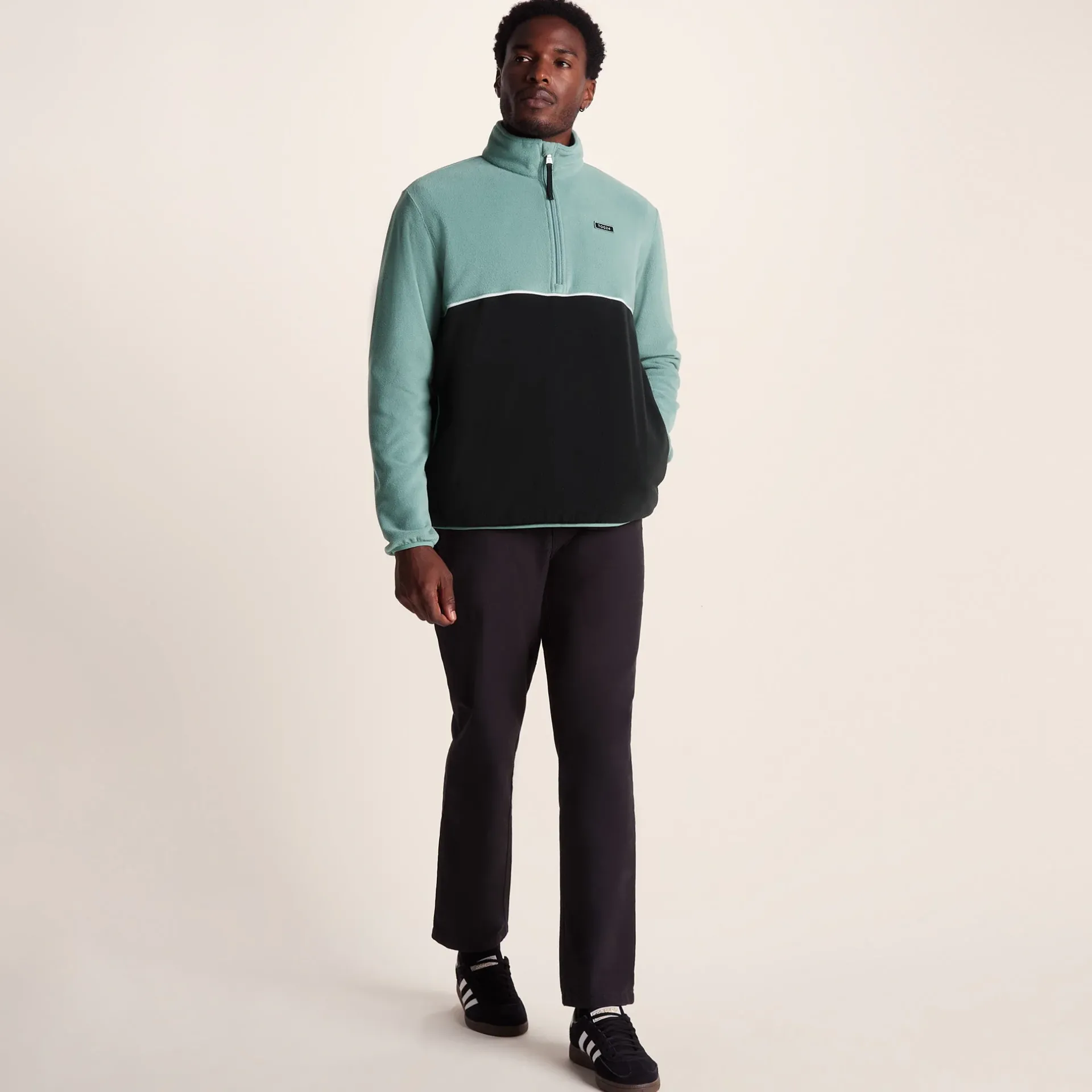 Product DescriptionWhen the weather decides to be properly British, the Kirton microfleece quarter zip is an absolute lifesaver. This pullover is perfect for those early dog walks through misty fields or a spontaneous stroll to the local pub when the clouds finally clear.nThis lightweight microfleece keeps you warm without weighing you down. The three-quarter zip design lets you open up if the sun pops out or zip up when those chilly winds show up.nContrast piping across the chest of this fleece adds a touch of style, while the elasticated hem and cuffs keep any sneaky draughts. And that handy kangaroo pocket is perfect for warming your hands or stashing your phone when you’re navigating those muddy footpaths.nWith its anti-pill finish and colourblock design, this quarter zip jumper looks smart and will stay smart, wash after wash.FeaturesLightweight u0026amp; warm microfleece zipneckAnti-pill finishColourblock designZip neck fastening2 Lower pockets with elasticated bindingElasticated binding on hem and cuffsTOG24 badge on chestFitStudio model Efosa is wearing size M and is 6’1