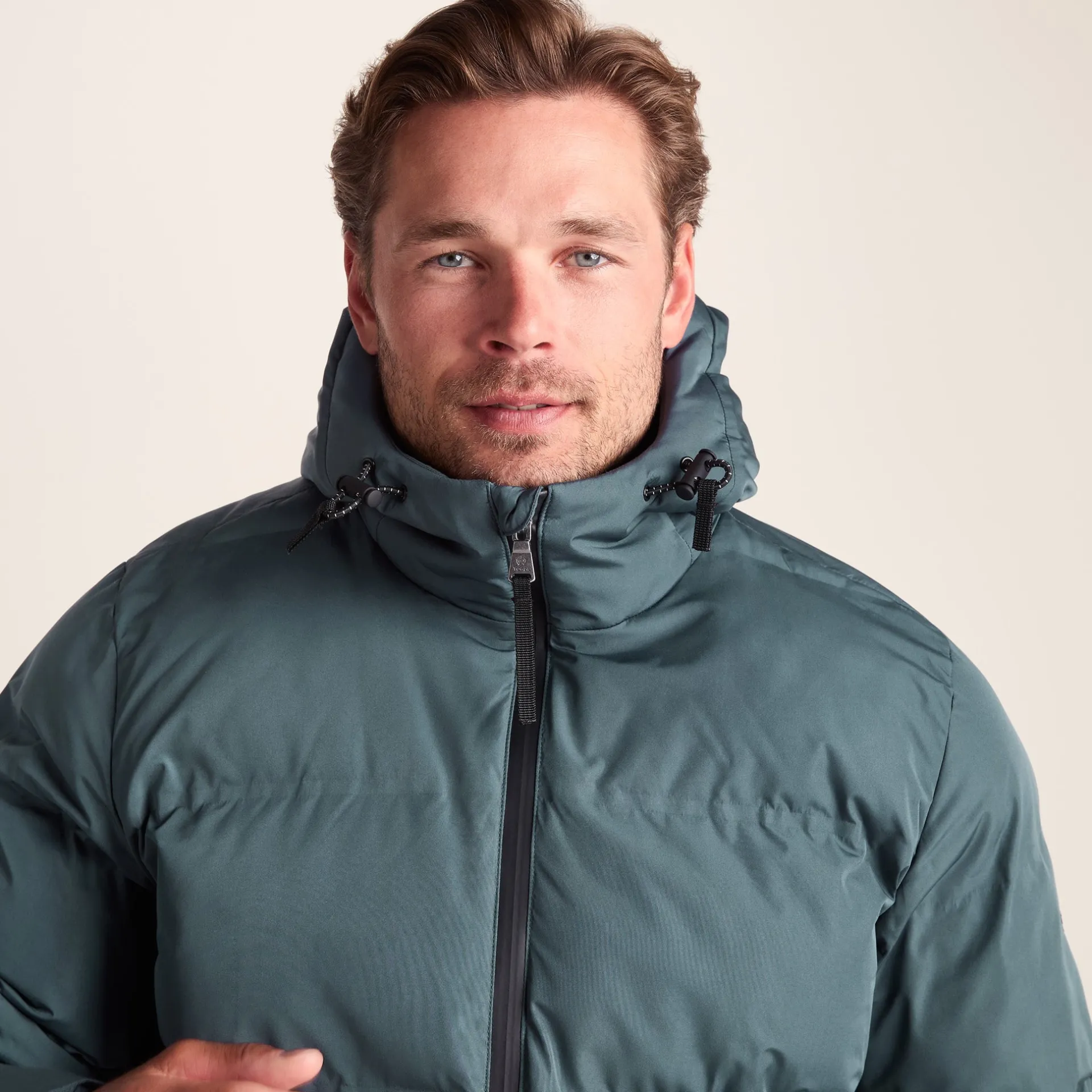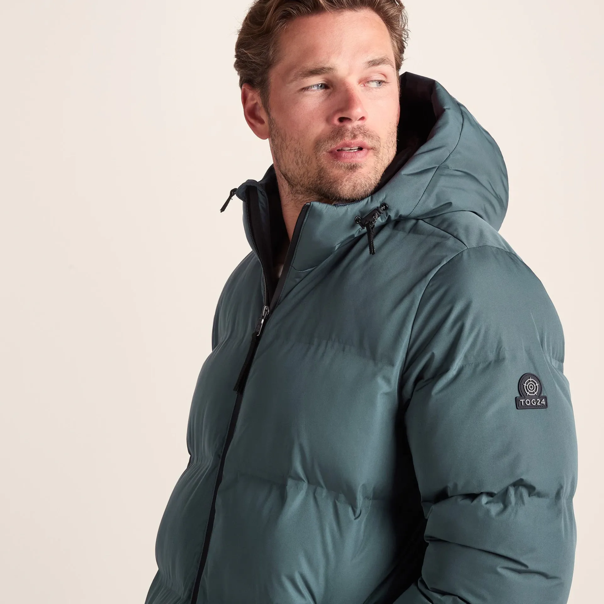 Product DescriptionWinter can be a right pain in the neck. Freezing mornings, surprise showers, and winds that come out of nowhere. Good thing the Menka men’s coat exists – your new best mate for tackling whatever the weather throws at you.nThe Menka men’s puffer jacket is built for guys who don’t have time to faff about with multiple layers. The relaxed boxy fit means you can throw it on over whatever you’re wearing, while the heat-sealed quilted design traps warmth.nWhen the wind picks up, just pull on that toggle-adjustable hood, and you’re sorted – no more chasing your hat down the street. Plus, the Menka men’s coat has a light DWR coating to protect you if it starts spitting.nThere are a lot of handy practical features in this men’s coat, too. Two lower zip pockets keep your stuff secure, and there’s even an inner zip pocket for anything valuable. The stretchy inner cuffs stop that annoying cold air sneaking up your arms, and the toggle-adjustable hem lets you pull in the fit to fight off any draughFeaturesLight rain protection, wind resistant and warmHeat sealed quilted designWater repellent coating (DWR)Relaxed boxy fitToggle adjusters on the hood openingWP zip opening to front2 lower zip pockets, 1 inner zip pocketToggle adjusters to hemStretch inner cuffTOG24 badge on sleeveFitStudio model erik is wearing size M and is 5’11