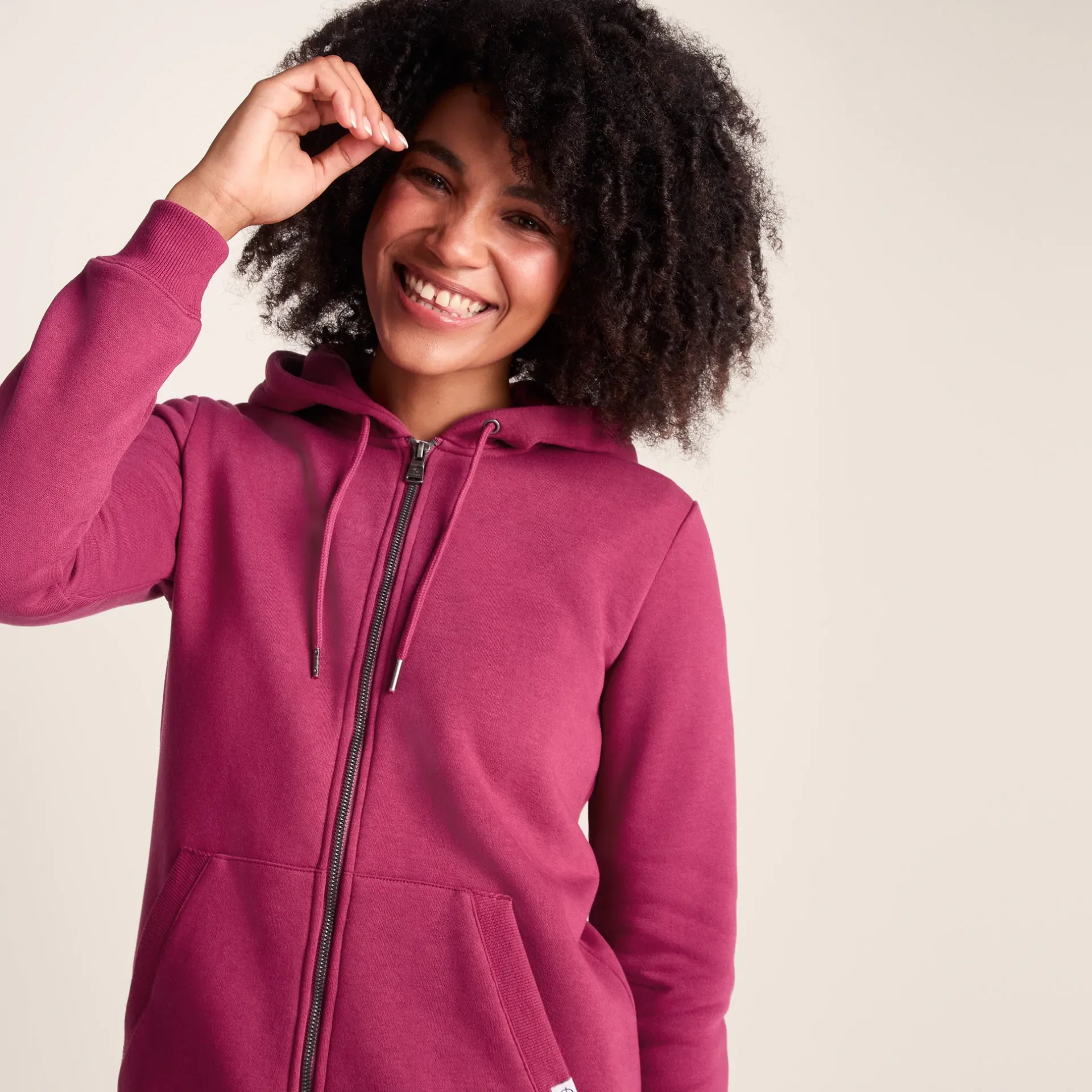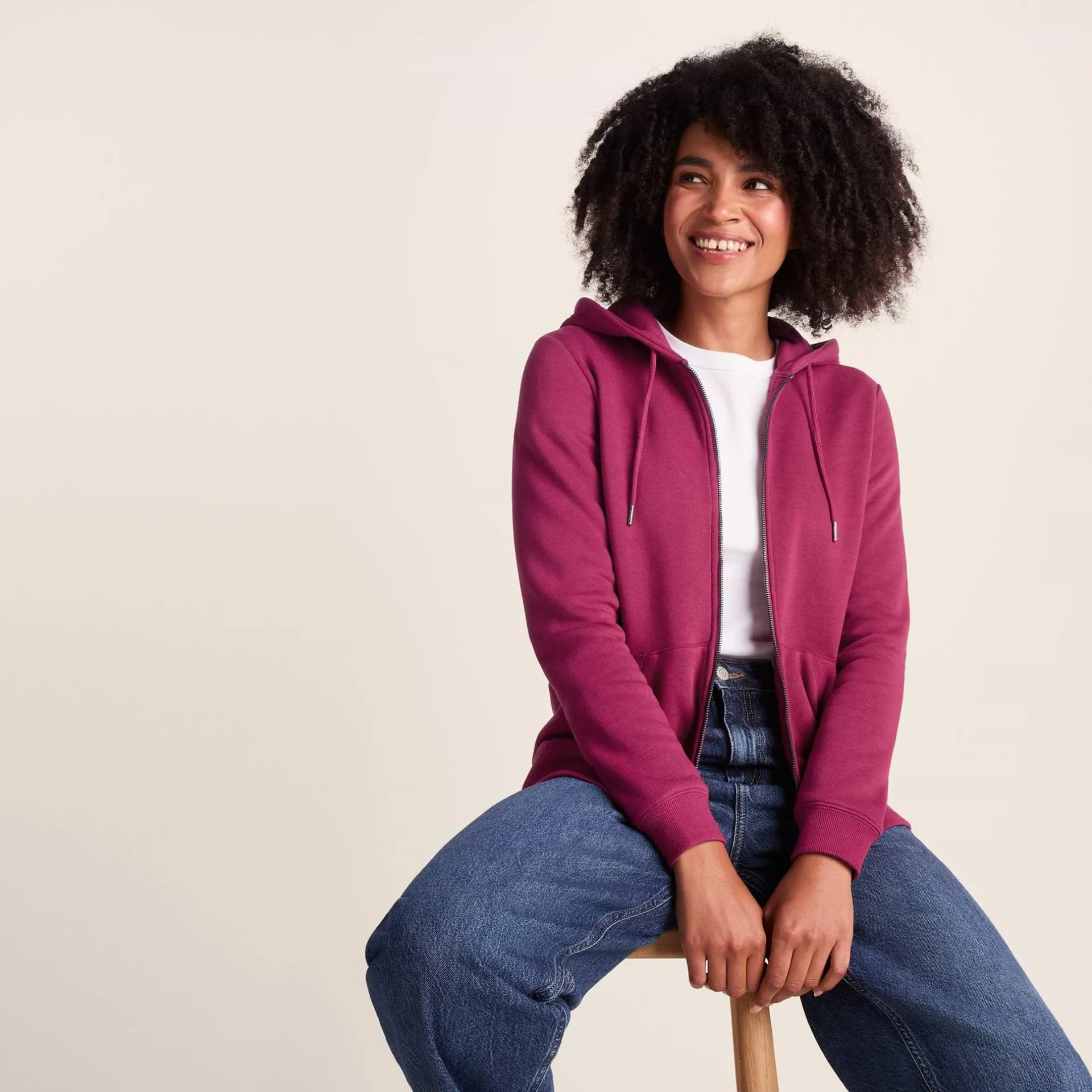 Product DescriptionA wardrobe staple, our Mia zip through hoody comes in a supersoft brushed back fleece finish, so soft and cosy that you won’t want to take it off. A layer you can easily throw on for a blustery walk across the moors, popping to the gym or meeting up with friends, giving you much needed insulation on chilly days. This classic hoody has a premium feel and keeps its shape for years to come thanks to generous ribbing to the cuffs and hem and the opening of the snug, split kangaroo pocket. The double fabric drawcord hood is warm and cosy and keeps the wind out of your ears. Mia comes in colours inspired by wild moorland heather, celebrating our proud Yorkshire heritage, and is finished with a small branded woven Truth Over Glory label on the pocket.FeaturesSupersoft finishFull length zip at the frontHood with drawcordsSplit kangaroo pocketRibbed cuffs and hemSmall woven TOG24 label on the pocketFitStudio model Natasha Dress 8 uk Height 5’10* Bust 34 Waist 25.5