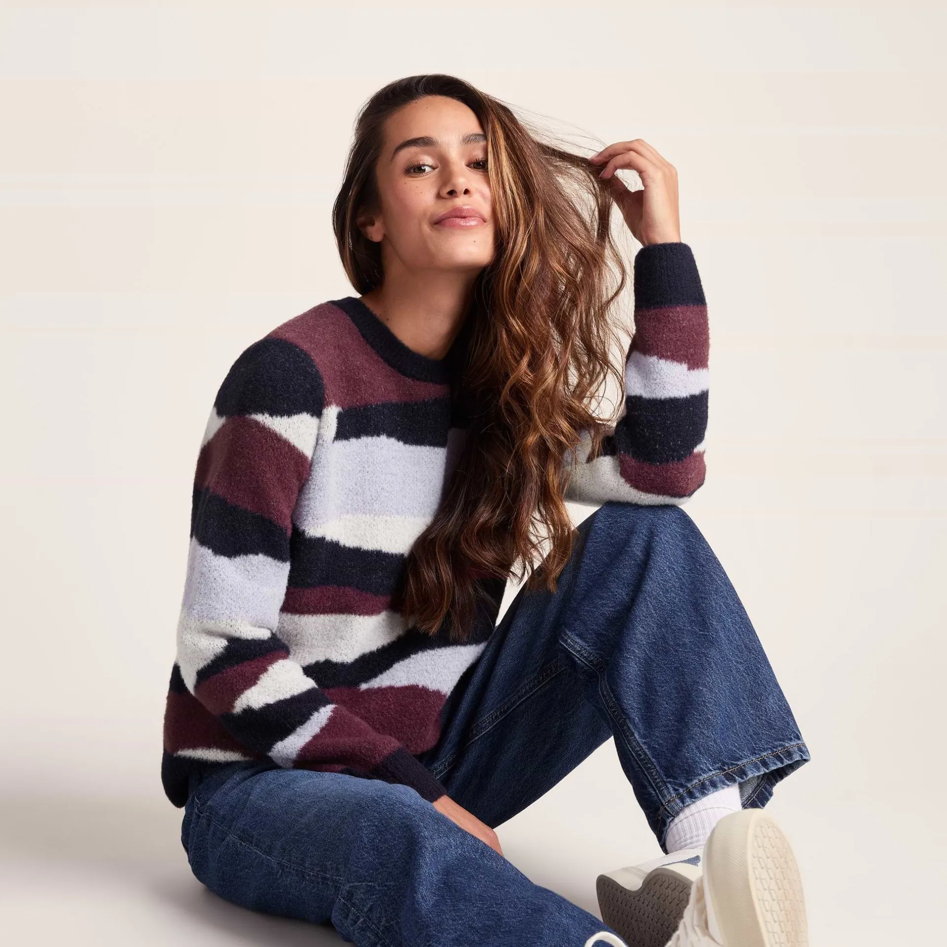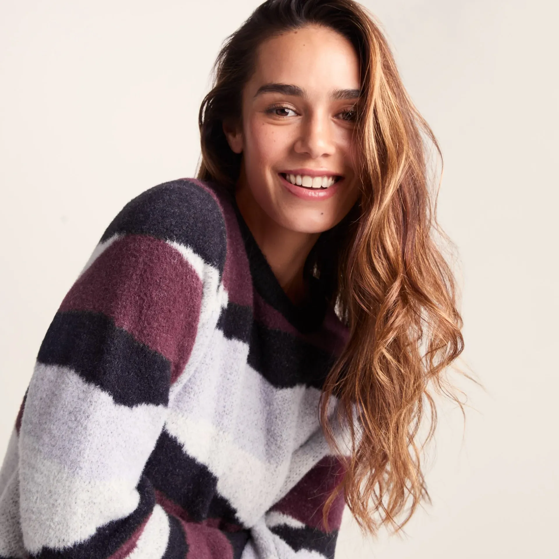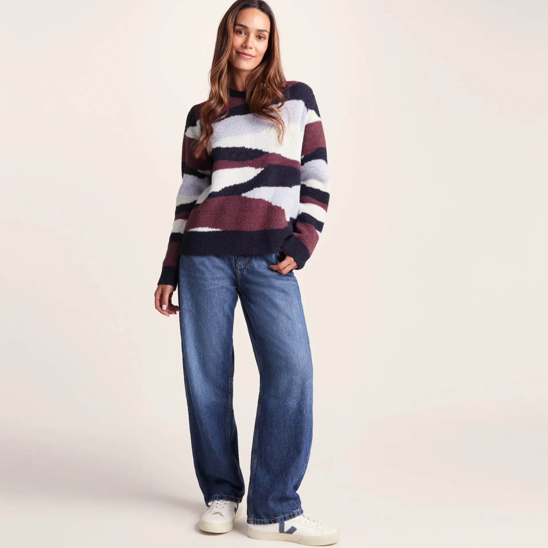 Product DescriptionWhen those chilly days come calling, the Niamh womenâs chunky knit jumper wraps you up in cosy comfort that doesn’t skimp on style. This eye-catching womenâs jumper features a beautiful abstract pattern that adds a spatter of colour to your everyday wardrobe.nThe relaxed, boxy fit of this womenâs pullover gives you plenty of room to move and layer, making it perfect for those lazy Sunday mornings with a cuppa or for throwing on before heading out to meet your pals. You’ll appreciate how the chunky ribbed neck, hem, and cuffs keep their shape while adding a cool, textured vibe to the design.nBut what you’ll really fall in love with is just how incredibly soft this womenâs jumper feels against your skin. Weâre talking about the kind of softness that makes you want to wrap yourself up and never take it off! The super-soft yarn feels like a toasty hug all day long, making the Niamh your go-to choice for everything from lounging at home to casual catch-ups.nFinished with a discreet TOG24 woFeaturesChunky knitted jumperAbstract patternCrew neckRelaxed boxy fitChunky rib neck, hem and cuffsTOG24 woven label in the side seamFitStudio model Narine Dress 6 uk Height 5′ 6½* Bust 32 Waist 24