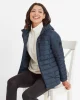 Product DescriptionSay hello to winter with the North down hooded jacket featuring duck down. If itâs high-quality and supreme warmth youâre after, then the women’s North hooded down jacket is a smart choice for those outdoor adventures. Featuring our most premium insulation made from duck down, this jacket feels toasty warm and cosy and yet equally feels breathable and lightweight. Like all great things, thereâs more to the North than meets the eye, as you wonât believe a jacket so insulated can also pack away into its own chest pocket and become a handy travel pillow, too. Thatâs because the North has been designed with the adventurer in mind, so practicality and space-saving genius is an absolute must. Complete with toggle adjusters on the hood to trap in all that wonderful warmth for your head and neck, this jacket also comes with zip side pockets to safely store your phone, wallet and keys. Layer the North over a sweatshirt on extra chilly days, or layer it under a coat for added protection from theFeatures90% duck down 10% feather, 800 fill powerLightweight, breathable u0026amp; ultra warmDown weight – 86g (based on size M)1 zip chest pocket, 2 lower zip pocketsToggle adjuster to hemJacket packs away into chest pocketLogo print on chestFitStudio model Melissa is wearing size 8 and is 5’10
