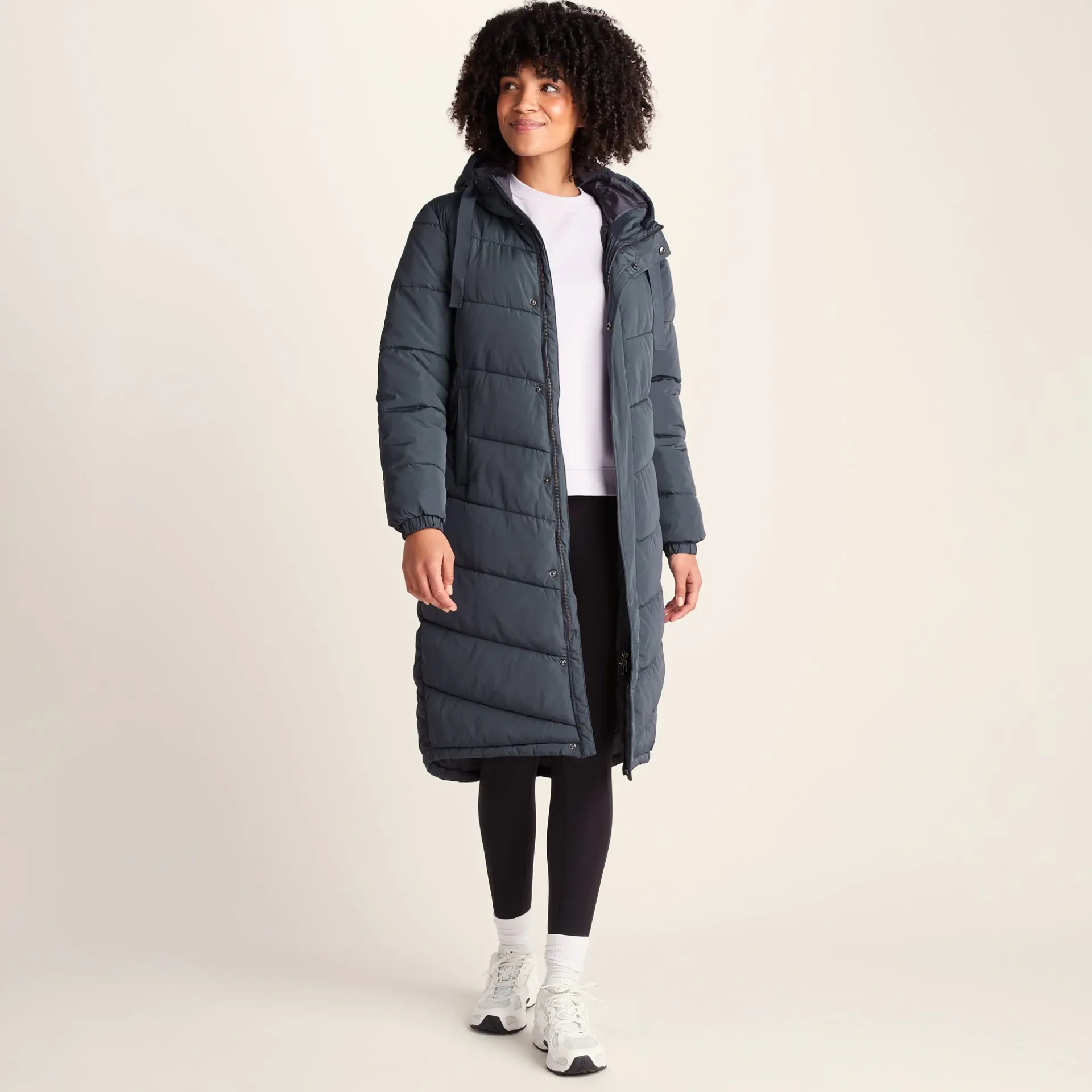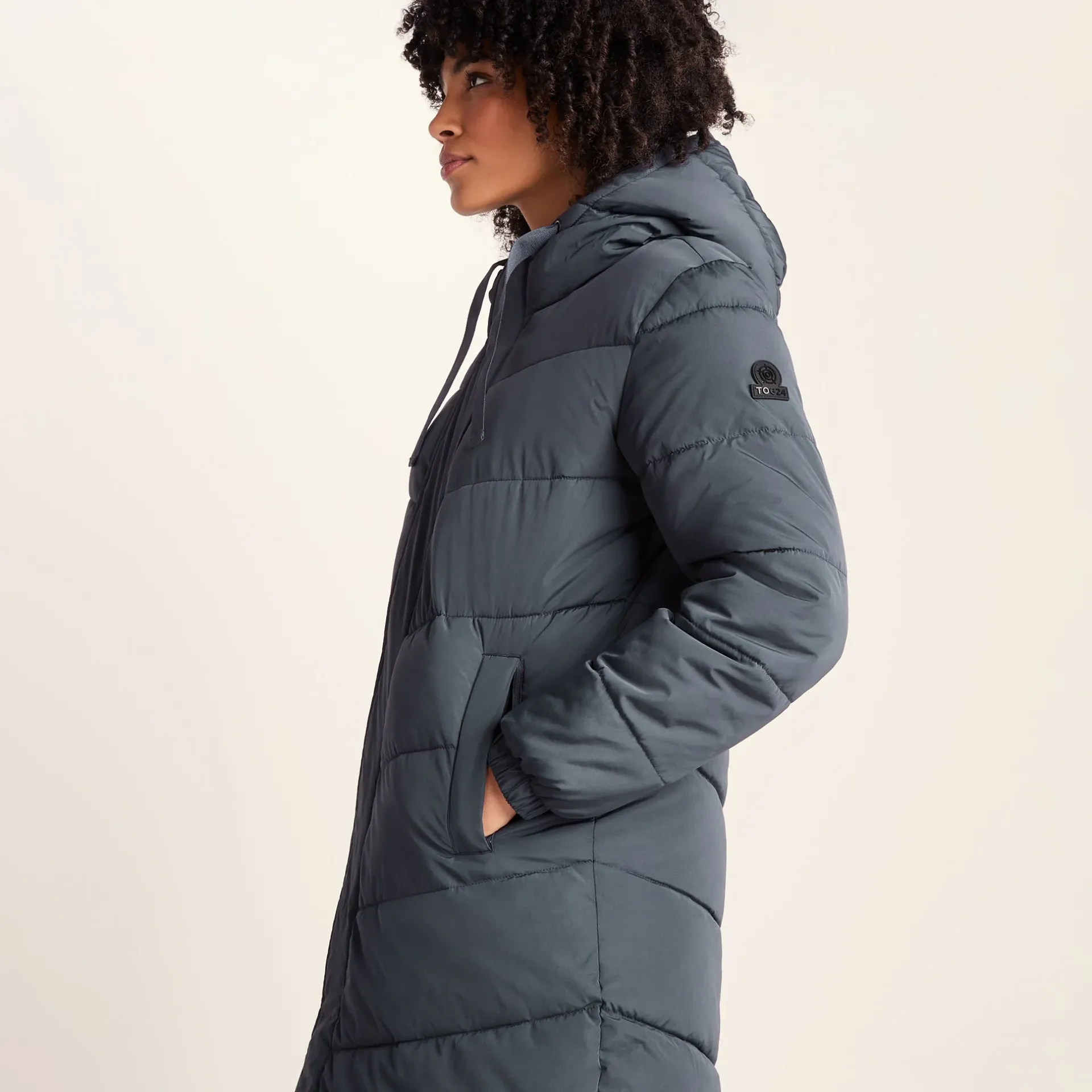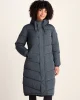 Product DescriptionWhen it’s cold and windy, as it often is in Yorkshire, you’ll stay warm and cosy wearing out Raleigh padded puffer coat with wide, chevron panels that is super warm, wind resistant and comes with a high performance thermal filling made from recycled plastic bottles. Going out in Raleigh is like wearing a sleeping bag as it’s extra long, has a fixed hood with chunky drawcords and elasticated cuffs to keep the wind out. It still allows for a full range of movement and is easy to get on and off thanks to the full length, two-way zip that is concealed behind a panel that fastens with press studs. This super warm coat also has two lower zip up pockets that double up as hand warmers if you forget your gloves. The finishing touch is embossed rubber Yorkshire Rose badge on the sleeve.FeaturesWarm and wind resistantThermal filling made from recycled plastic bottlesChevron quilted panelsFull length two way concealed zip with press studs2 lower zip up pocketsFixed hood with chunky drawcordsElasticated cuffsEmbossed rubber Yorkshire Rose badge on the sleeveFitStudio model Isabelle is wearing size 8 and is 5’7