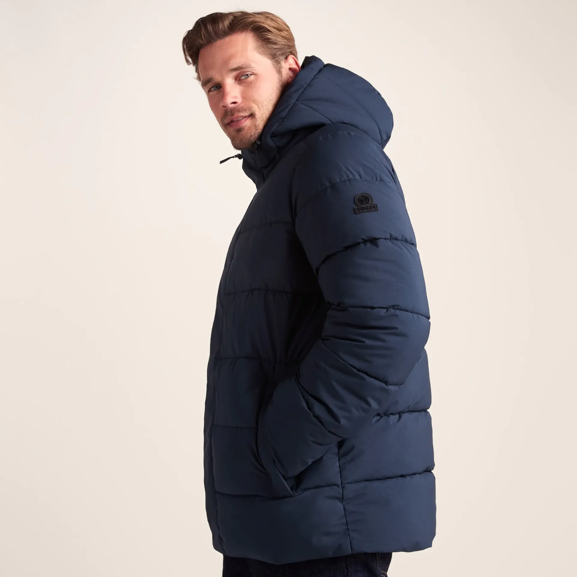 Product DescriptionThe Tunnard menâs insulated jacket is your new perfect companion for winter, combining warmth, comfort, and practical style. Designed with cosy insulation and wind-resistant fabric, this menâs jacket keeps you comfortable even on chilly, blustery days. nThe quilted design features a zip front with press studs and touch and close, giving you both security and flexibility, while two lower zip pockets and an inner pocket provide safe storage for your essentials. An adjustable hood and hem allow you to tailor the fit to your needs, locking warmth in and keeping the cold out no matter what the weather throws at you. nFinished with our signature TOG24 badge, this menâs jacket blends performance with subtle style. Lightweight yet insulating, durable, and designed for everyday wear or outdoor adventures, the Tunnard menâs insulated jacket is a reliable choice to keep you toasty, comfortable, and confident throughout the colder months.FeaturesLight rain protection, wind resistant and warmQuilted designWater repellent coating (WR)Toggle adjusters on the hood opening and hemZip opening fastened with press studs and velcro2 lower zip pockets and 1 inner zip pocketTOG24 badge on sleeveFitStudio model erik is wearing size M and is 5’11