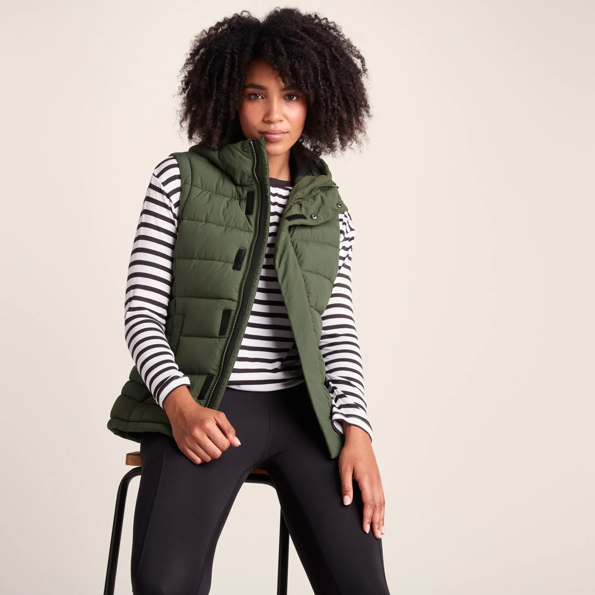 Product DescriptionWhen you want a perfect balance of warmth and freedom of movement, the Wyness hooded gilet steps up to the challenge. This sleeveless wonder is snug where it counts but still gives your arms the freedom to get on with the day – ideal for those active days when layers are your best friend.nThe beautifully crafted quilted design is cleverly designed to keep the warmth right around your core. With flattering princess seams that contour to your silhouette and thinner quilting detail along the side seams, this gilet hugs your natural shape without piling on any extra bulk.nWhen the weather does turn, you’ll appreciate the protection built into every inch of this vest. The water-repellent coating helps light rain bead off, and the hood’s toggle adjusters mean you can batten down the hatches if things turn breezy.nThis body warmer has got all the handy touches, too – a secure zip front reinforced with press studs and velcro and two zip pockets to keep your belongings safe or warm up chilly haFeaturesLight rain protection, wind resistant and warmQuilted designWater repellent coating (WR)Flattering princess seams Thinner quilting detail to side seam Toggle adjusters on the hood openingZip opening fastened with press studs and velcro2 lower zip pocketsTOG24 embroidery on pocketFitStudio model Natasha Dress 8 uk Height 5’10* Bust 34 Waist 25.5