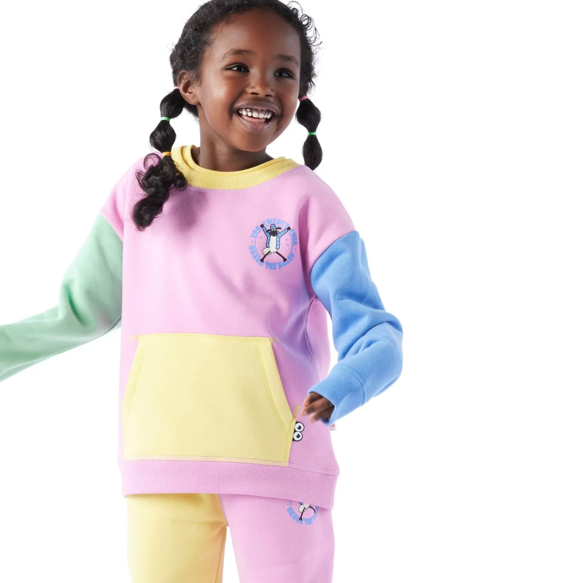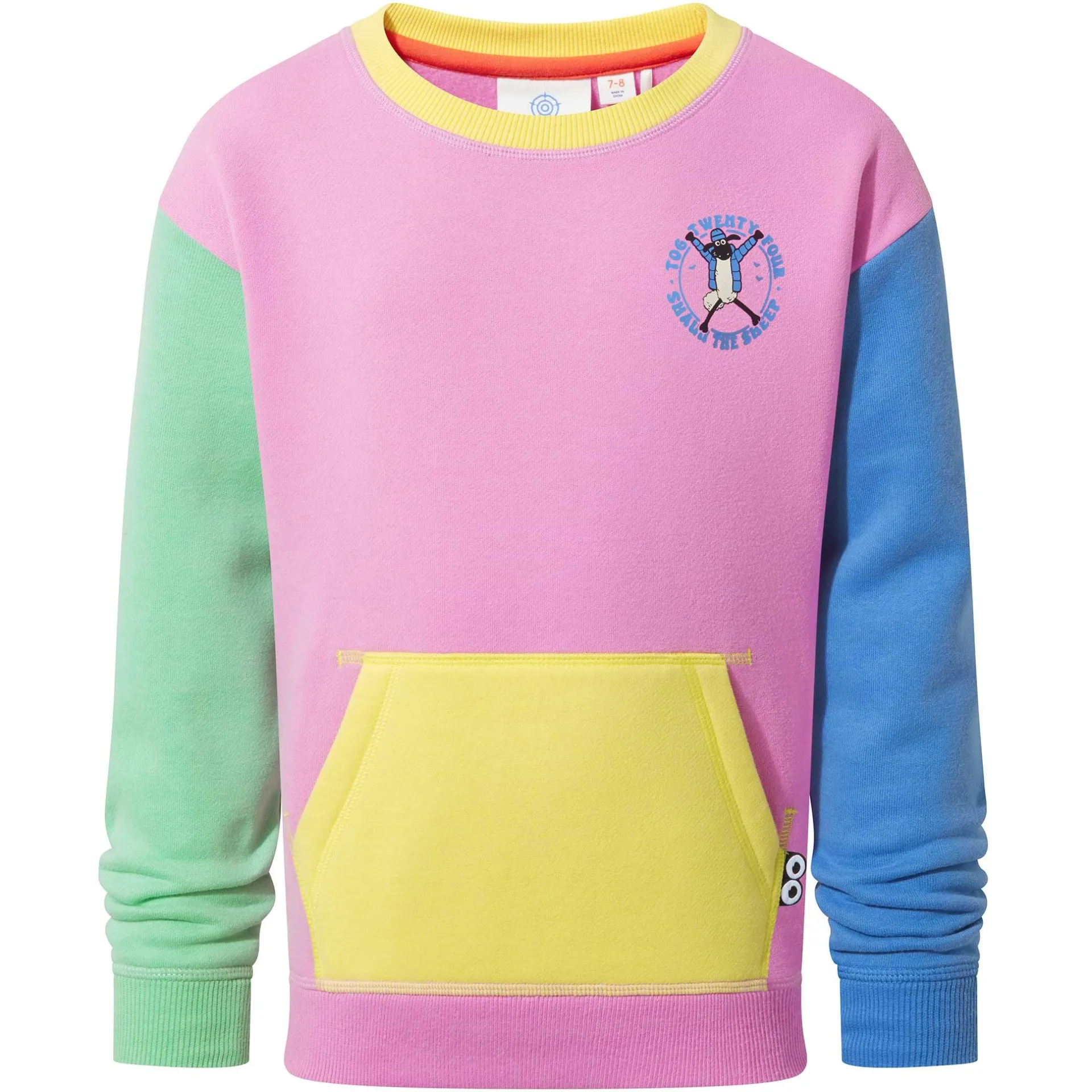 Product DescriptionKeep your teeny tiny tinker cosy and cool in the Cheviot kidsâ sweatshirt – a fun and playful addition to the TOG24 X Shaun the Sheep collection. Designed for all-day comfort, this super-soft kidsâ jumper features a bold colourblock design with contrast sleeves, giving it a standout look thatâs perfect for âewe-fulâ little lambs! The crew neck and ribbed cuffs, hem, and neckline keep things snug, while the handy kangaroo pocket is ideal for warming chilly hands (or stashing sneaky snacks). A small Shaun the Sheep graphic on the chest adds a cheeky touch, with woven Shaun the Sheep and TOG24 labels completing the look. Playtime, adventure time or chill time, the Cheviot jumper is just perfect all the time.FeaturesTOG24 X Shaun the Sheep collaborationCrew neck sweatshirt with kangaroo pocketColourblock design with contrast colour sleevesRib neck, cuffs u0026amp; hemSmall Shaun the Sheep graphic on the chestShaun the Sheep woven label on pocketTOG24 woven label at side seamFitMaterial CompositionBody:57% Cotton (Better Cotton) , 43% PolyesterCareMachine wash at 30c, Do not bleach, Do not tumble dry, Cool iron, Do not dry clean, Wash with similar colours, Specific care instuctions can be found on your garment care label