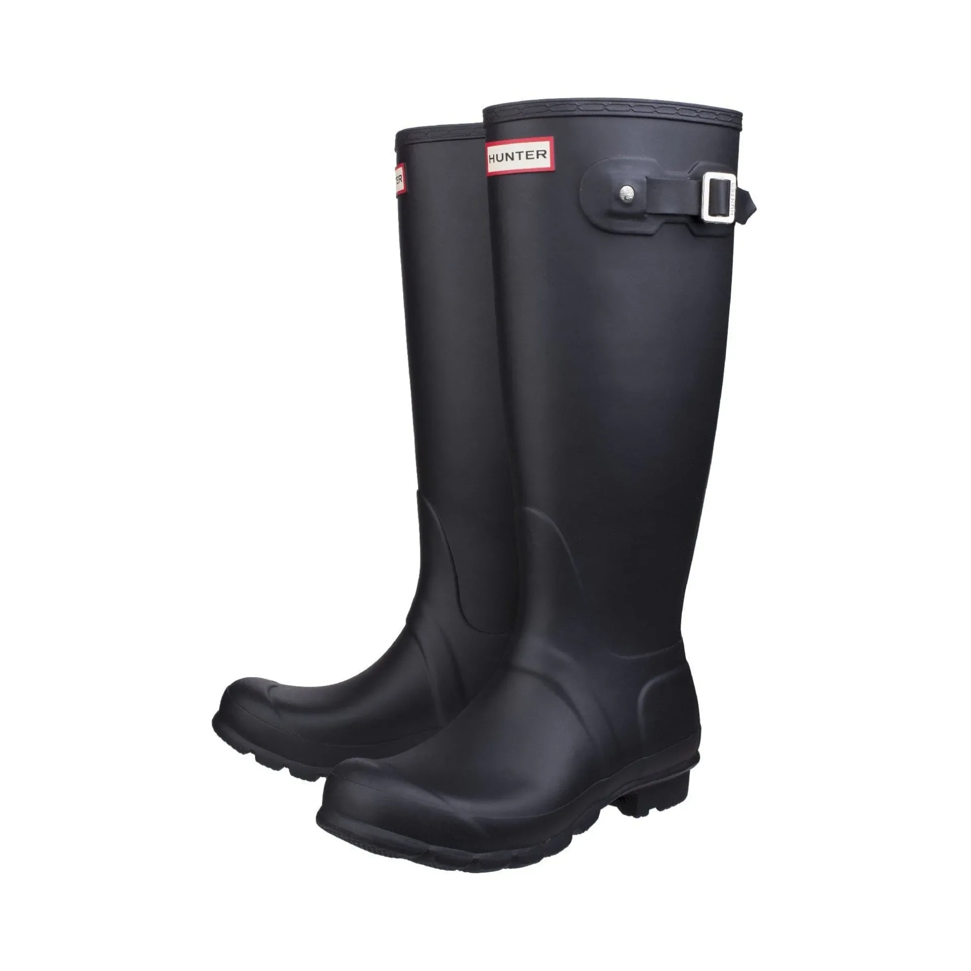 Product DescriptionFirst introduced in 1956, the Original Tall boot is handcrafted from 28 parts and built on the original last for exceptional fit and comfort. This iconic style lies at the heart of the Hunter Original brand.FeaturesHandcraftedWaterproofTextile liningOriginal calendered outsoleAdjustable strap to enhance fitNatural rubberFitMaterial CompositionUpper: 100% Rubber. Lining: Rubber. Sole: Rubber.Care
