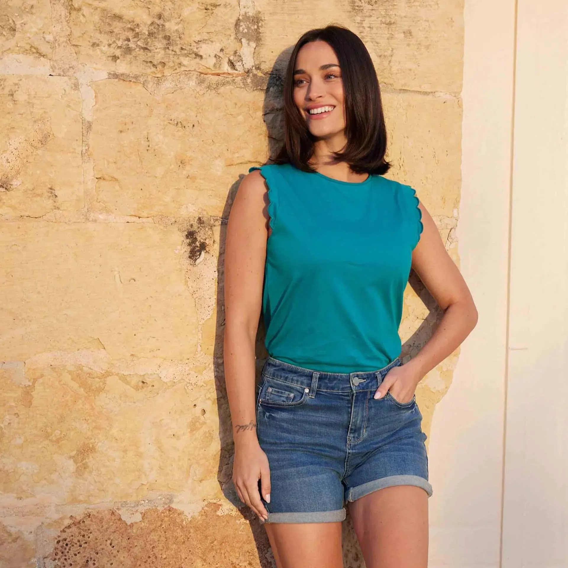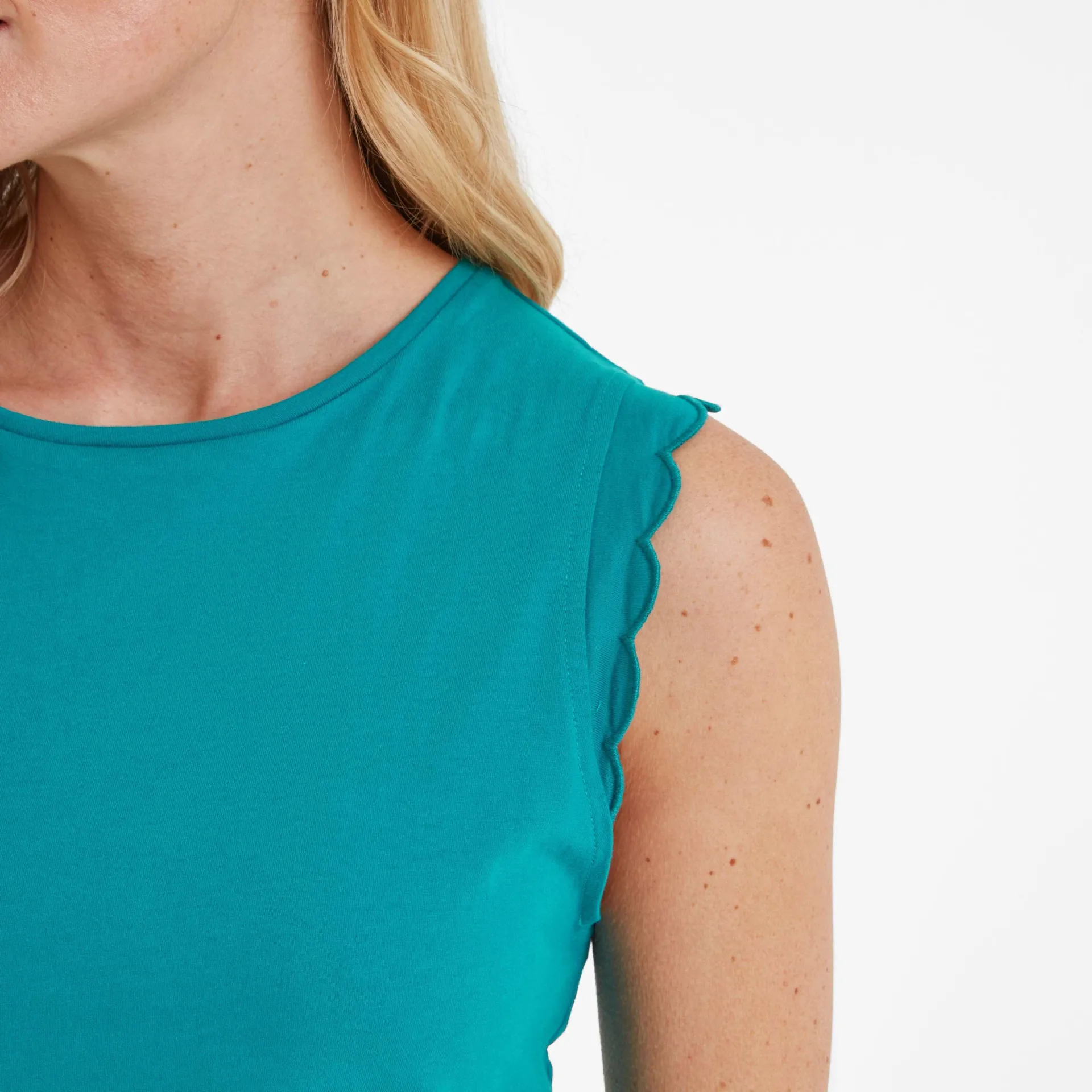 Clearance*This product is excluded from all additional promo code discountsProduct DescriptionThe Katie scalloped vest is an easy-going summer essential with a little extra luxe. Made from supersoft cotton, it’s lightweight and breathable, just great for sunny days. The cut-off vest look is accentuated with the scalloped detailing around the armholes, which add a nice touch. Whether you’re pairing it with shorts for a day at the beach or layering it under a jacket for a casual evening out, it looks great with almost anything. Finished with a TOG24 label on the hem, the Katie vest is a comfy and versatile staple you’ll find yourself reaching for all summer long.FeaturesSUPERSOFT COTTON TEESCALLOPED DETAIL TO ARMHOLESTOG24 LABEL ON THE HEMFitStudio model Izzy Dress 8 UK, Height 5’7