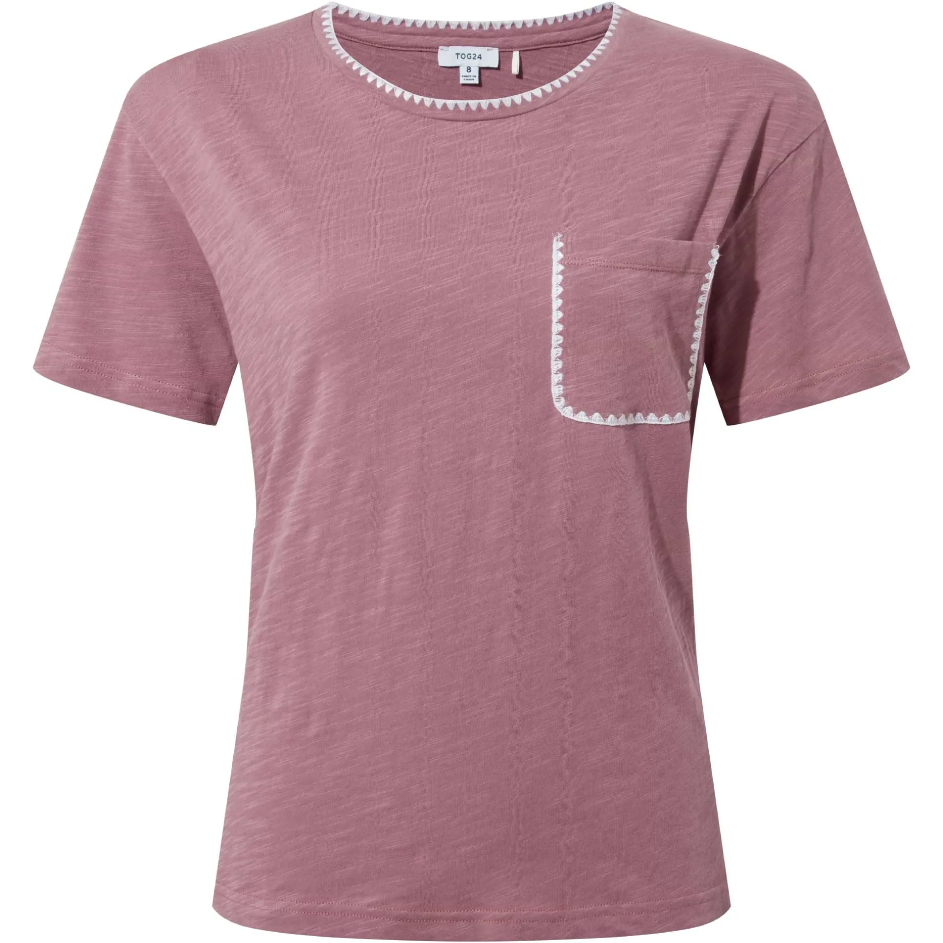 Clearance*This product is excluded from all additional promo code discountsProduct DescriptionThe Liana supersoft cotton tee is a perfect pick for warm summer days. Made from ultra-soft cotton, it feels light and breathable, keeping you comfortable all day long. The scooped neckline and subtle laddering detail around the neck and pocket add a stylish touch, while the laid-on pocket brings a casual, relaxed vibe. Finished with lovely embroidery and the TOG24 label on the hem, this tee pairs beautifully with wide-fit trousers for a little-bit-smarter-than-casual summer look. Whether you’re out and about or enjoying some downtime, the Liana tee is a must-have for your warm weather wardrobe.FeaturesSUPERSOFT COTTON TEESCOOPED NECK LINEWHIP STITCH EMBROIDERY DETAIL AROUND NECK AND POCKETLAID ON POCKETTOG24 LABEL ON THE HEMFitStudio model Izzy Dress 8 UK, Height 5’7